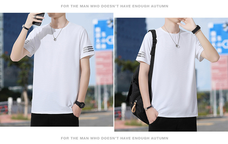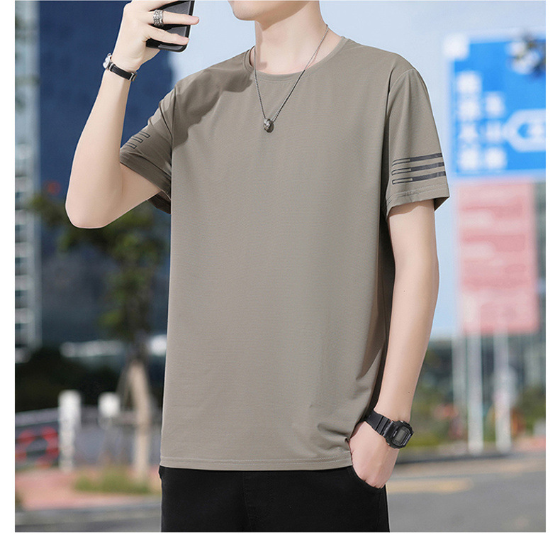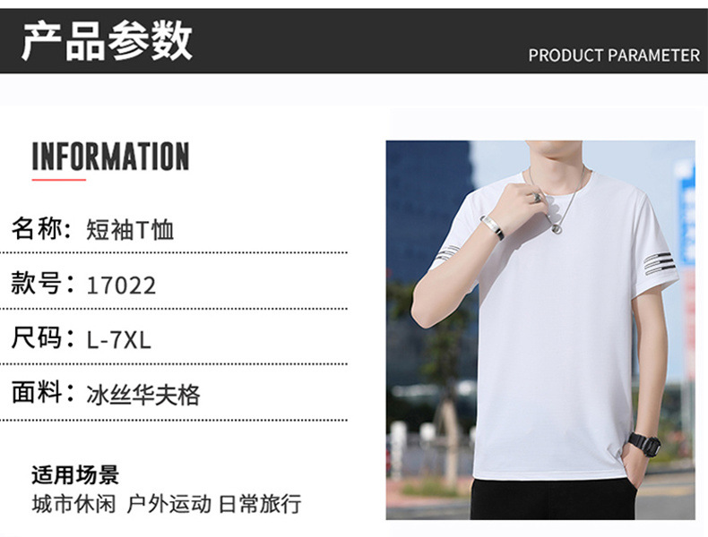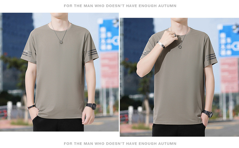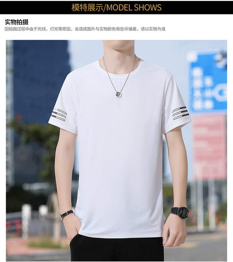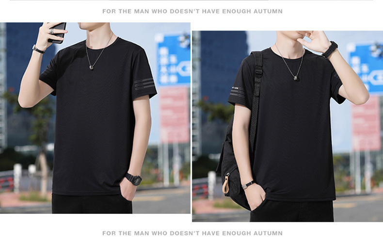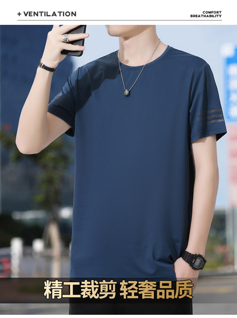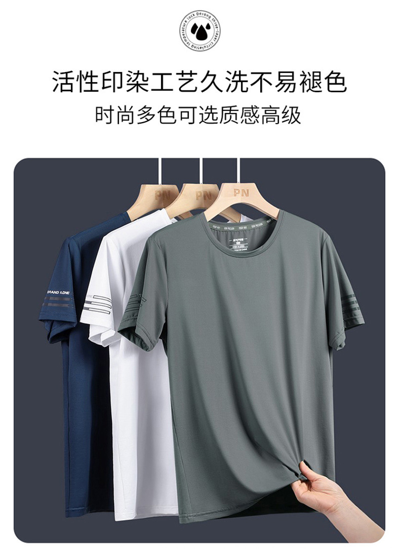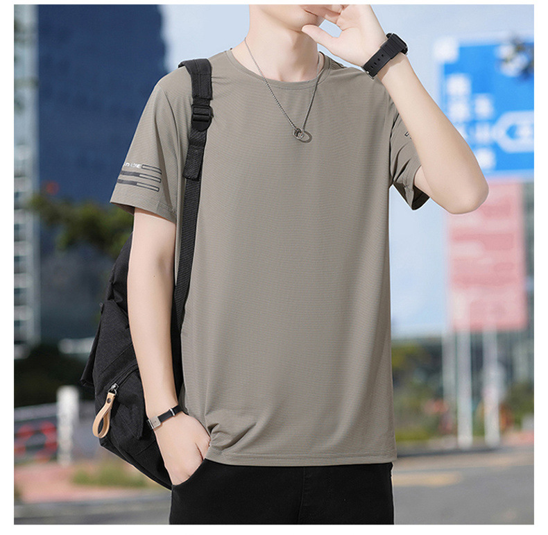 Новая летняя мужская футболка больших размеров из ледяного шелка, эластичная, дышащая, с коротким рукавом, круглым вырезом, быстросохнущая.