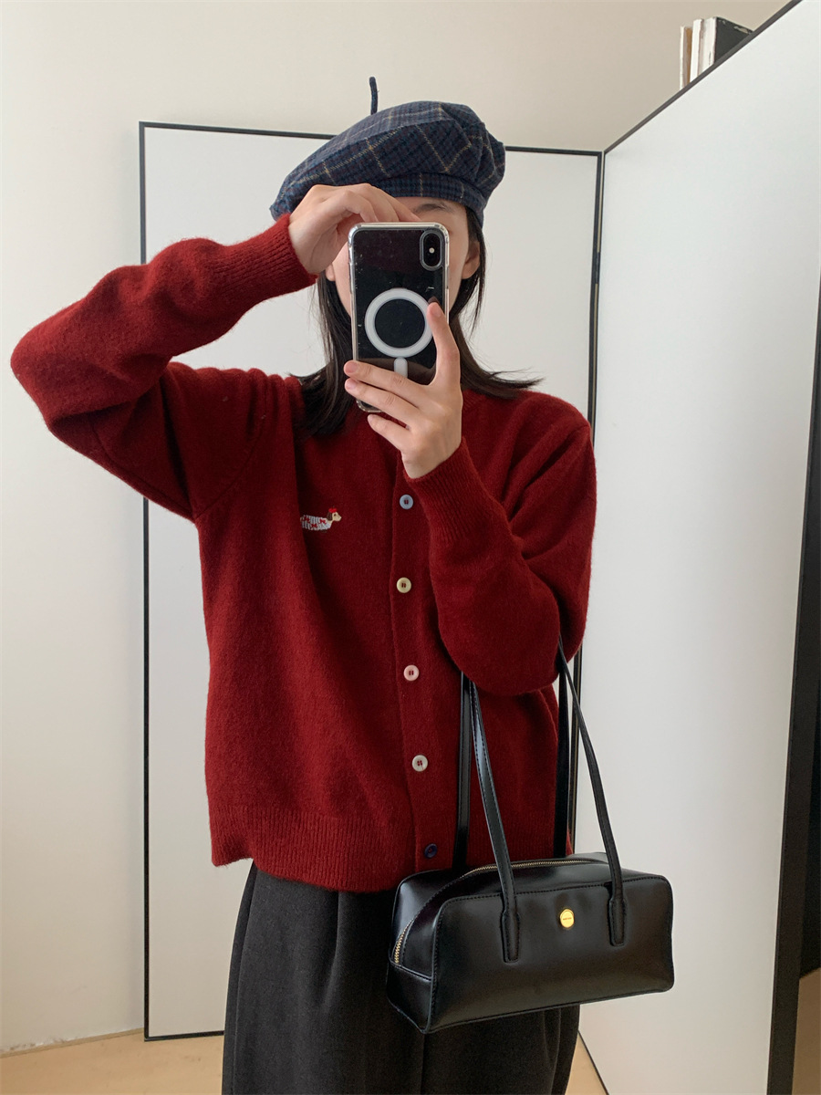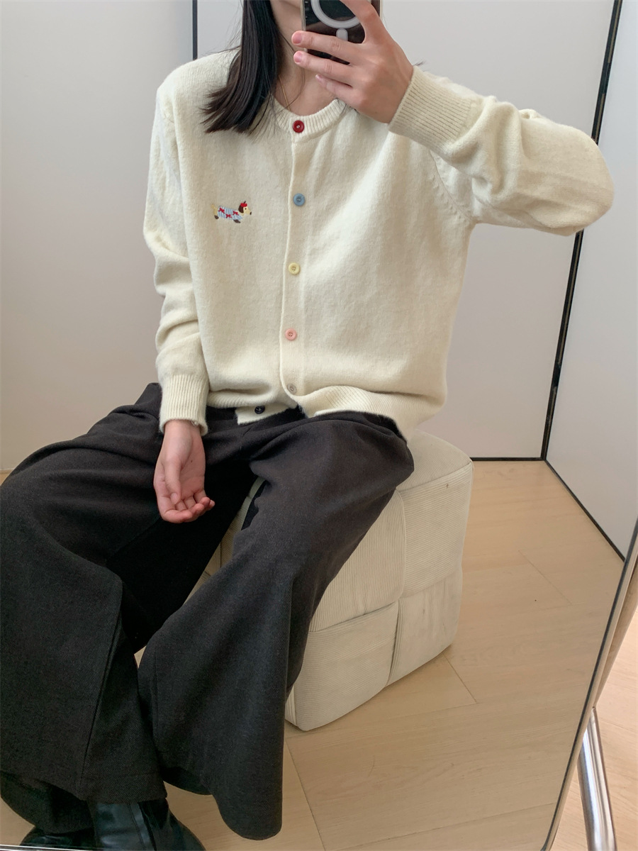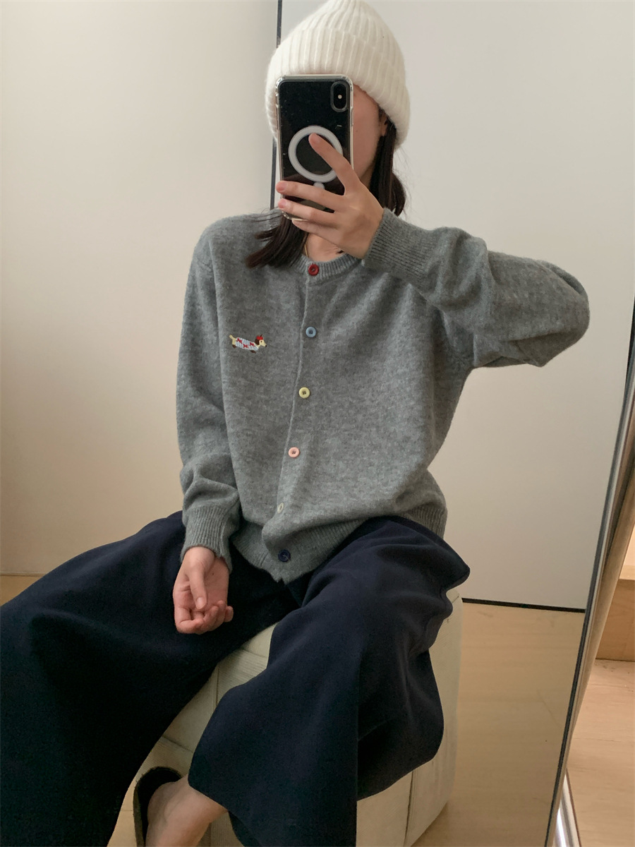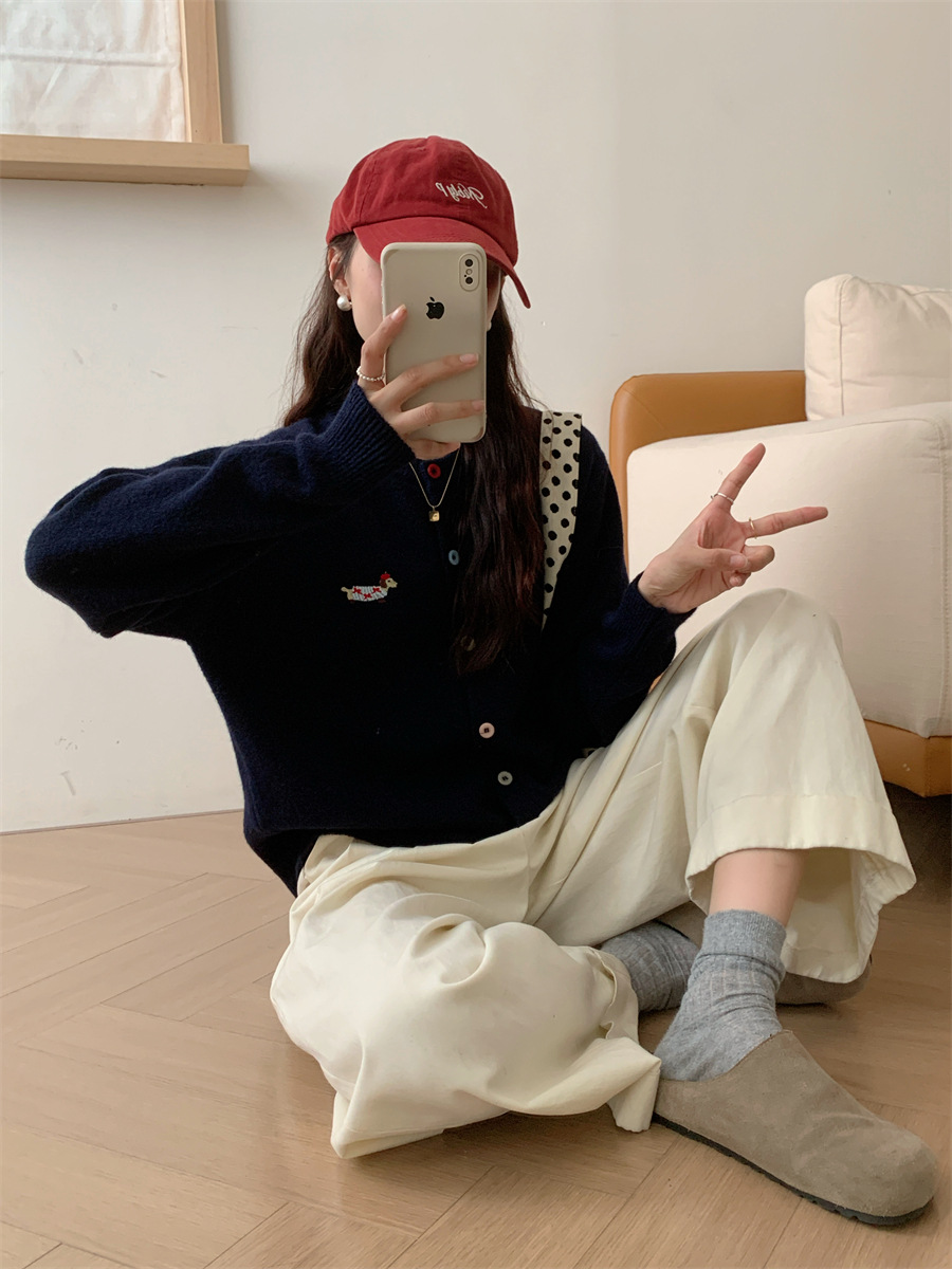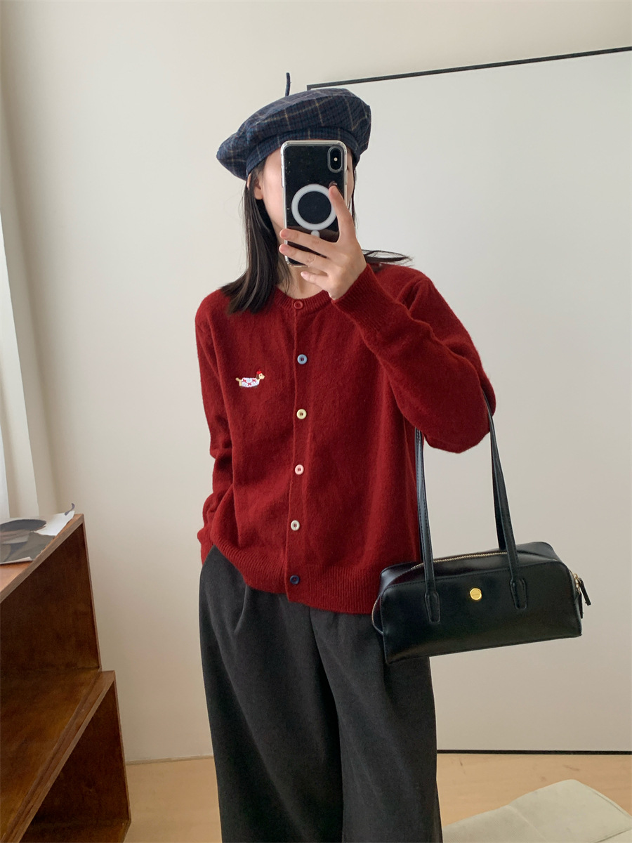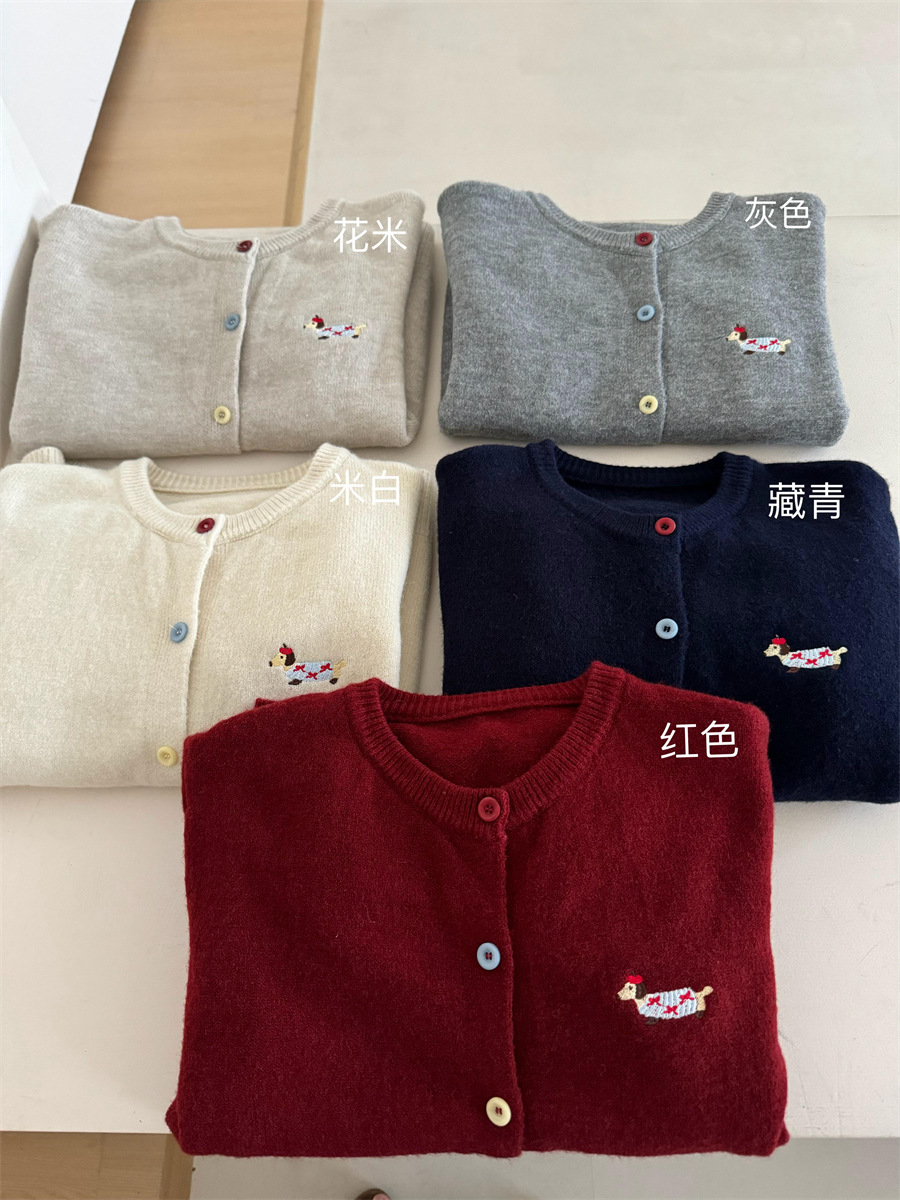 Милый и простой стильный кардиган с круглым вырезом в виде таксы, осень 2024, новый универсальный трикотажный топ с вышивкой для похудения