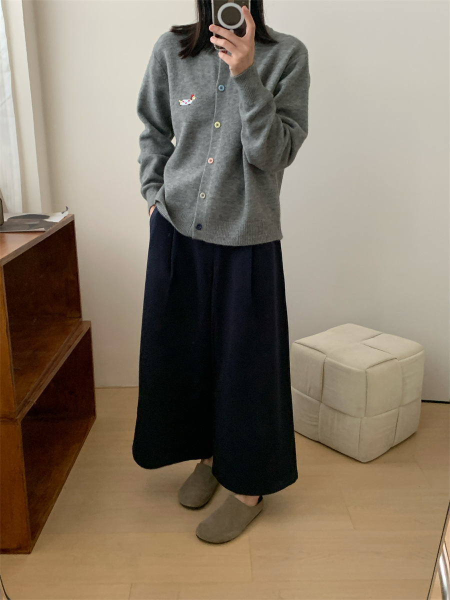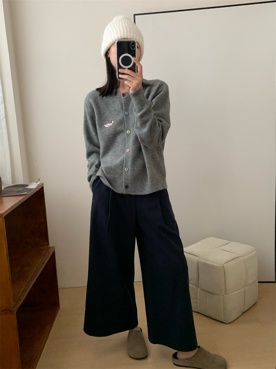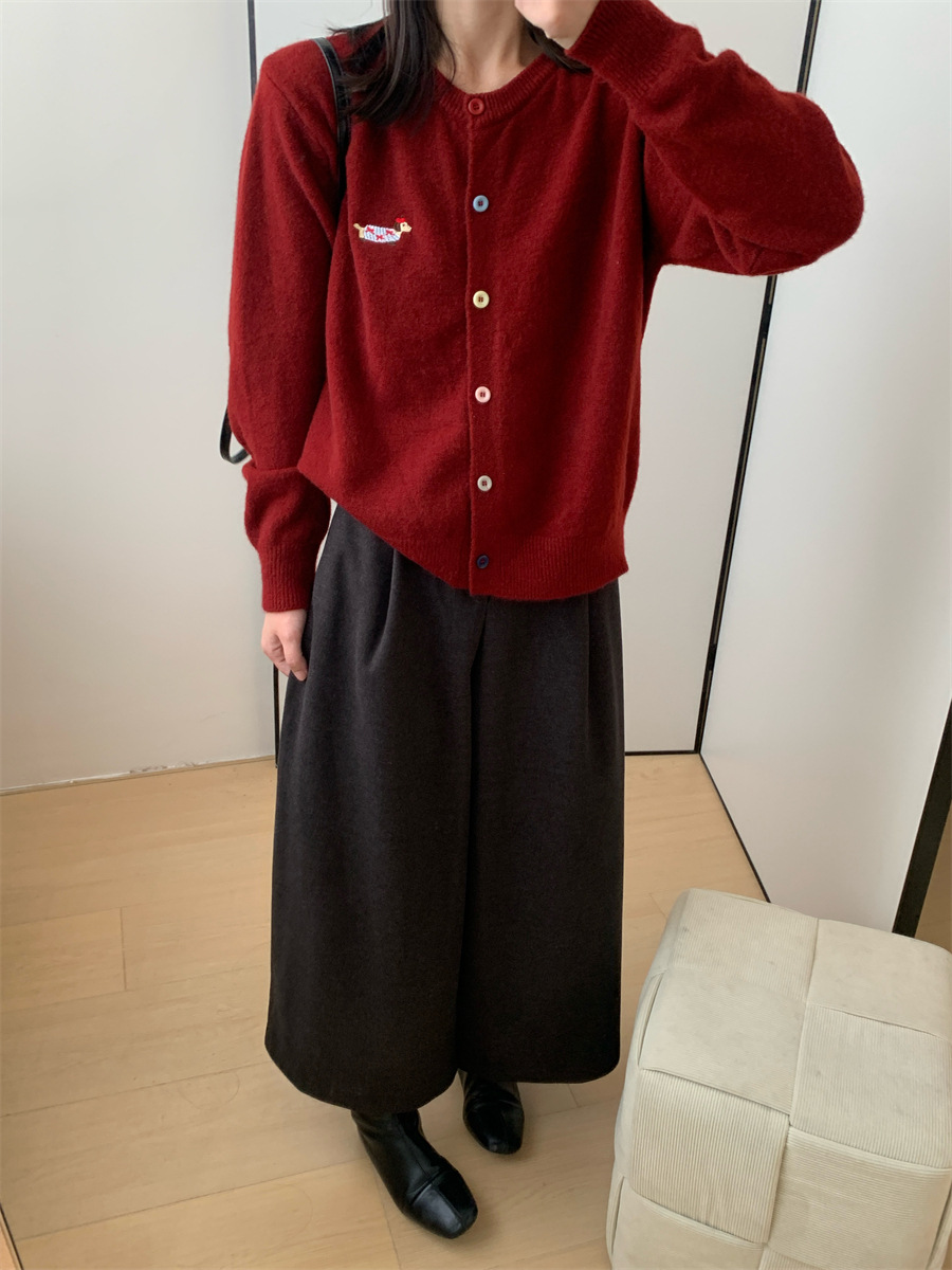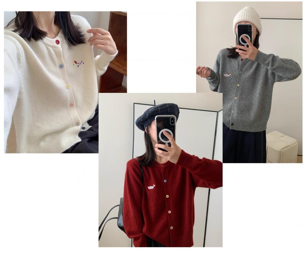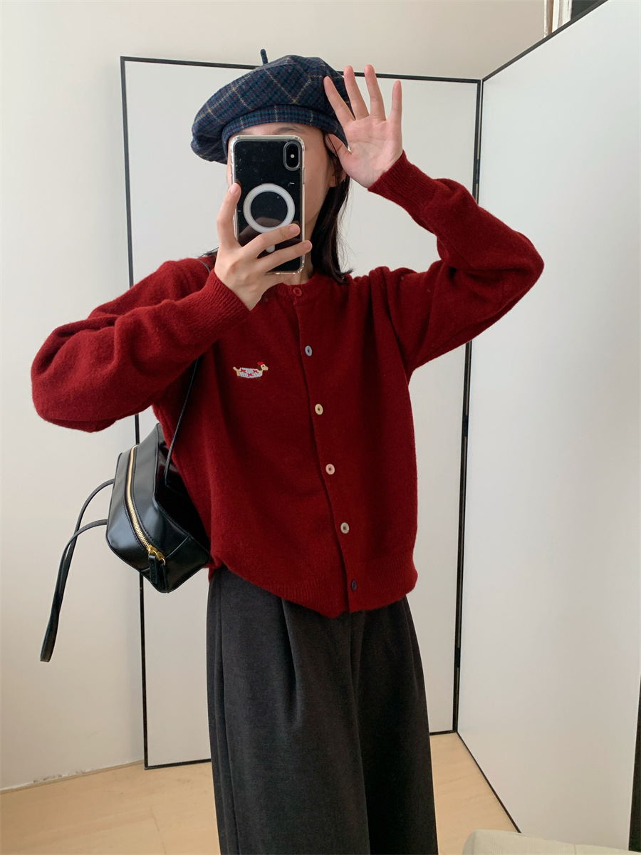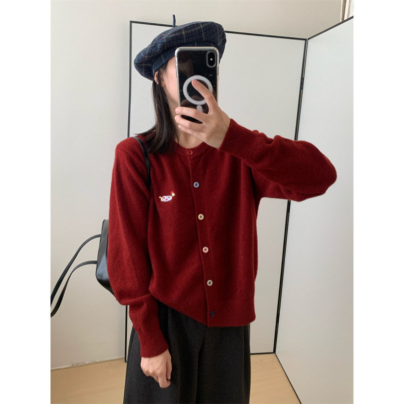 Милый и простой стильный кардиган с круглым вырезом в виде таксы, осень 2024, новый универсальный трикотажный топ с вышивкой для похудения