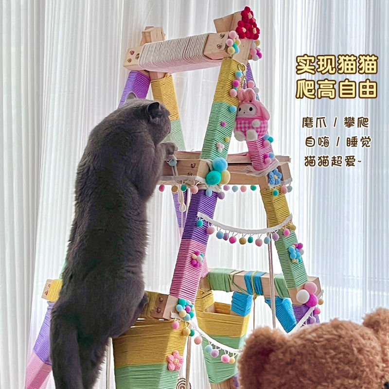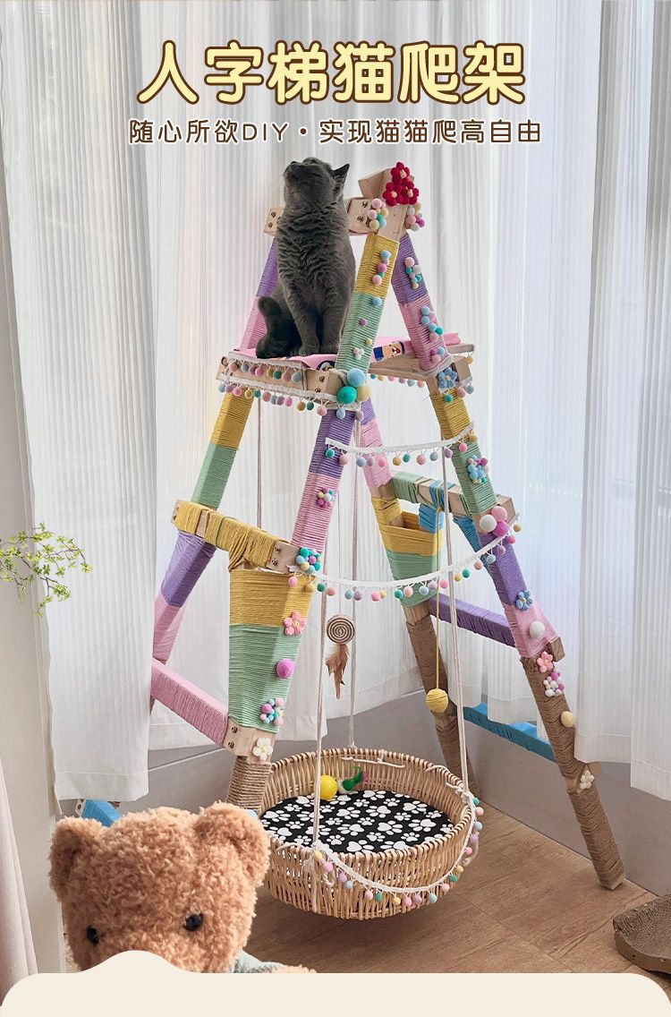 Катамаран для кошек, хлопковая веревка, лестница «елочка», лестница для кошек, веревочная лестница для кошек, материал, аксессуары, доска для кошек, лестница из цельного дерева, кошка «сделай сам»