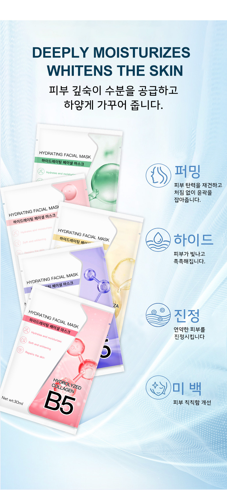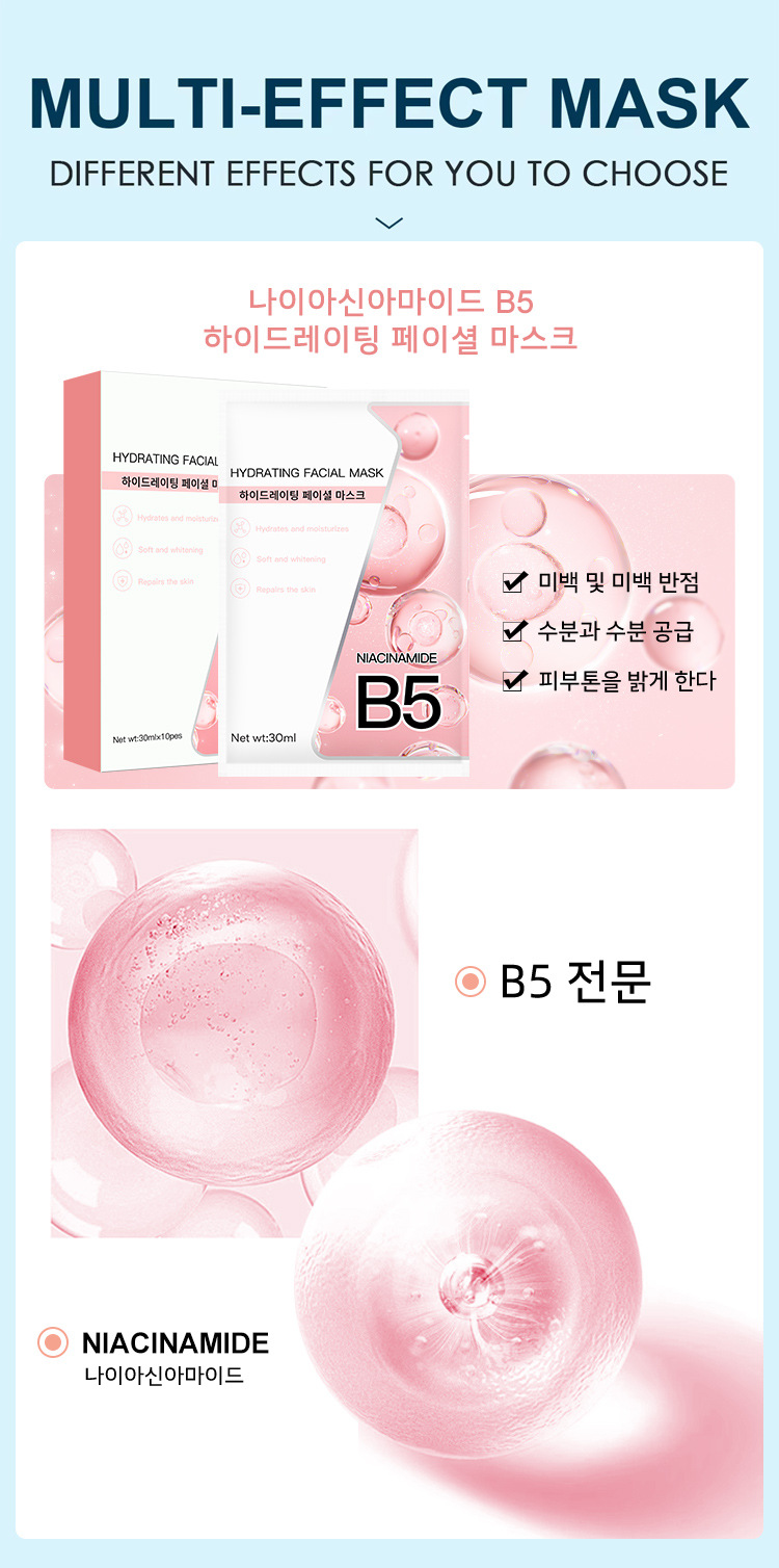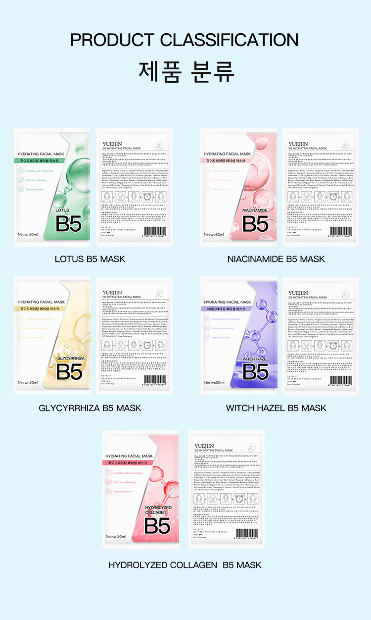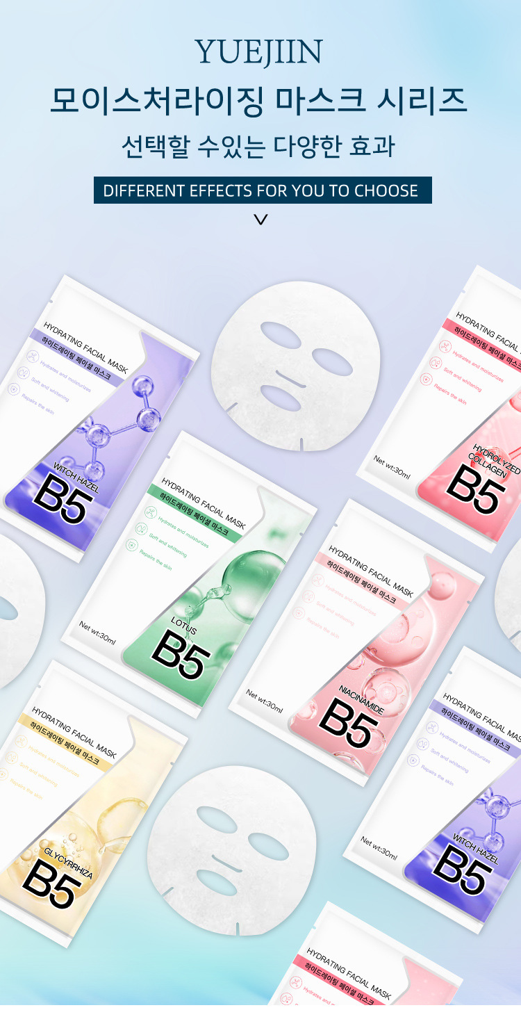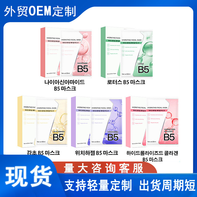 Маска для лица с солодкой B5 (трансграничные товары предназначены только для экспорта, не продаются внутри страны); Маска Witch Hazel B5 (трансграничные продукты предназначены только для экспорта, не продаются внутри страны); Маска для лица Lotus B5 (товары, предназначенные для трансграничной торговли, предназначены только для экспорта, не продаются внутри страны); Маска с гидролизованным коллагеном B5 (трансграничные продукты предназначены только для экспорта, не продаются внутри страны); Маска с ниацинамидом B5 (трансграничные продукты предназначены только для экспорта, не продаются внутри страны)