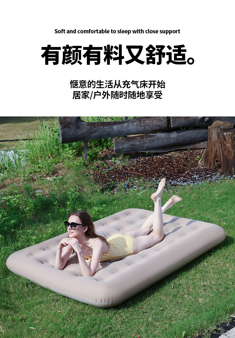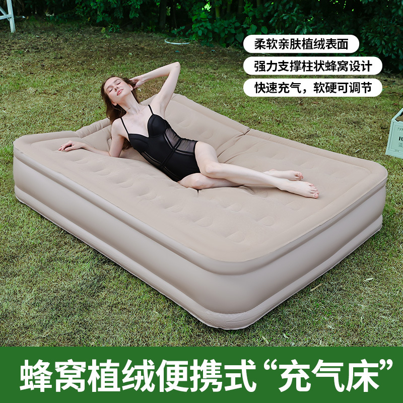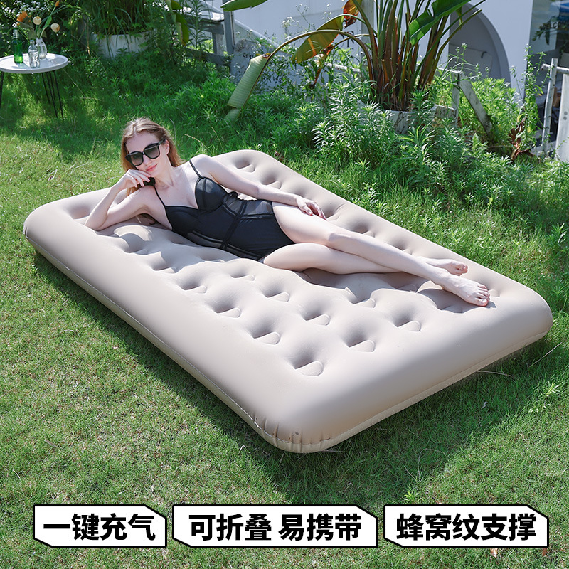 Надувные матрасы односпальные, двуспальные и трёхспальные, утолщённые для домашнего использования, портативные для использования на улице, флокированные надувные матрасы для кемпинга и отдыха, складные кровати.