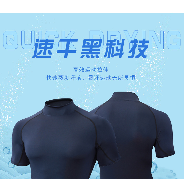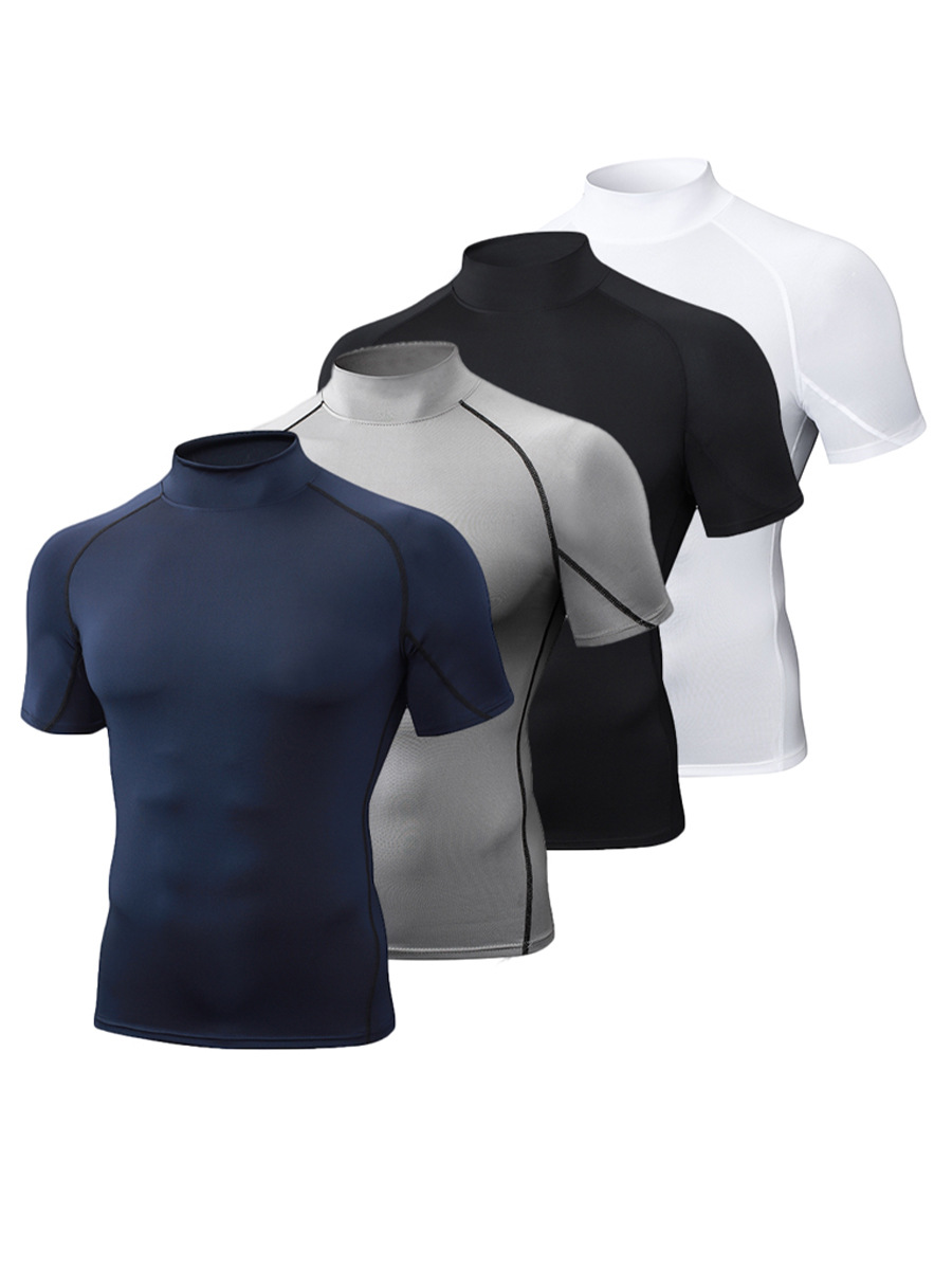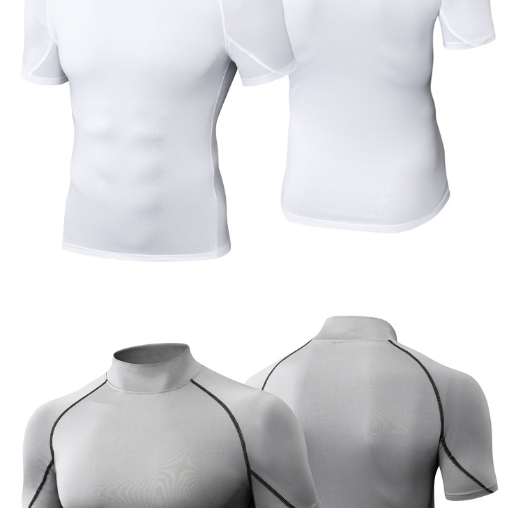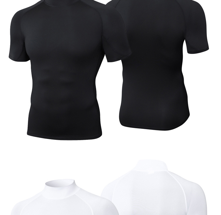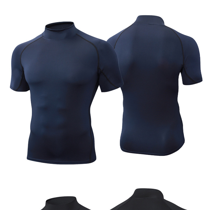 Облегающая быстросохнущая мужская летняя эластичная футболка с высоким воротником, одежда для бега, фитнеса и тренировок, спортивная компрессионная одежда с короткими рукавами