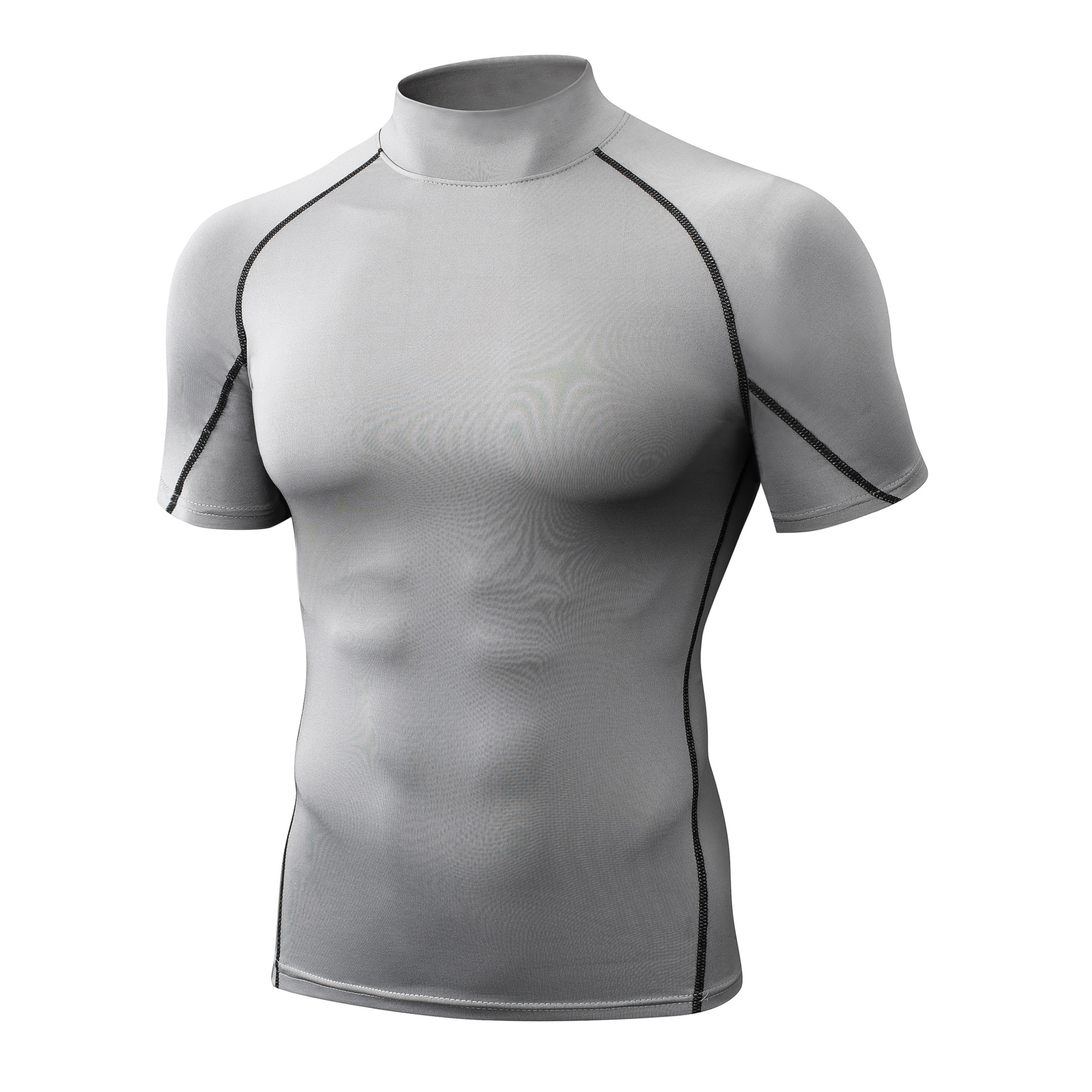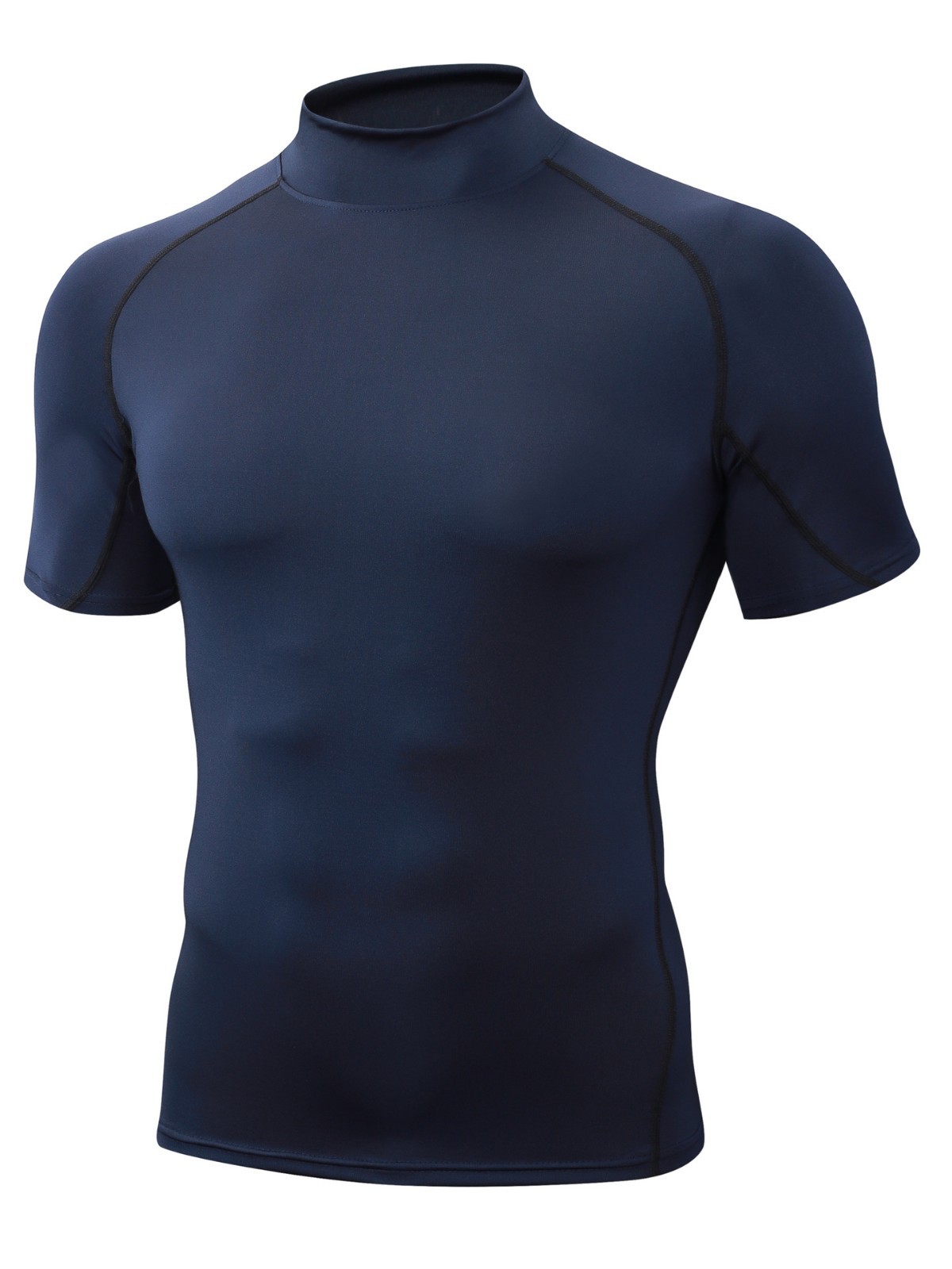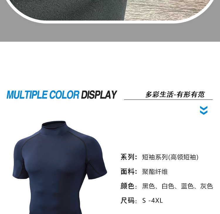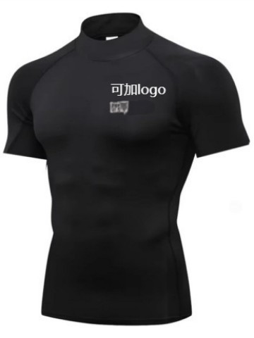 Облегающая быстросохнущая мужская летняя эластичная футболка с высоким воротником, одежда для бега, фитнеса и тренировок, спортивная компрессионная одежда с короткими рукавами