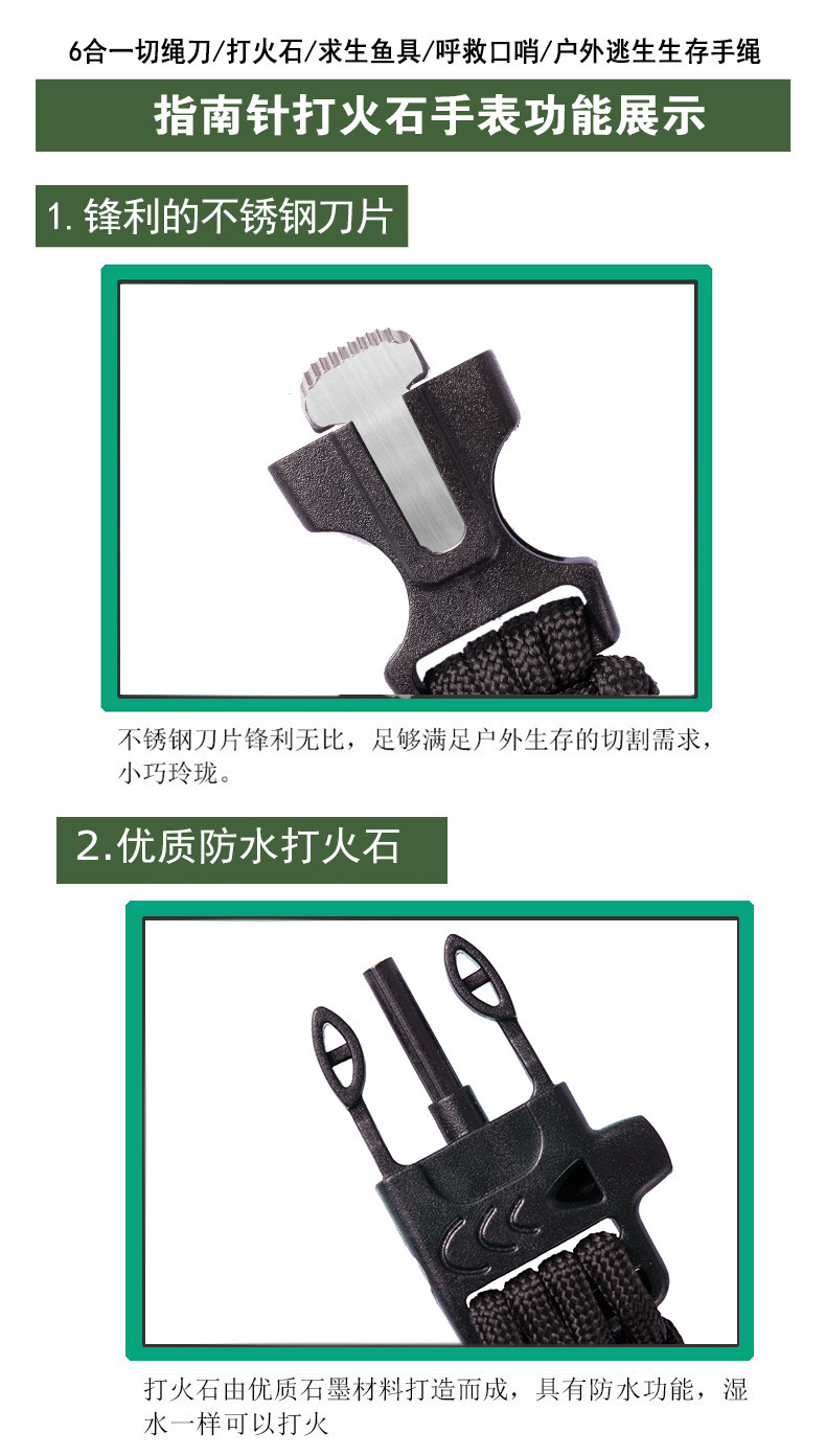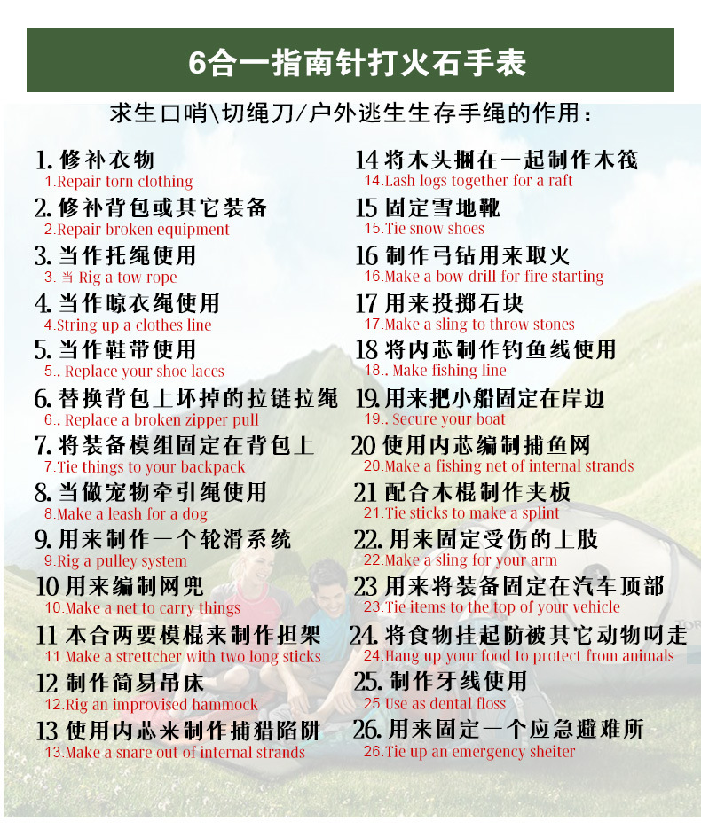 Многофункциональные наручные часы из паракорда с компасом и огнищем для выживания в дикой природе, незаменимые для кемпинга