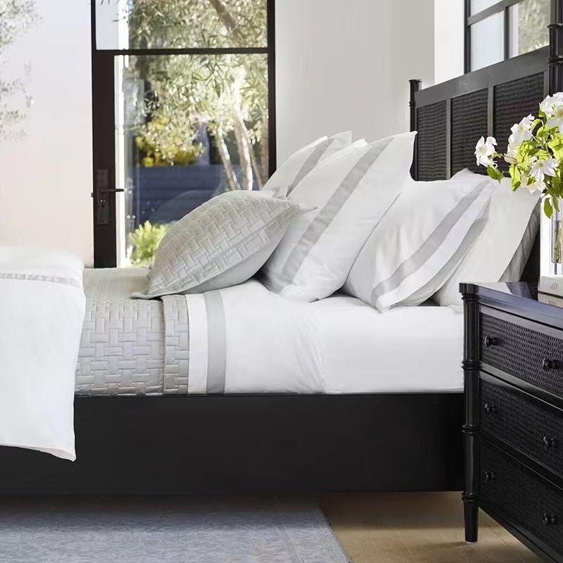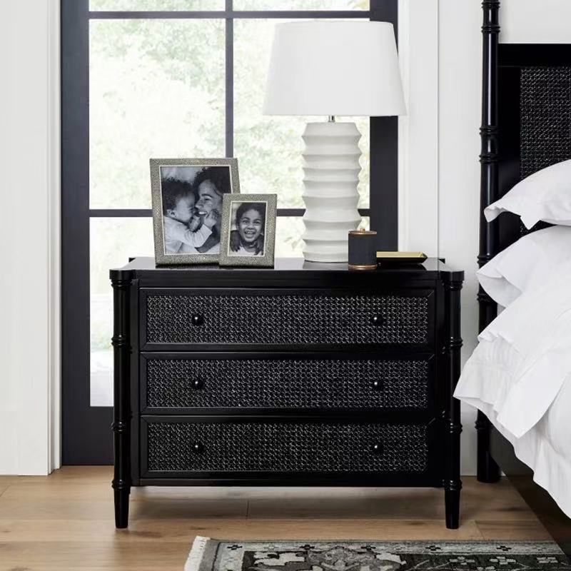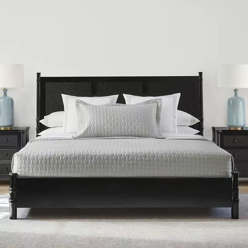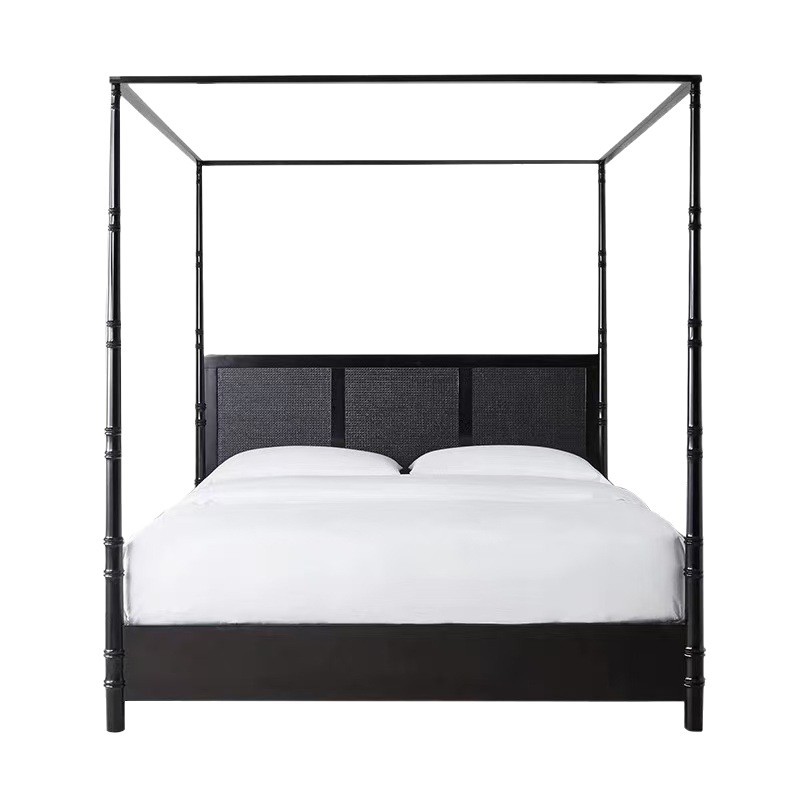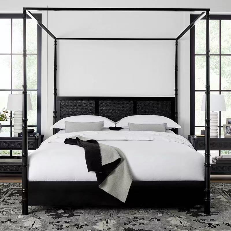 Кровать с каркасом из массива дерева во французском стиле, винтажная черная двуспальная кровать из ротанга, свадебная кровать с римскими колоннами высокого класса 1.68m года в американском стиле.
