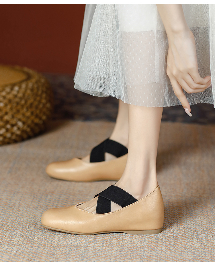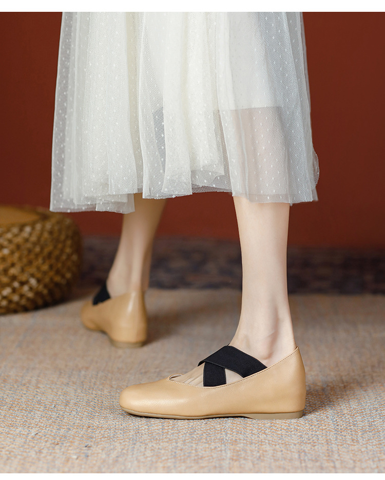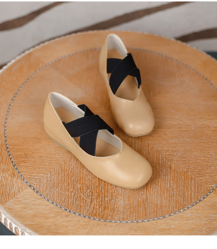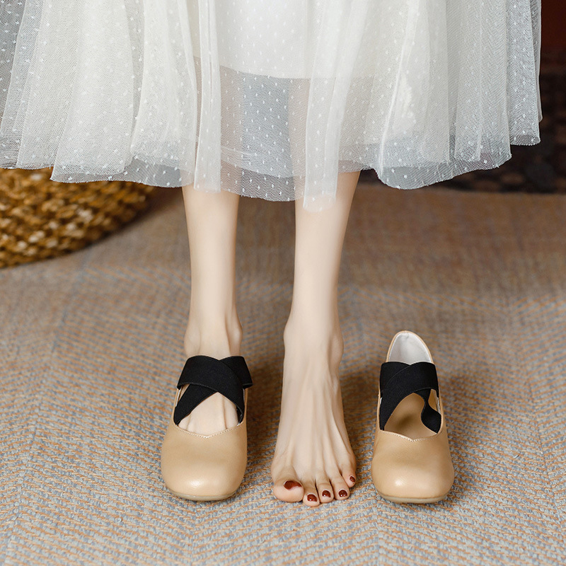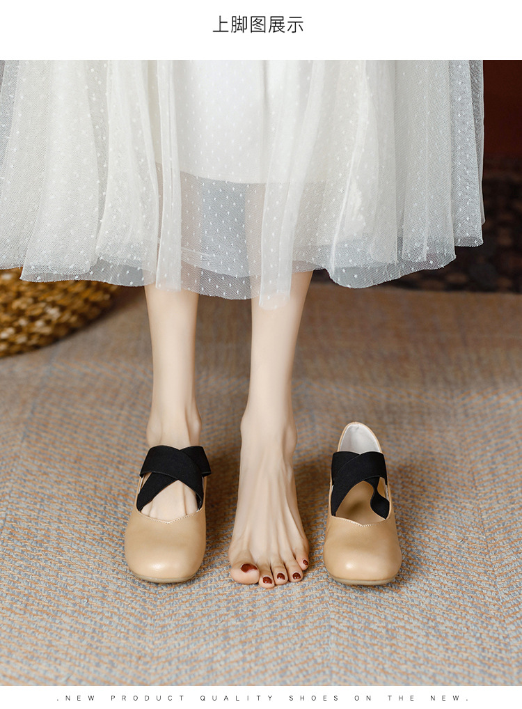 Женские балетки Гонконг 2025 Весна-Осень, квадратный носок, неглубокий вырез, французские мэри-джейн