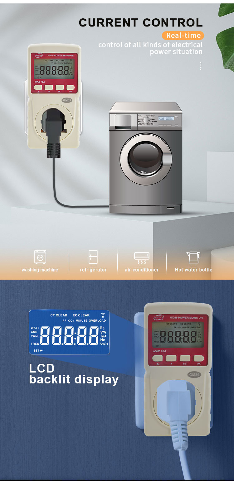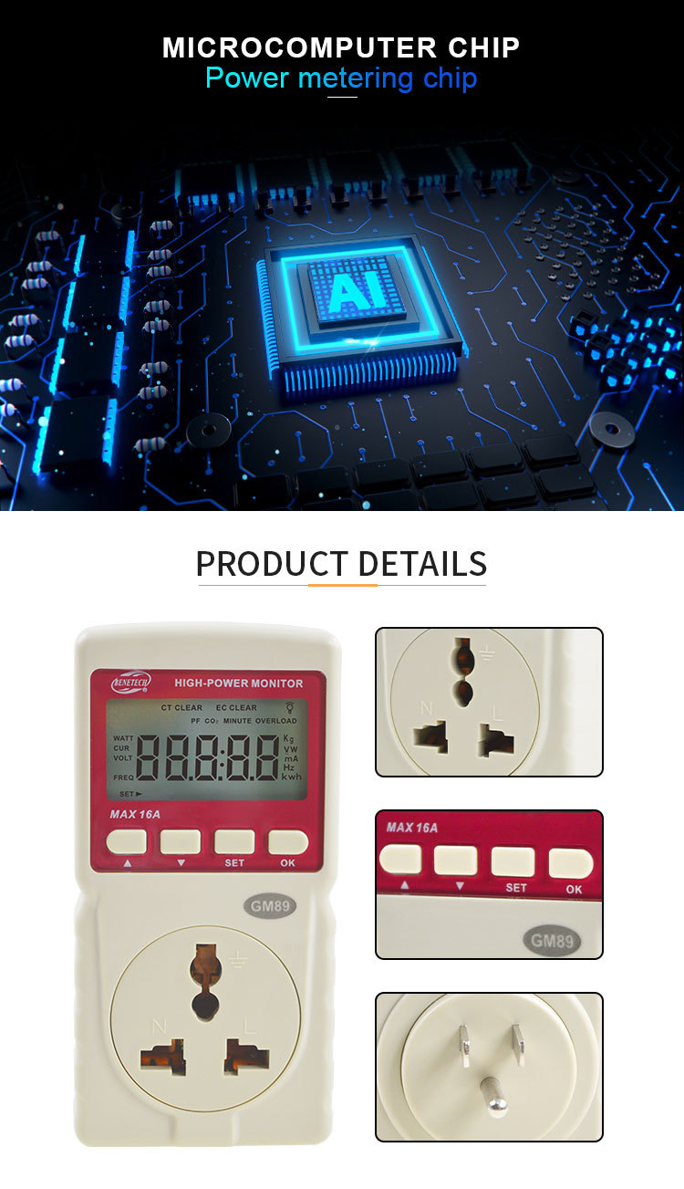 真16A版微型电源监视器产品。标准16A插孔设计,无需传输任何传输插头即可测量16A的电功率。专用电能计量芯片,配合高精度电流传感器和液晶显示,实现对电力设备的全面监控