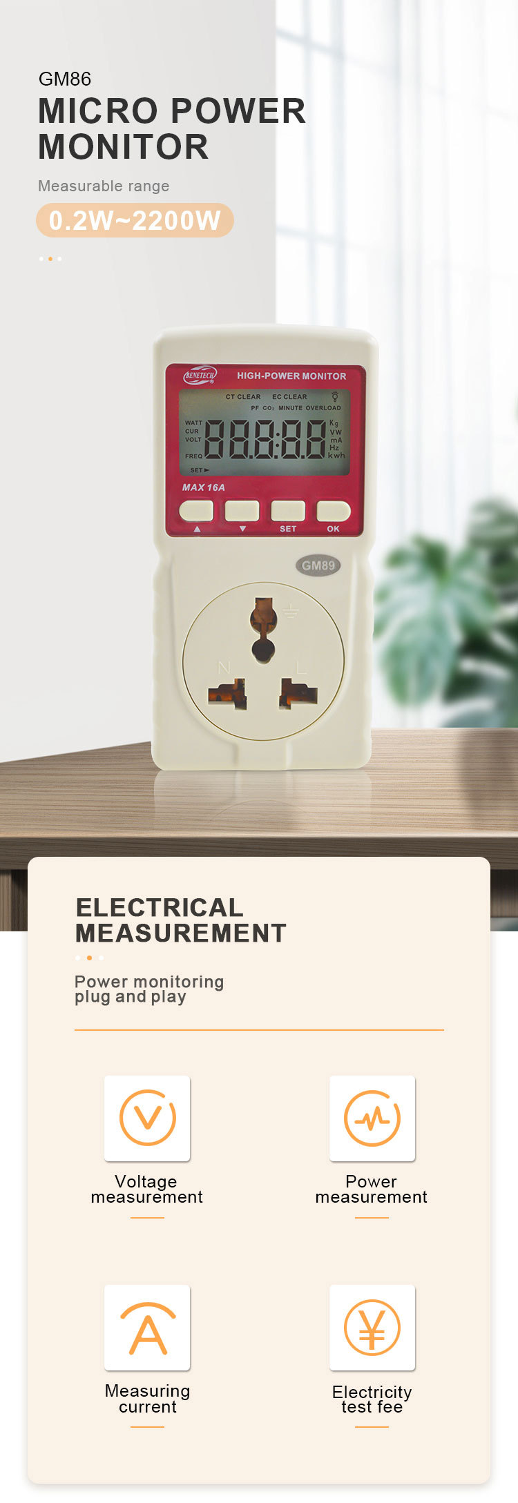 Монитор высокой мощности BENETECH GM89 100,0–260,0 В для тестирования жилых, офисных и коммерческих помещений