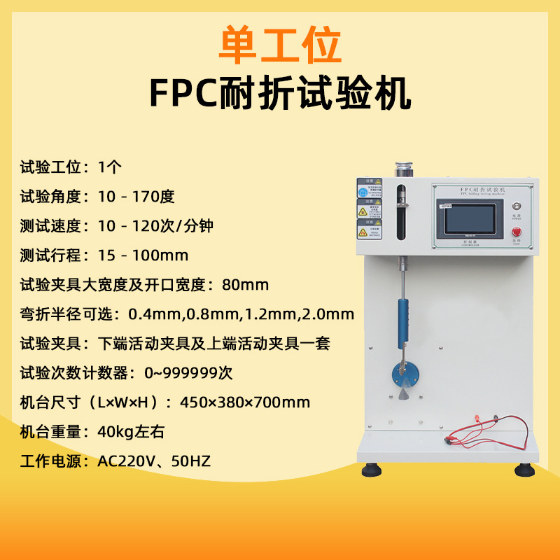 Эта машина в основном используется для проведения испытаний на изгиб печатных плат (широко известных как гибкие печатные платы), устойчивых к изгибу; такие как мобильные телефоны, КПК, цифровые словари, компьютеры Satchel и другие цифровые продукты