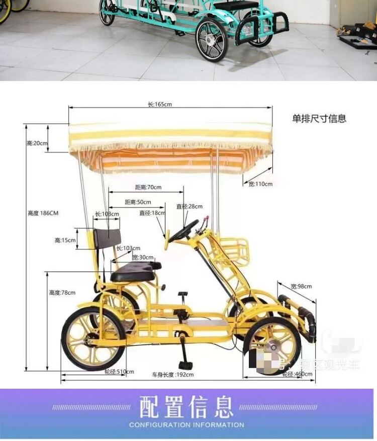 Четырехколесный аттракцион, однорядный двухколесный велосипед с навесом, туристический велосипед класса люкс, одноколесный велосипед для родителей и детей