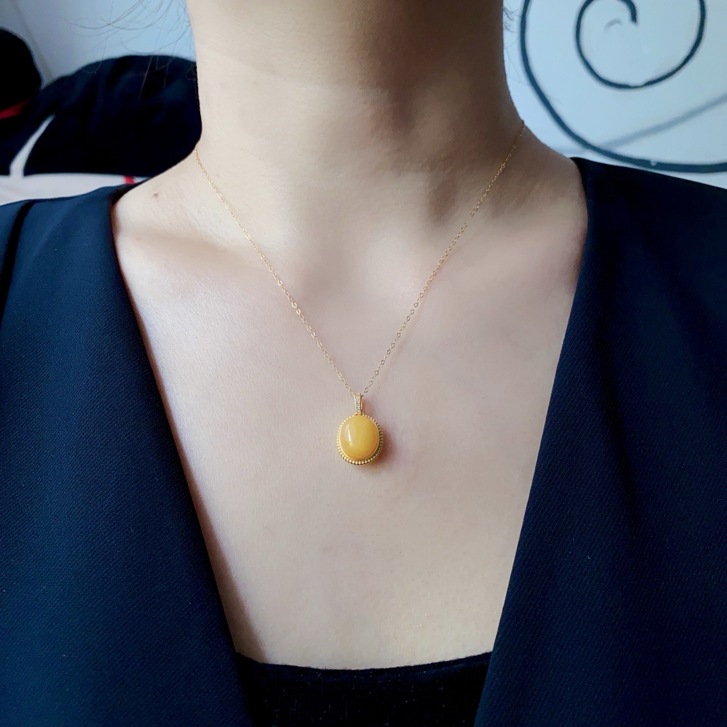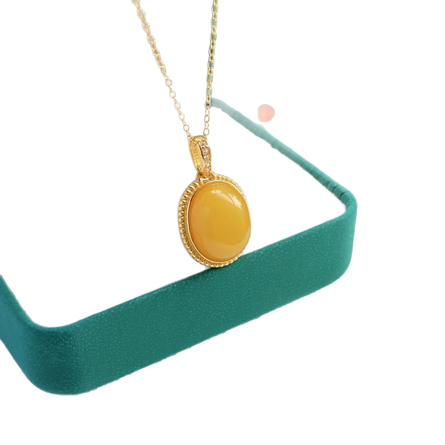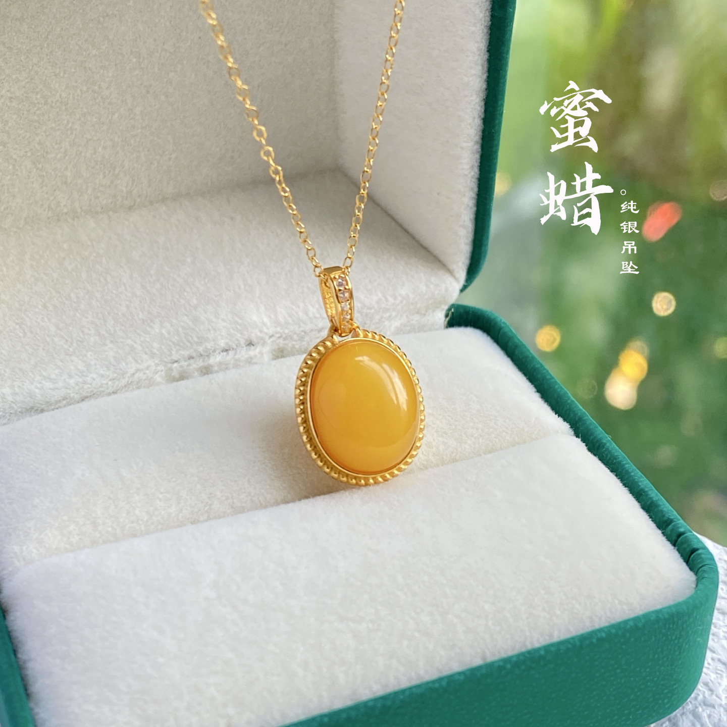 Подвеска из натурального куриного масла, желтого пчелиного воска, серебро S925, инкрустированная поверхность яйца, сырой минерал из пчелиного воска, подлинный, может быть сертифицирован, готов к продаже оптом