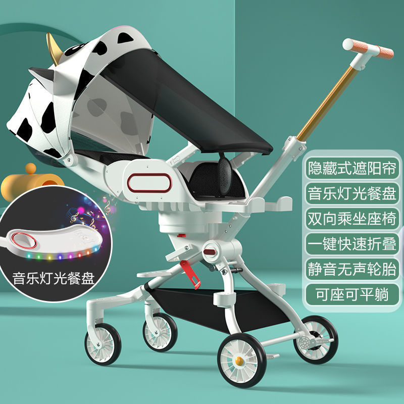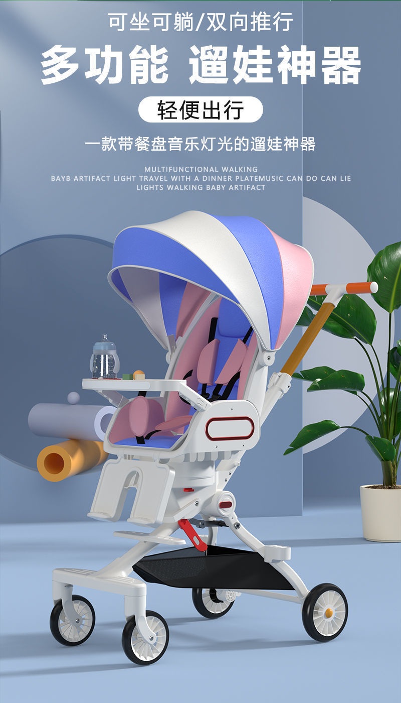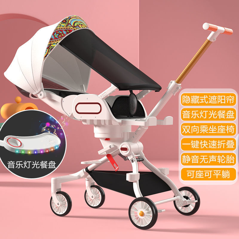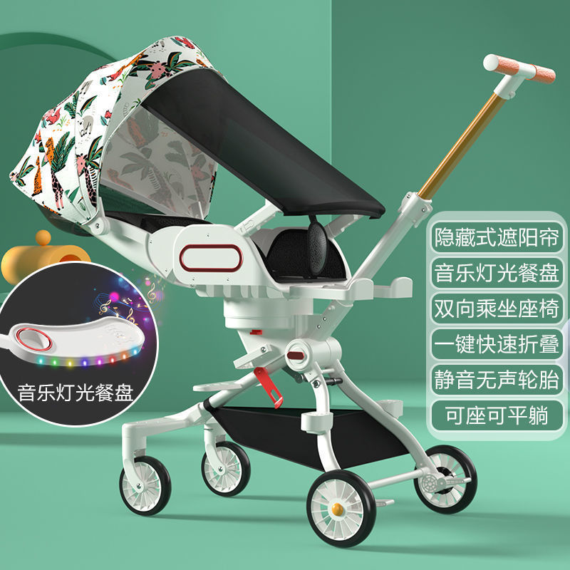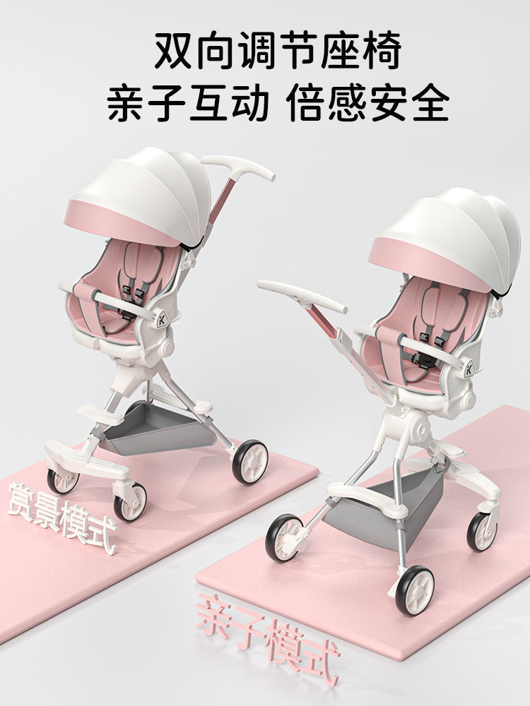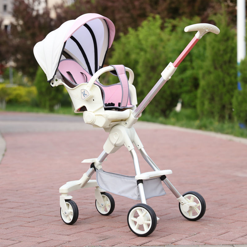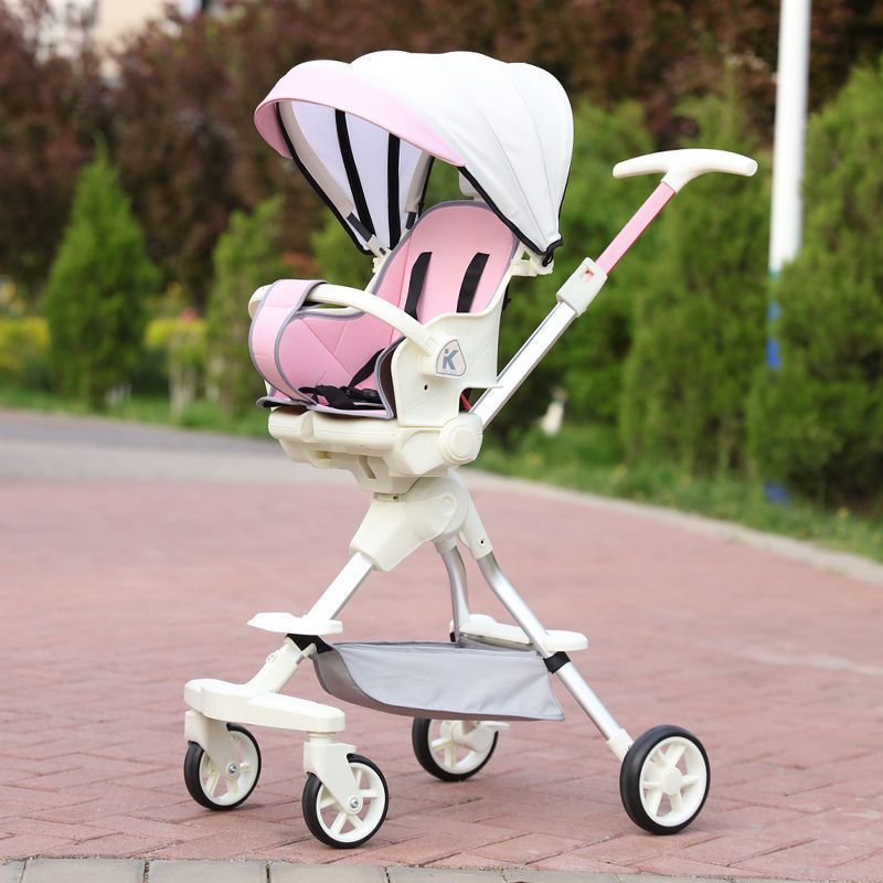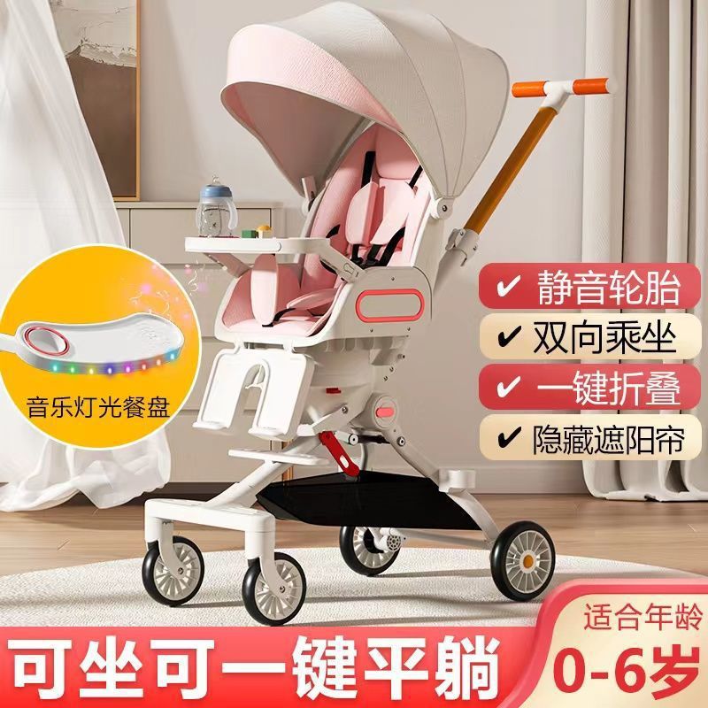 Детская прогулочная коляска, четырехколесная детская легкая складная двусторонняя коляска для детей от 1 до 6 лет с высоким обзором