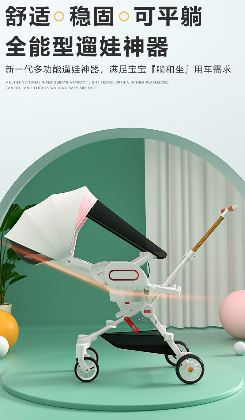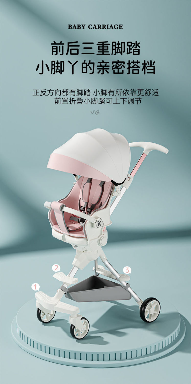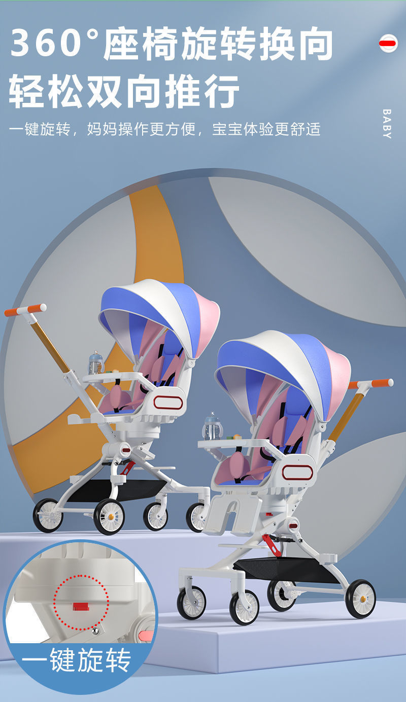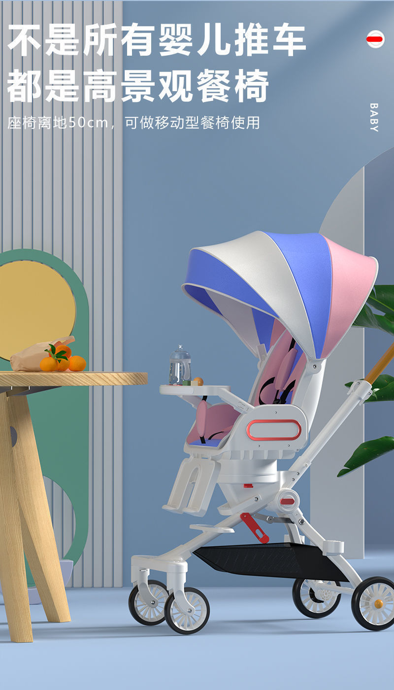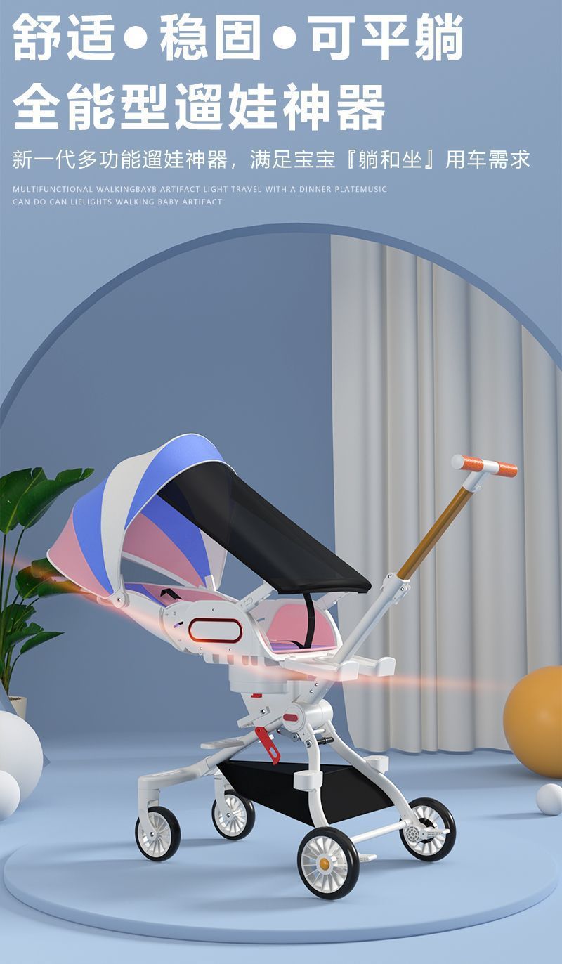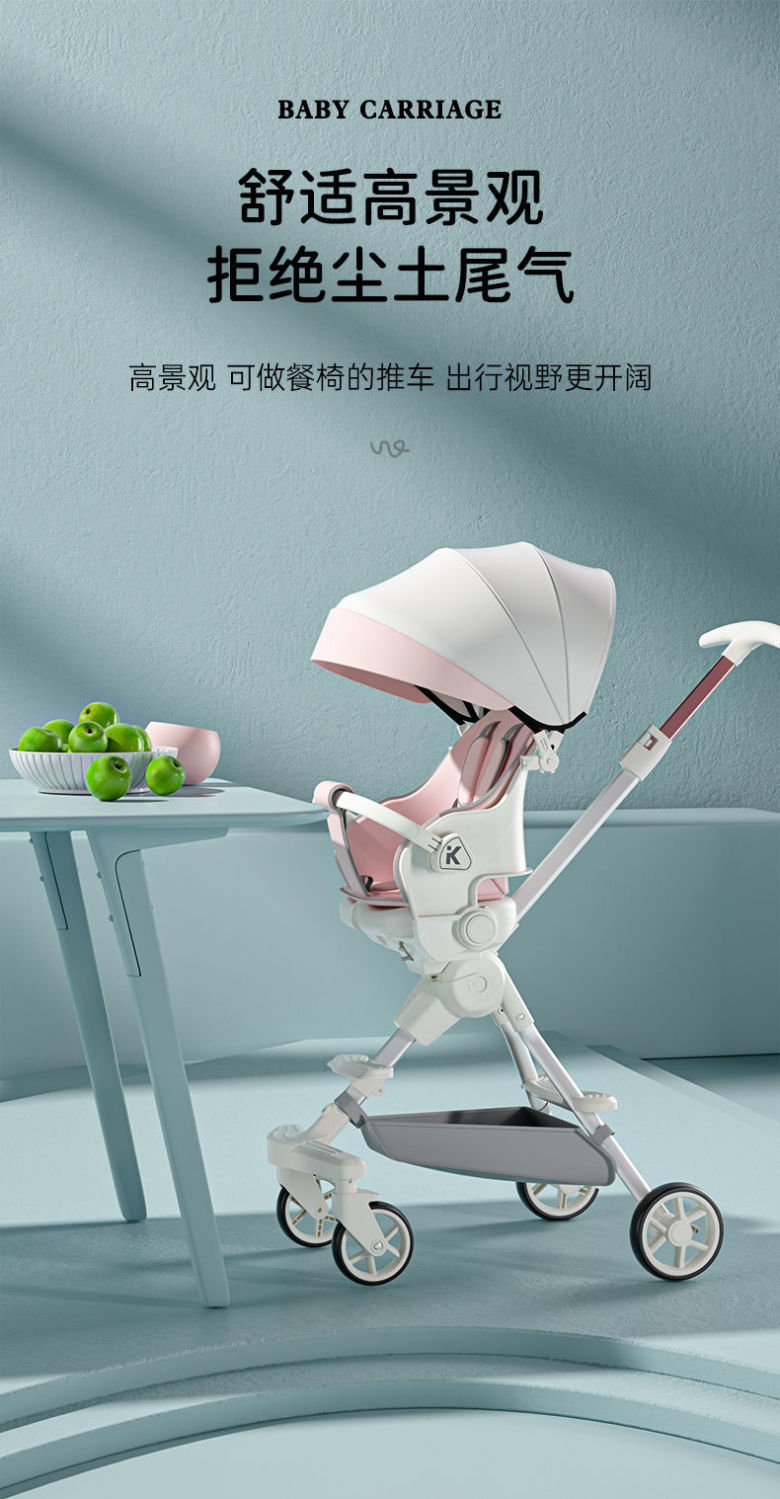 Детская прогулочная коляска, четырехколесная детская легкая складная двусторонняя коляска для детей от 1 до 6 лет с высоким обзором