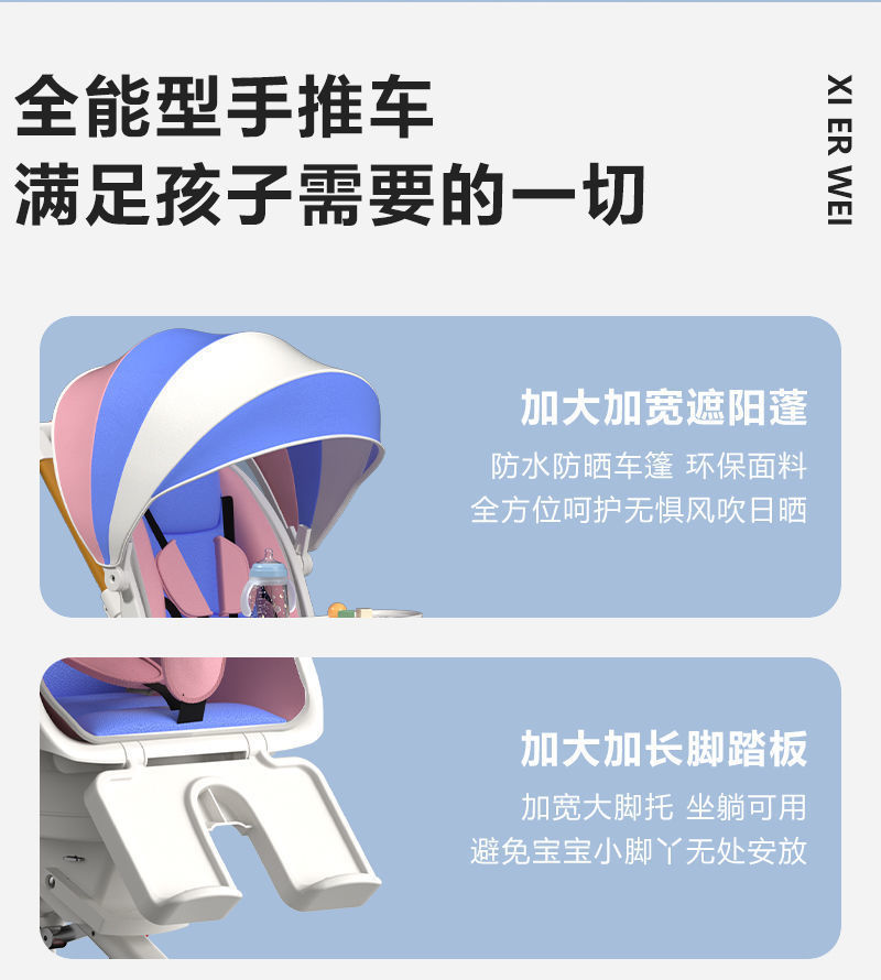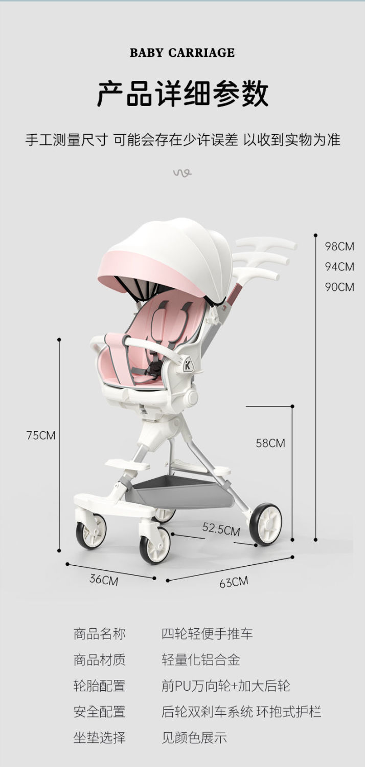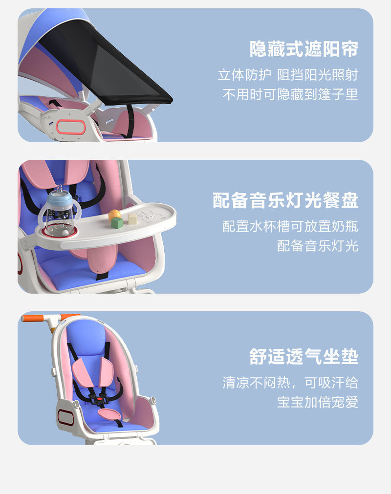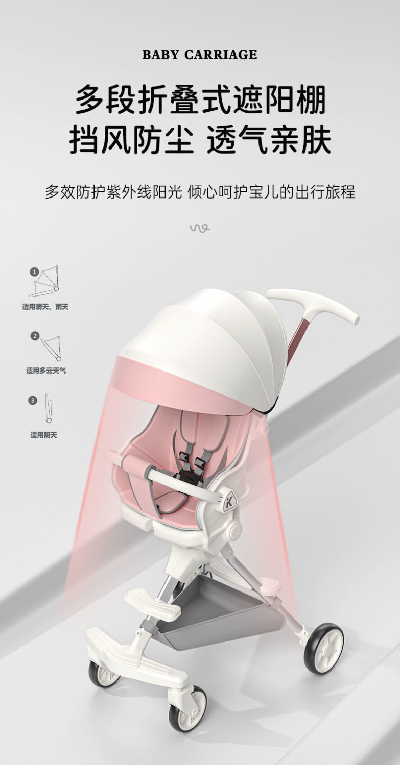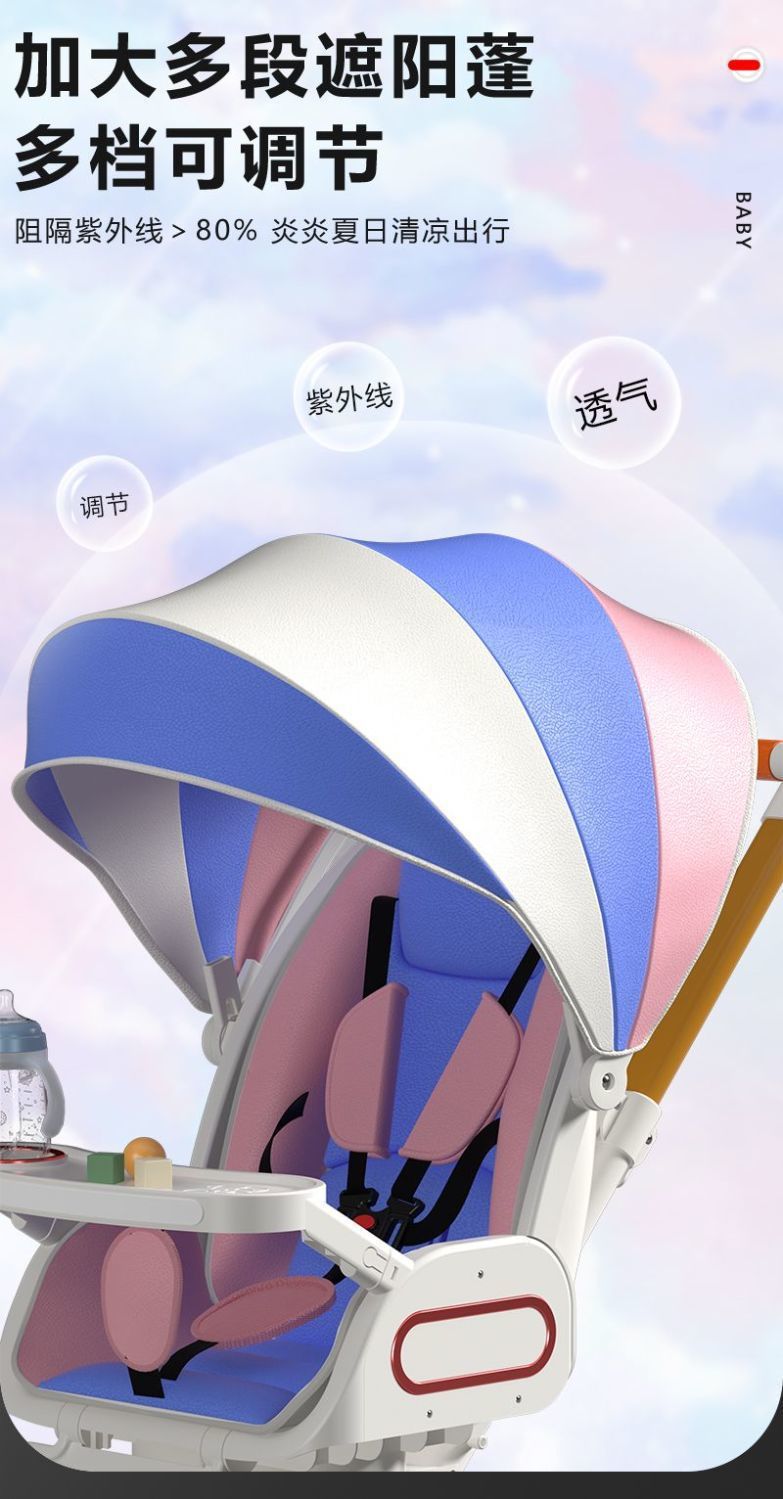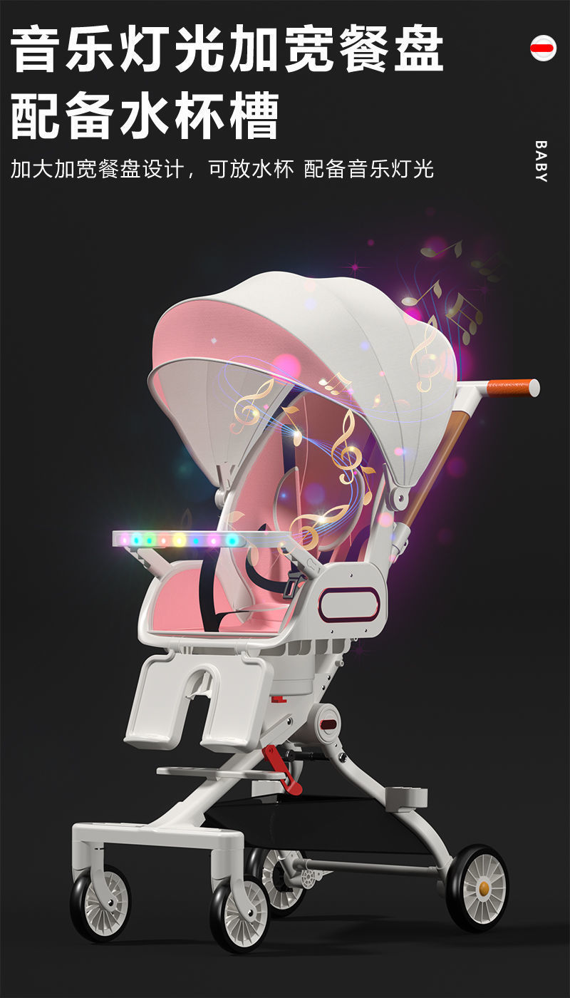 Детская прогулочная коляска, четырехколесная детская легкая складная двусторонняя коляска для детей от 1 до 6 лет с высоким обзором