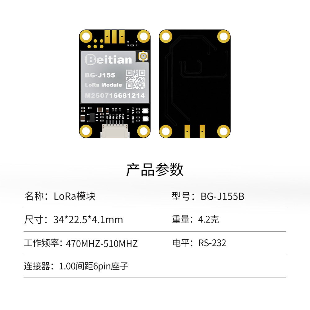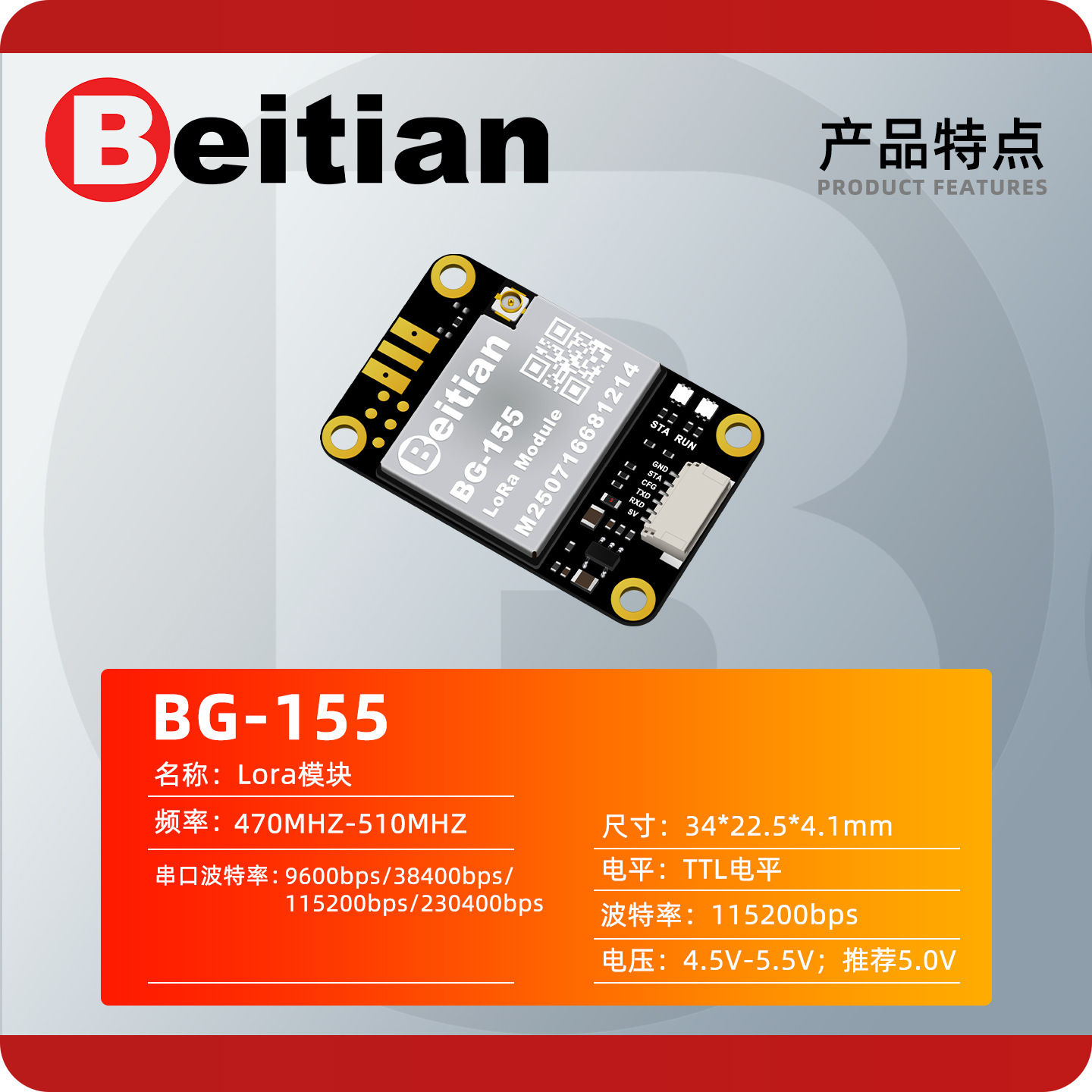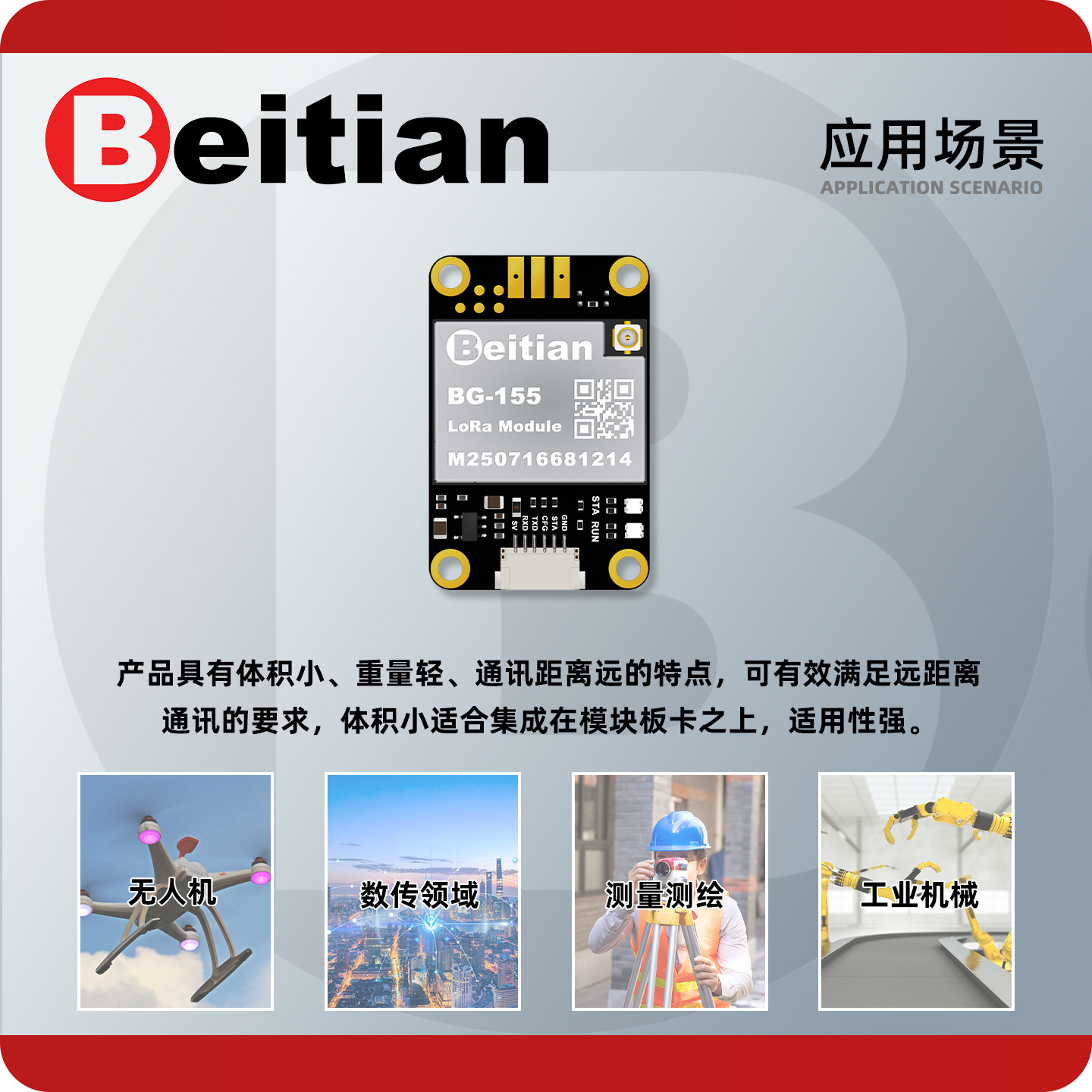 Модуль беспроводной передачи данных Beitian UAV, патч-тип, 433 МГц, радио LoRa, расширенный спектр, модуль DTU, прозрачная передача, BG-155