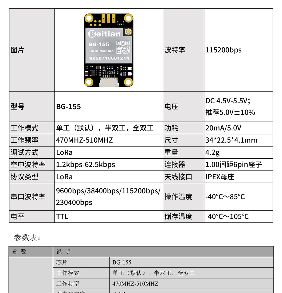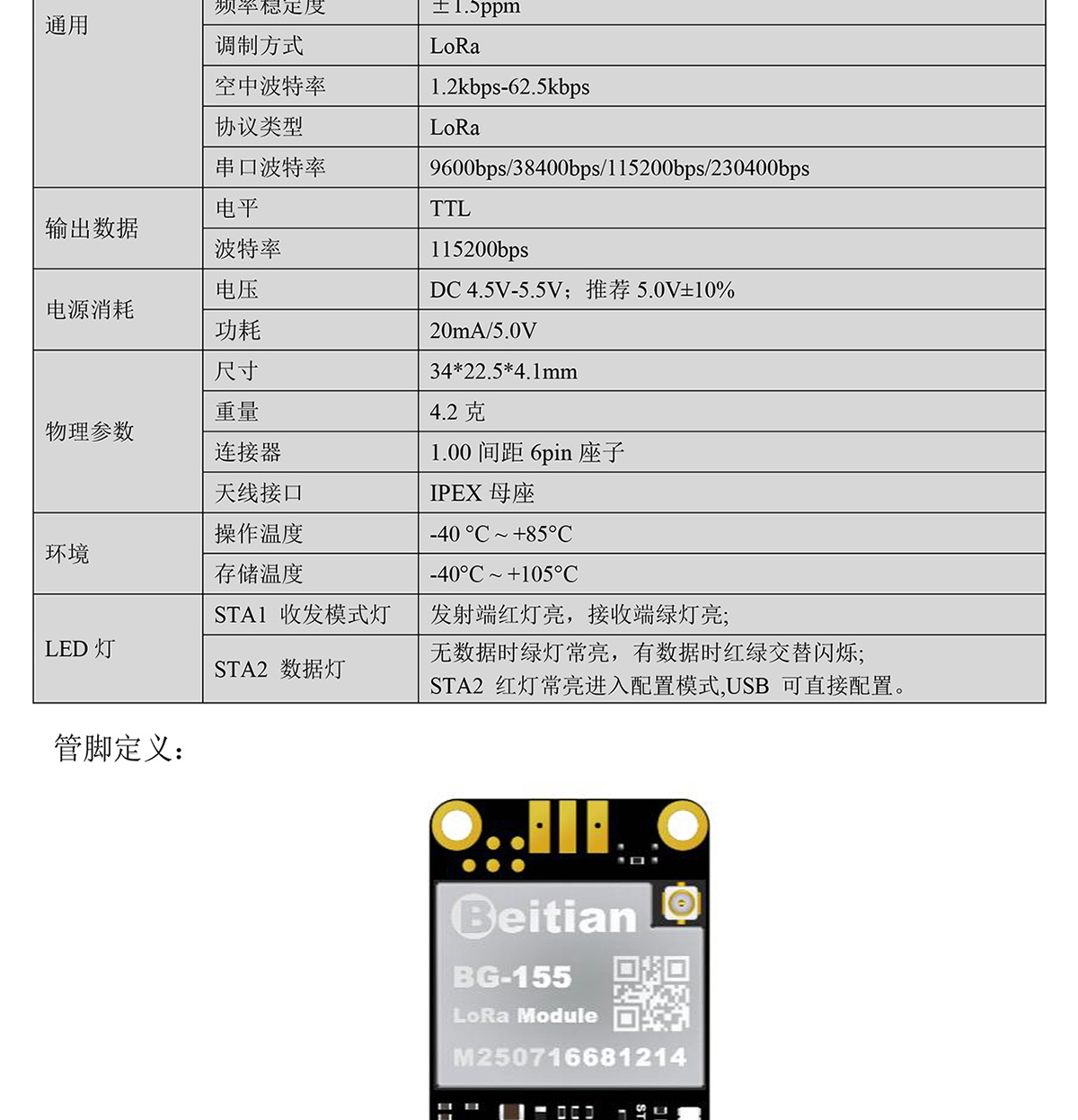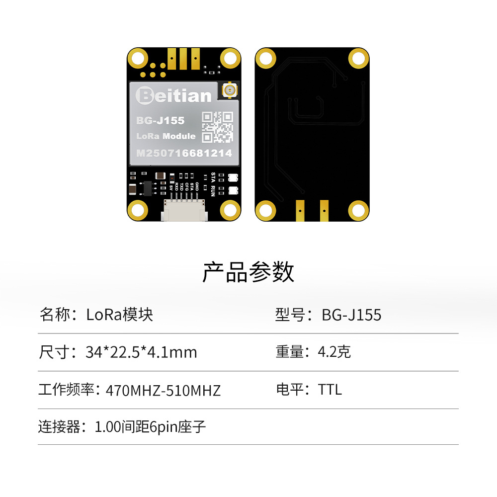 Модуль беспроводной передачи данных Beitian UAV, патч-тип, 433 МГц, радио LoRa, расширенный спектр, модуль DTU, прозрачная передача, BG-155