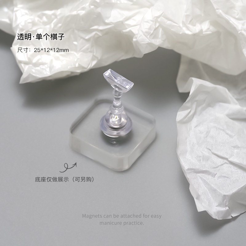Мини-манекен для маникюра, полностью прозрачный держатель для ногтей в форме шахматной фигуры с магнитом, магнитная подставка для демонстрации ногтей для коротких ногтей