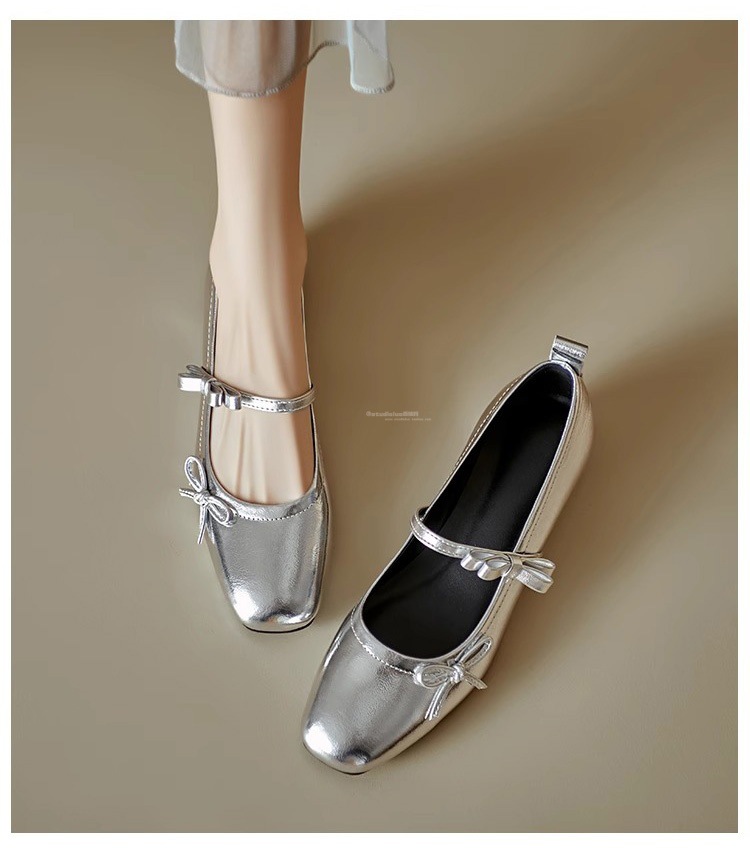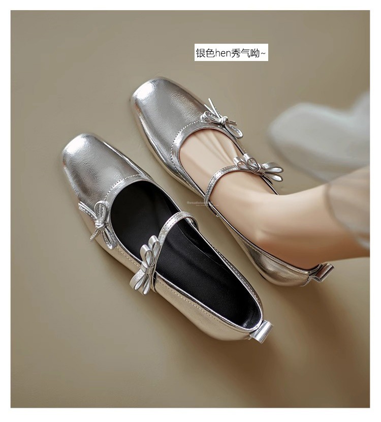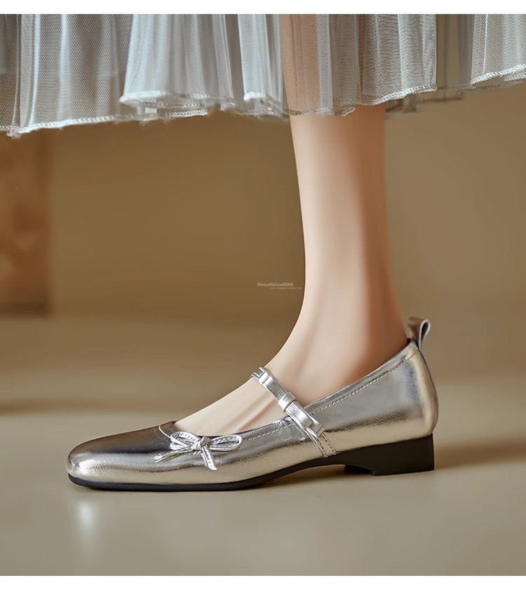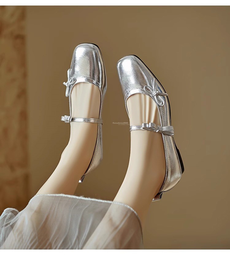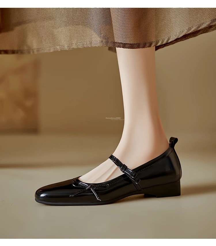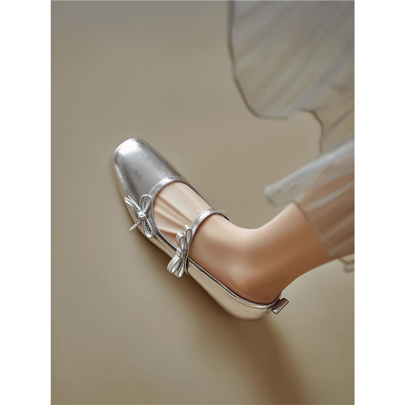 Женские туфли Мэри Джейн на массивном каблуке с бантом, лето 2025, новые универсальные элегантные балетки с квадратным носком и неглубоким вырезом.