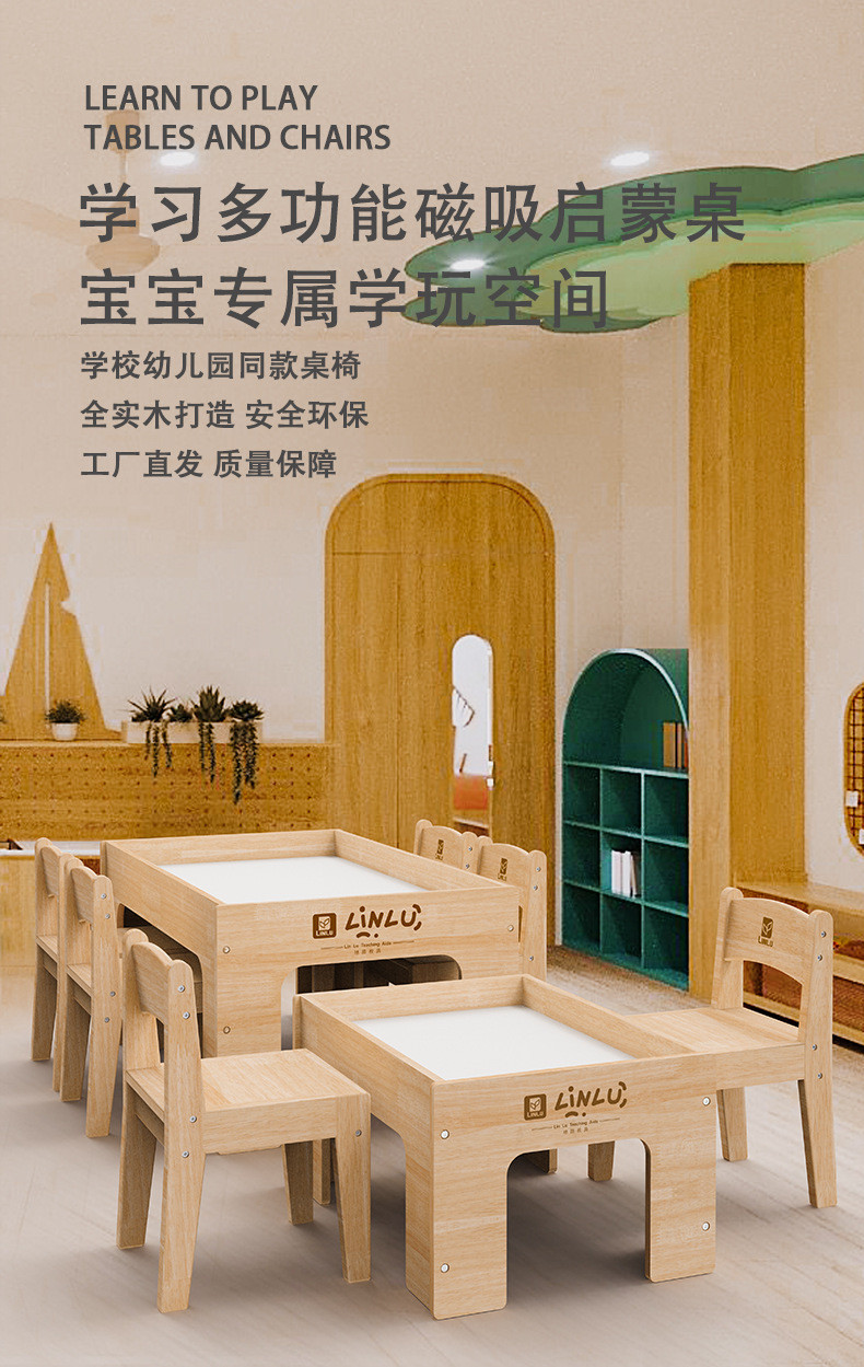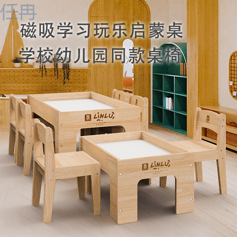 Детский игровой стол из цельного дерева для детского сада, магнитные строительные блоки, игрушки, обучающее обучение, раннее образование, многофункциональная роспись ручной работы xKW
