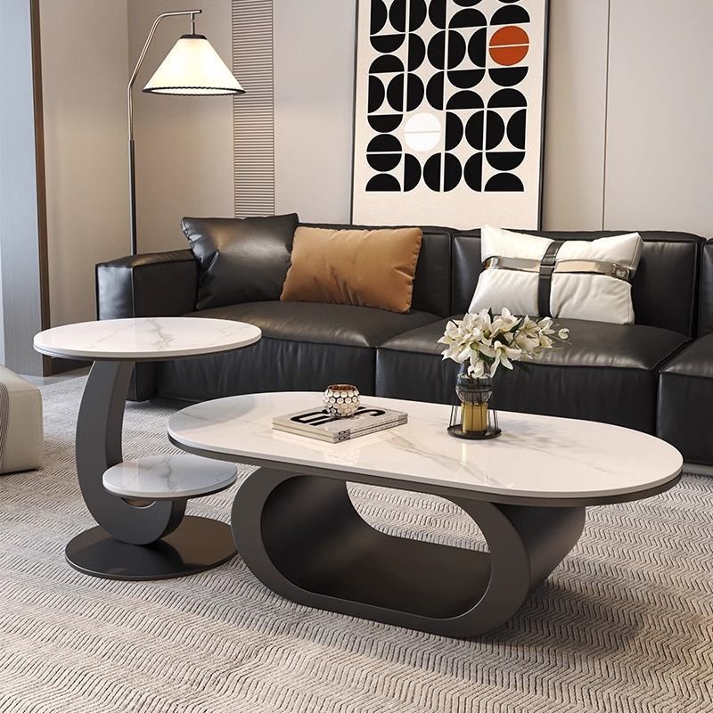 Итальянский минималистичный новый сланцевый журнальный столик для гостиной, домашний комбинированный светлый роскошный овальный чайный столик
