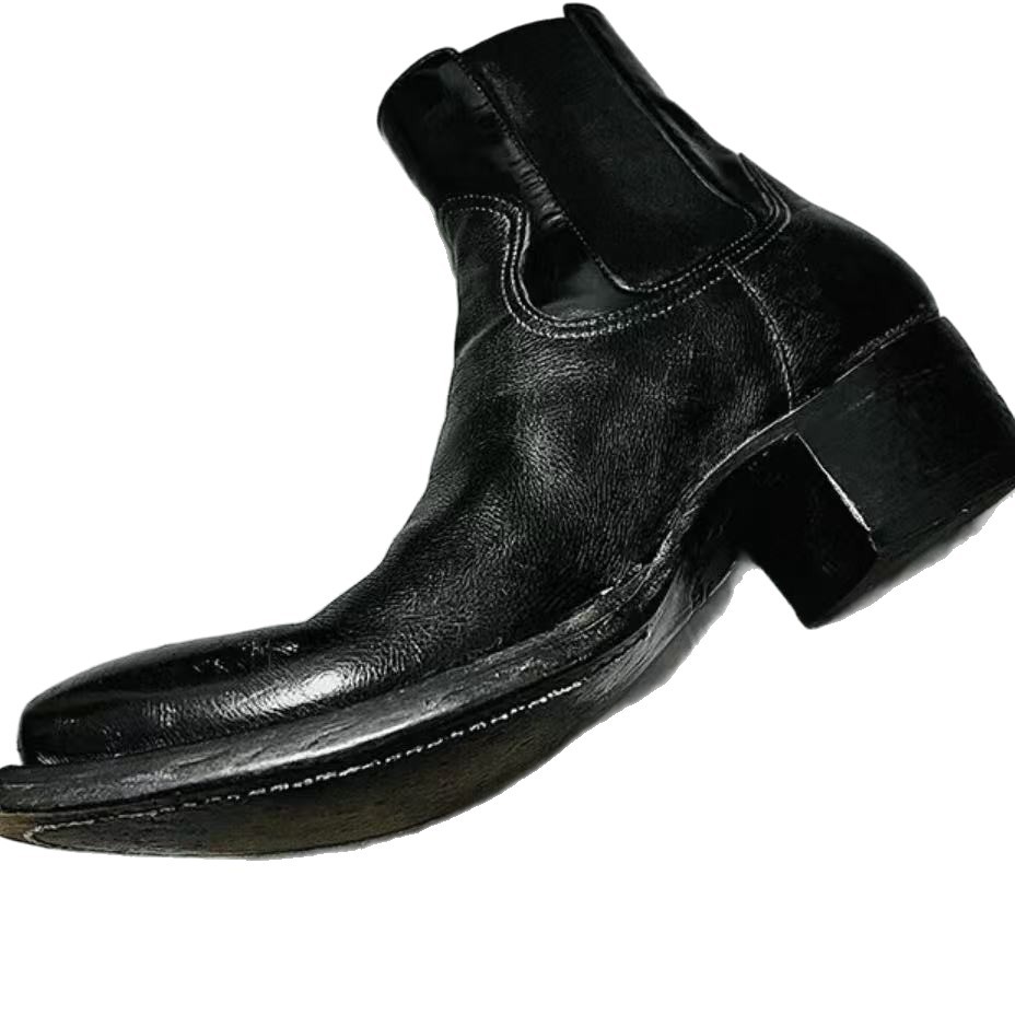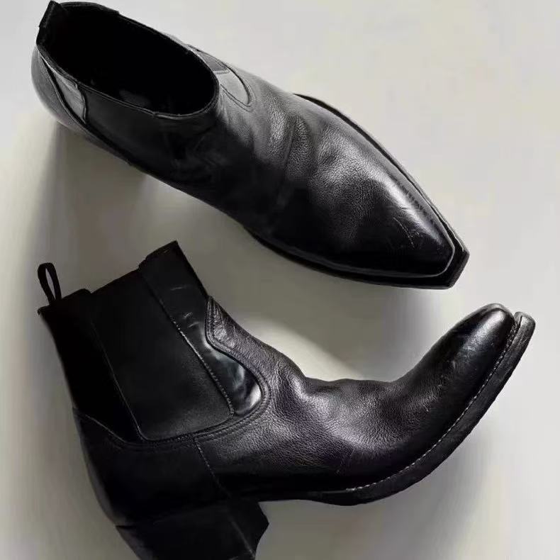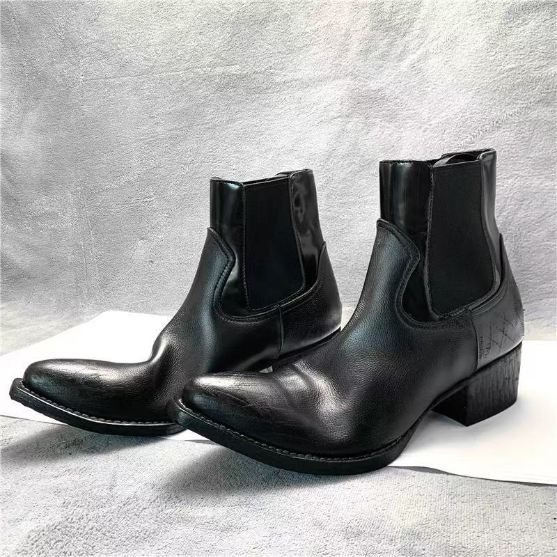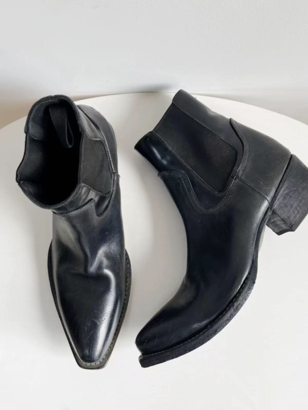 Ботинки-челси в британском стиле ретро-волшебника, черные кожаные ботинки челси с острым носком и средним каблуком