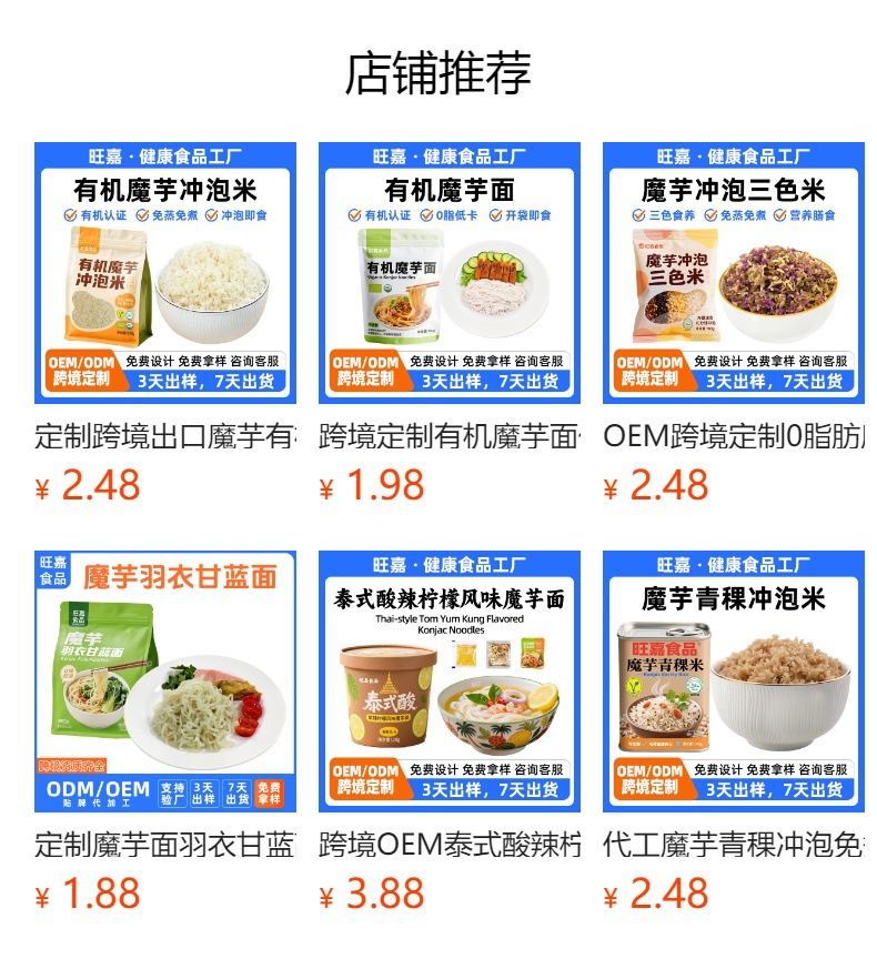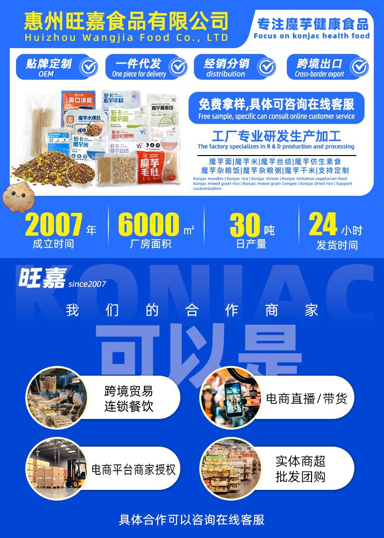 (我们是20年魔芋食品生产厂家,拥有自己的研发团队,提供一件代发,贴牌代工,跨境出口,资质齐全,配方定制,包装设计,分销批发,品牌加盟,产品研发,OEM/ODM等服务;欢迎来厂参观!在线咨询即可分配专属客服哦)