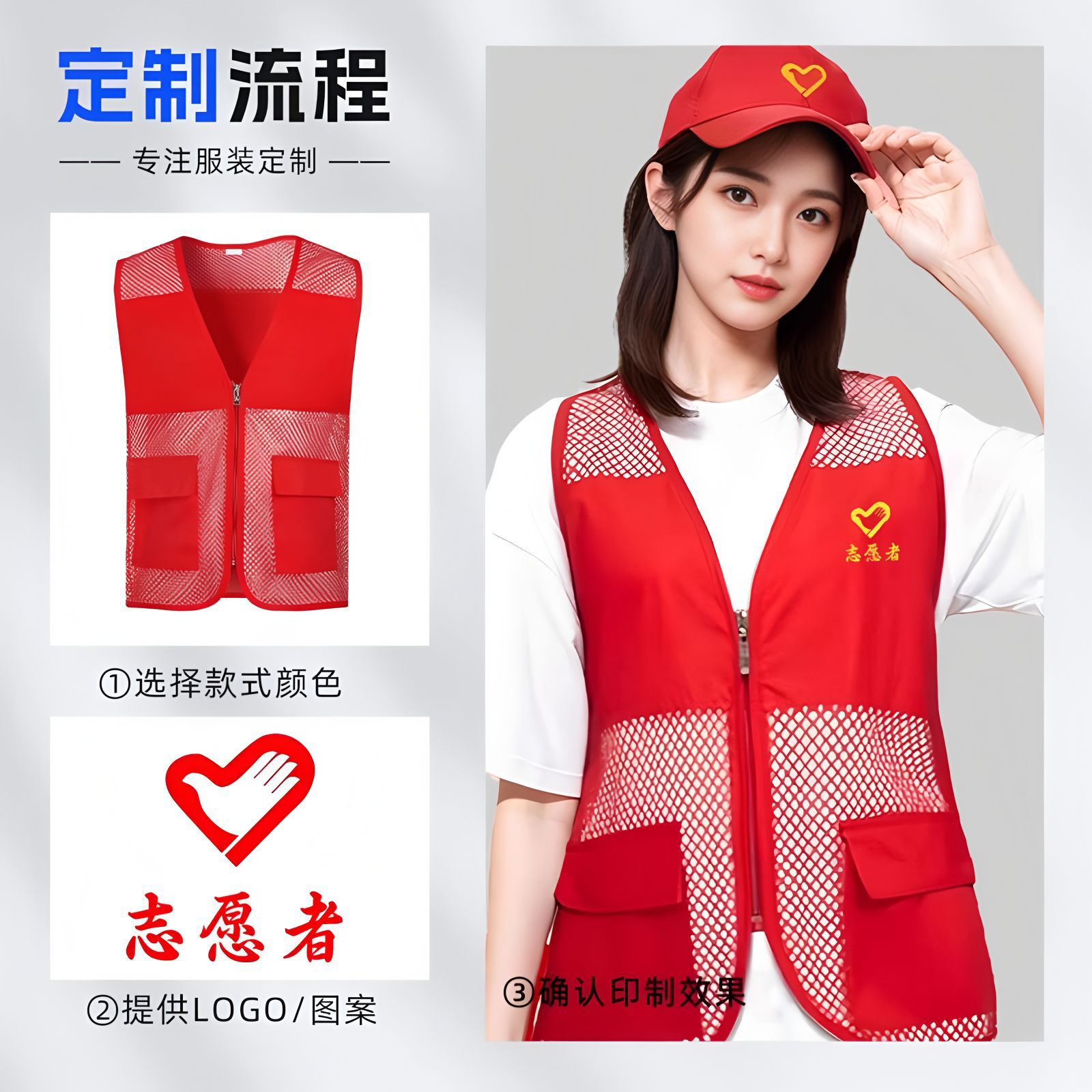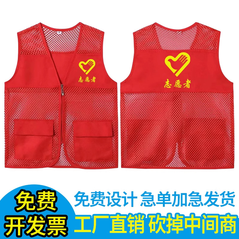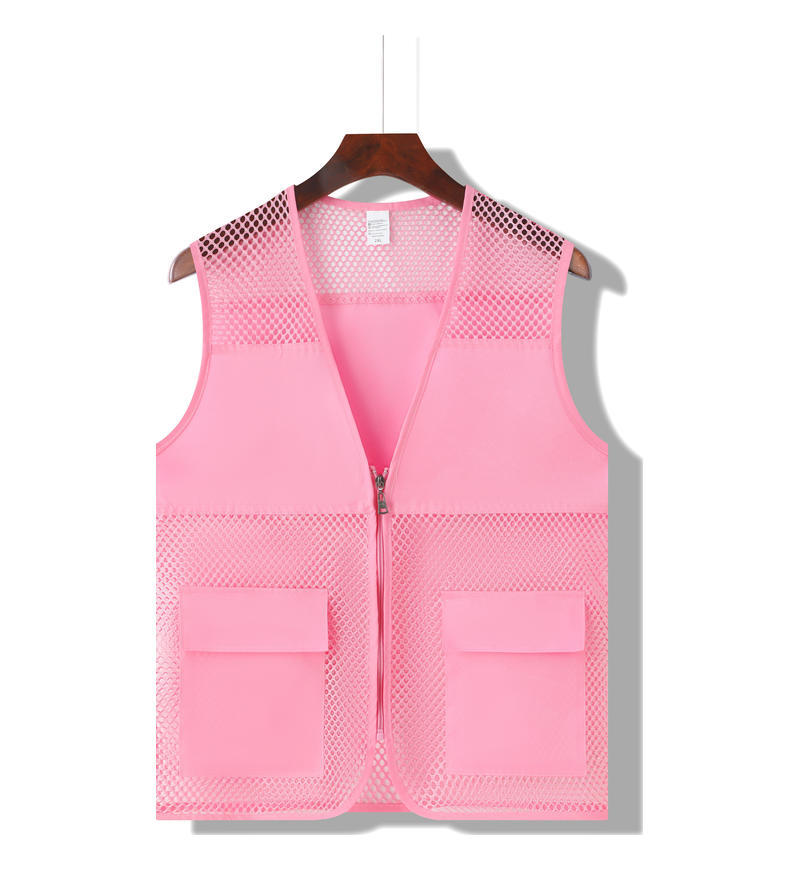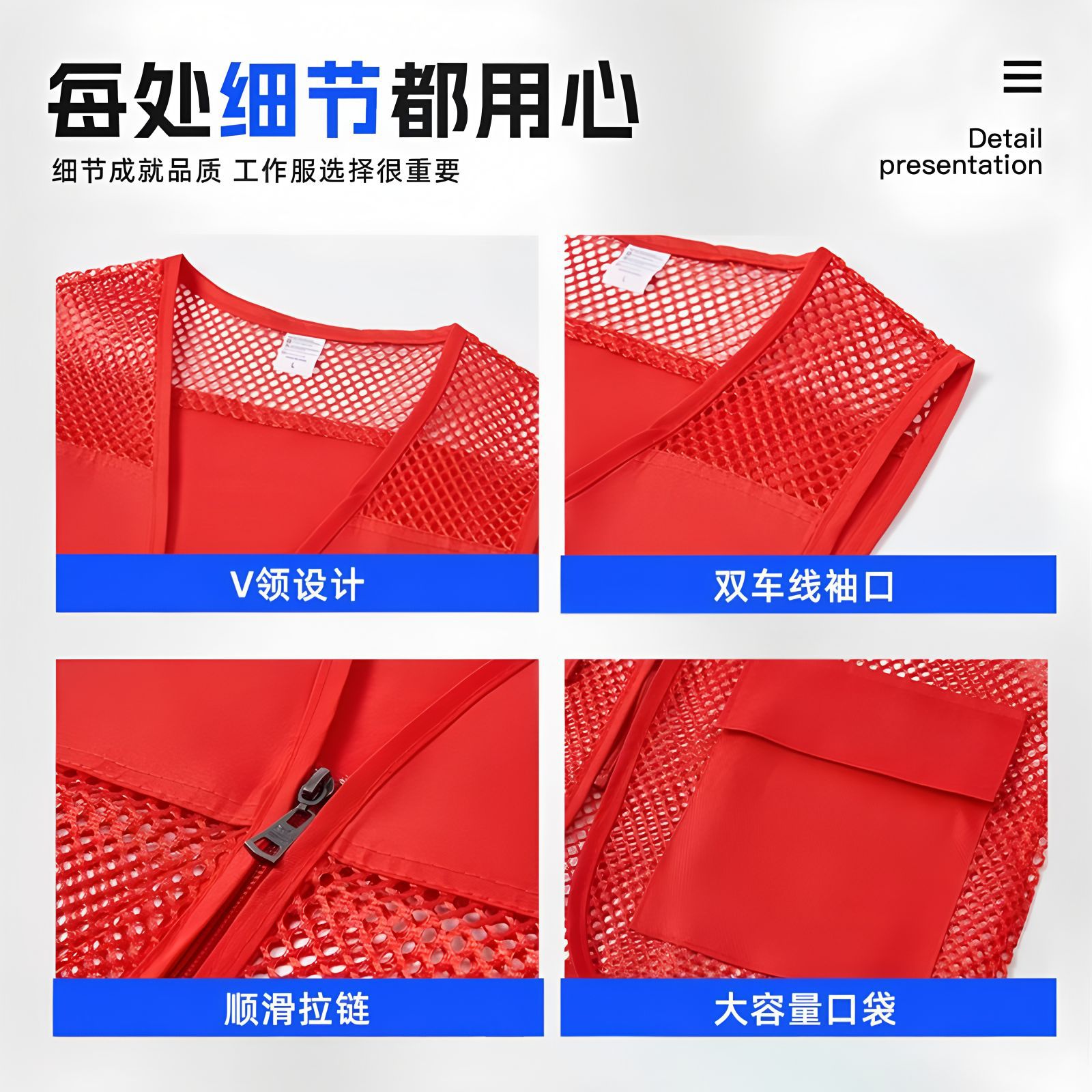 Рыболовный жилет с индивидуальным логотипом, сетчатая рабочая одежда для волонтеров, рекламная рабочая одежда с множеством карманов, красный жилет оптом