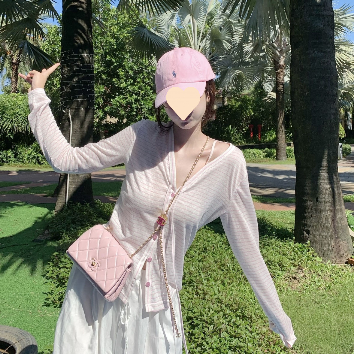 Корейский стиль, полосатый солнцезащитный кардиган с v-образным вырезом для женщин, летний дизайн, свободный облегающий дизайн с ремешками, крутой топ-рубашка с кондиционером