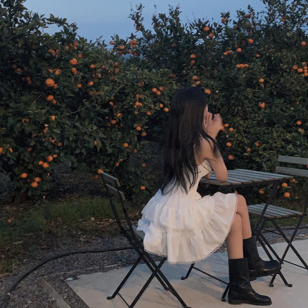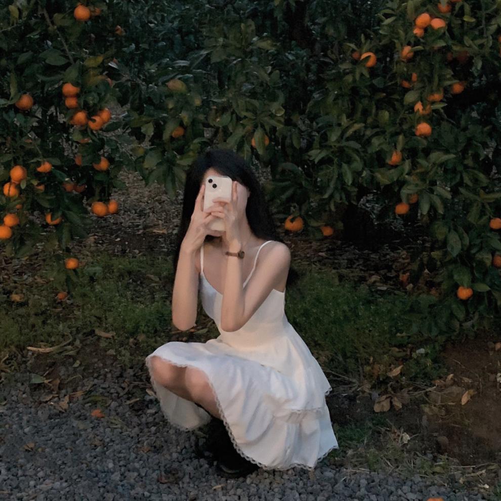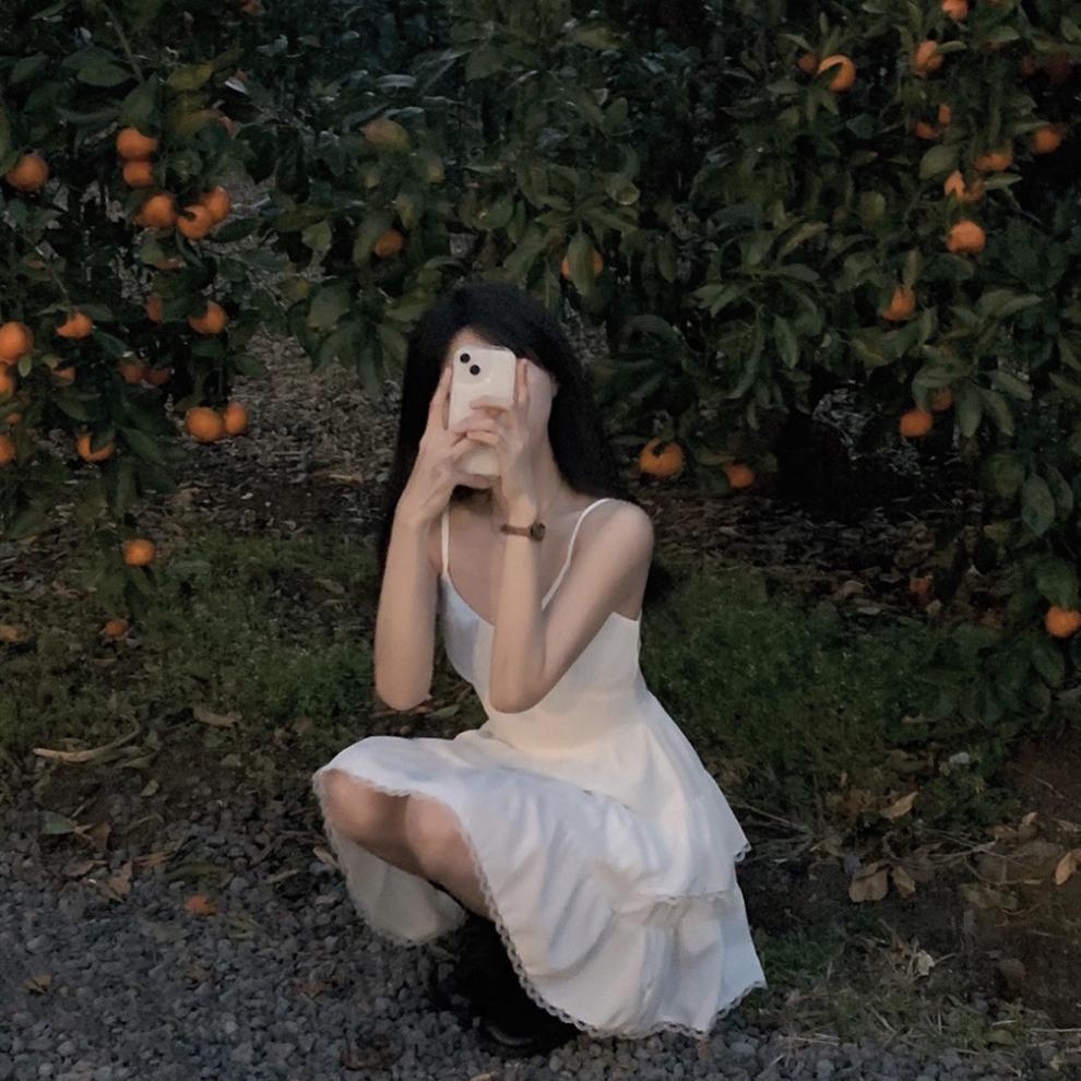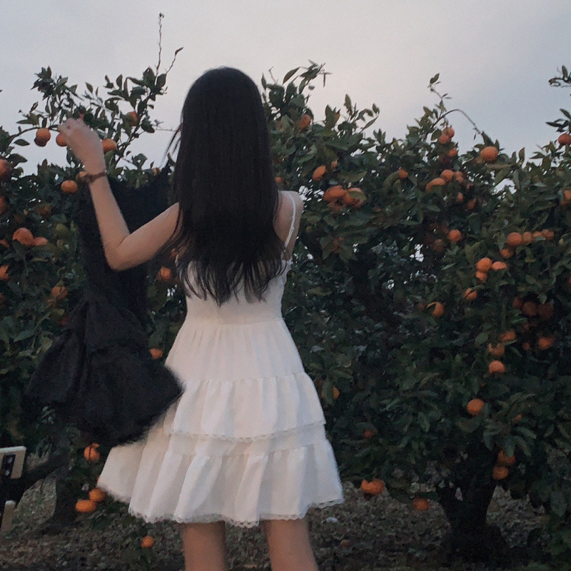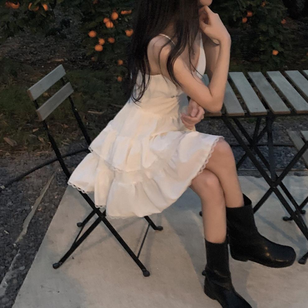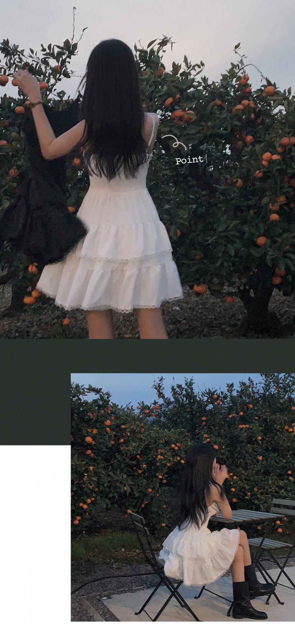 Летнее платье-миди белого цвета с французскими бретелями, кружевными вставками и без рукавов, коллекция Корея 2025 года.