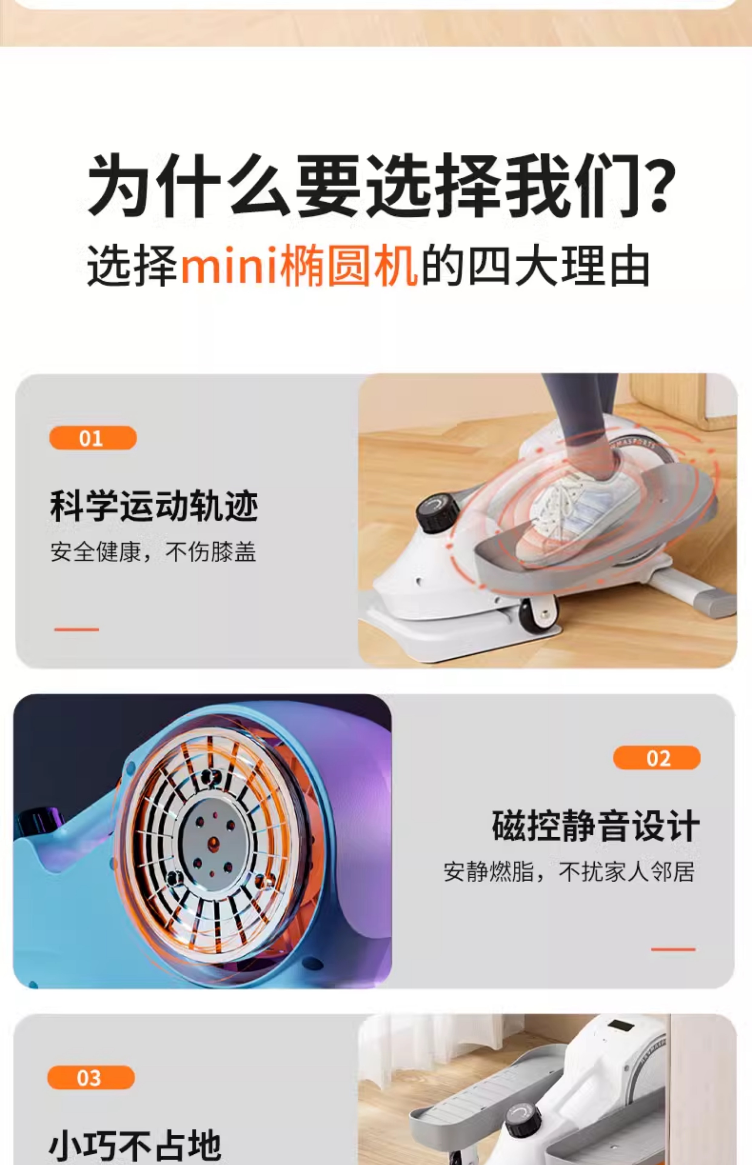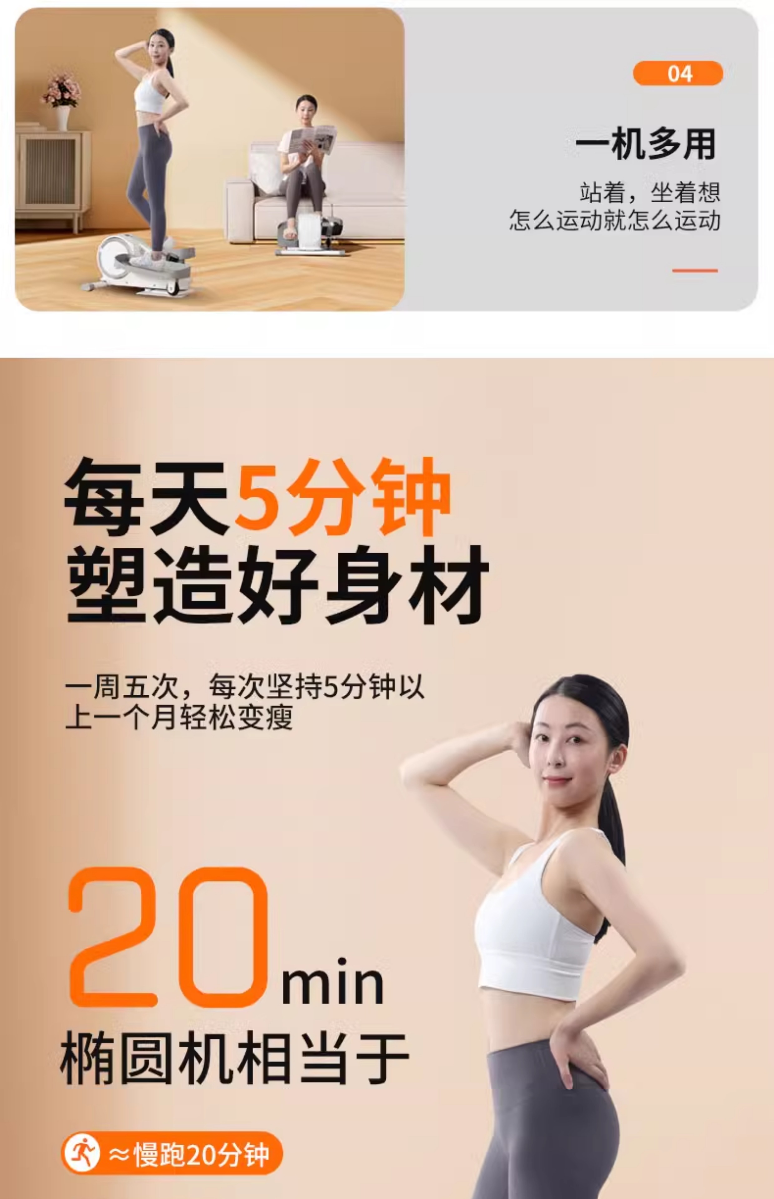 Мини-эллиптический тренажер для дома, компактный многофункциональный бесшумный тренажер для ног, степпер для красоты и фитнеса