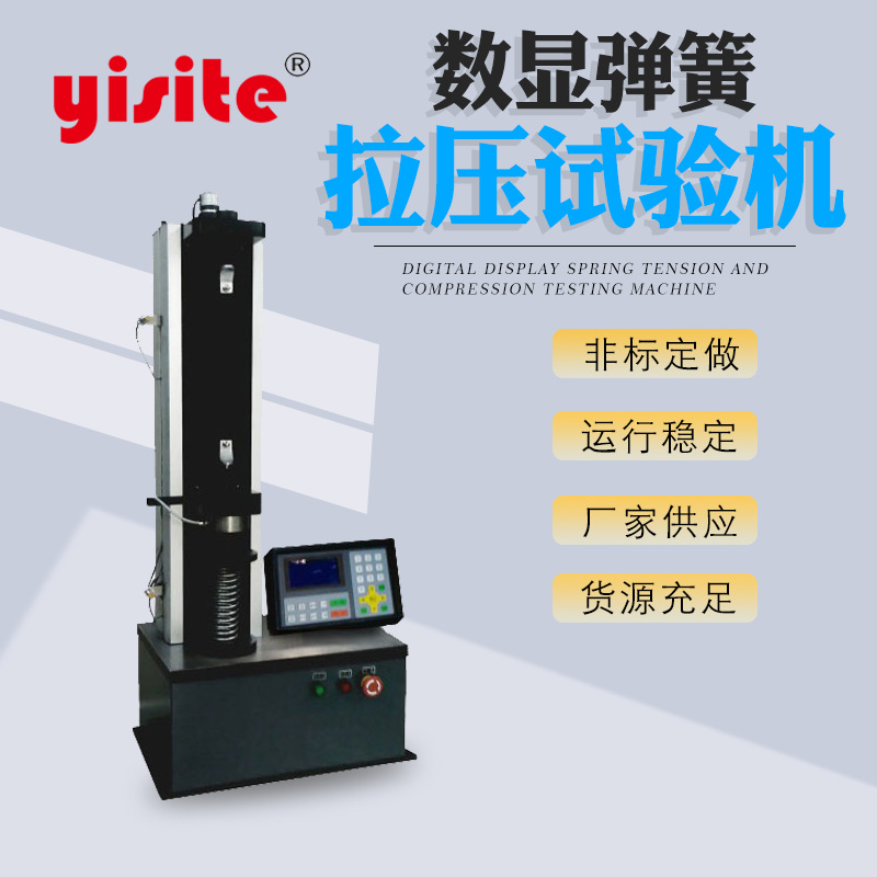 产品简介:电脑控制弹簧拉压试验机依据国家压力试验机标准规定的技术要求制成,专业设计的自动控制和数据采集系统,实现了数据采集和控制过程的全数字化调整。能对拉簧、压簧、碟簧、塔簧、板簧、卡簧、、片弹簧、复合弹簧、气弹簧、模具弹簧、异形弹簧等精密弹簧的拉力、压力、位移、刚度等强度试验和分析。