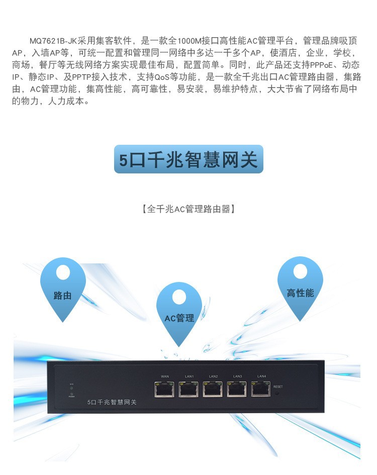 Gigabit AC Manager 5-портовый маршрутизатор с гигабитными портами для управления точками доступа в стене или потолке, Wi-Fi покрытие, умный шлюз