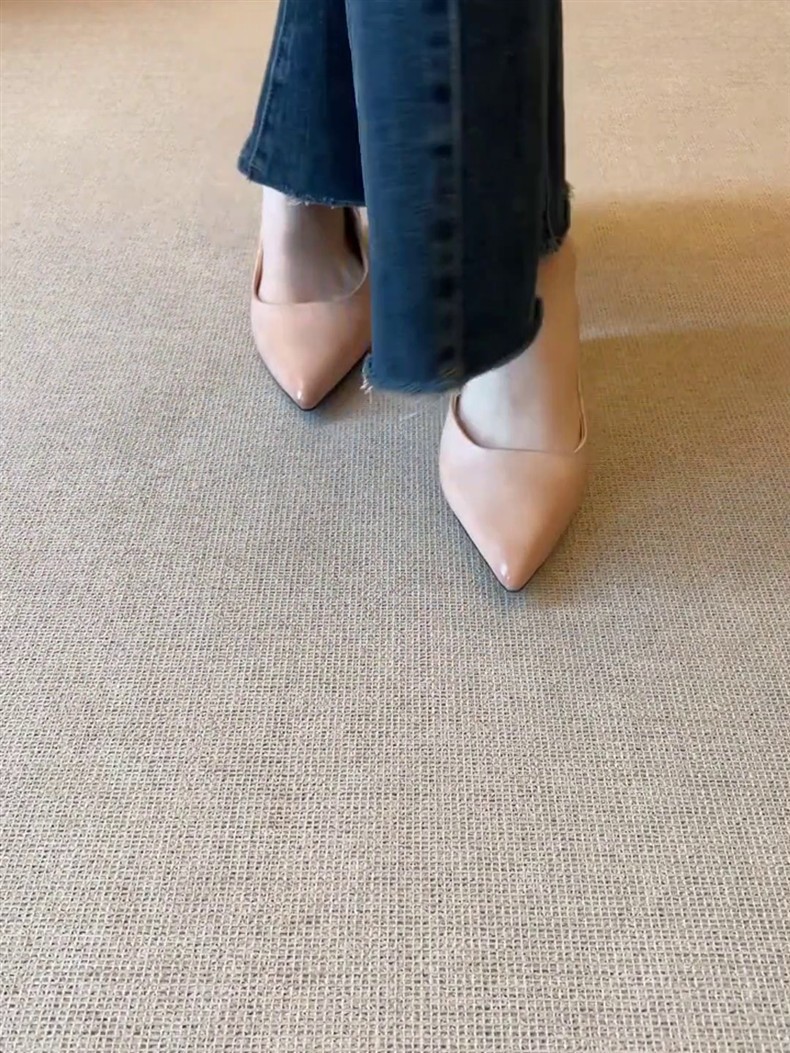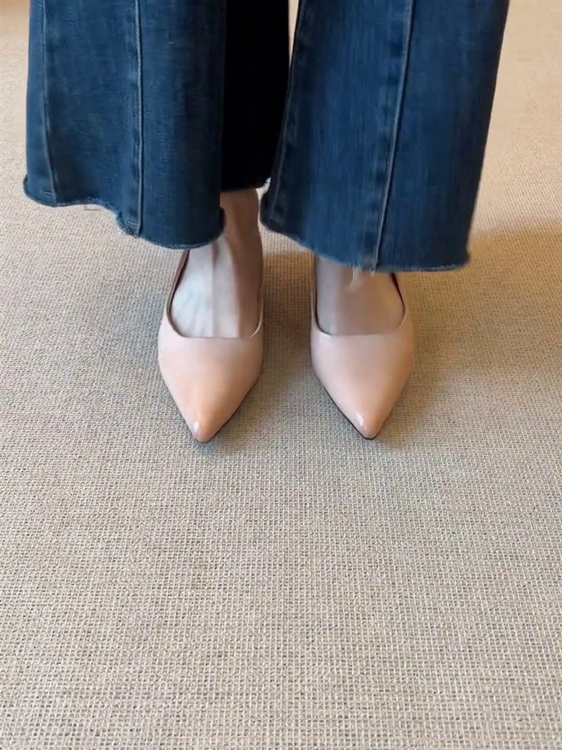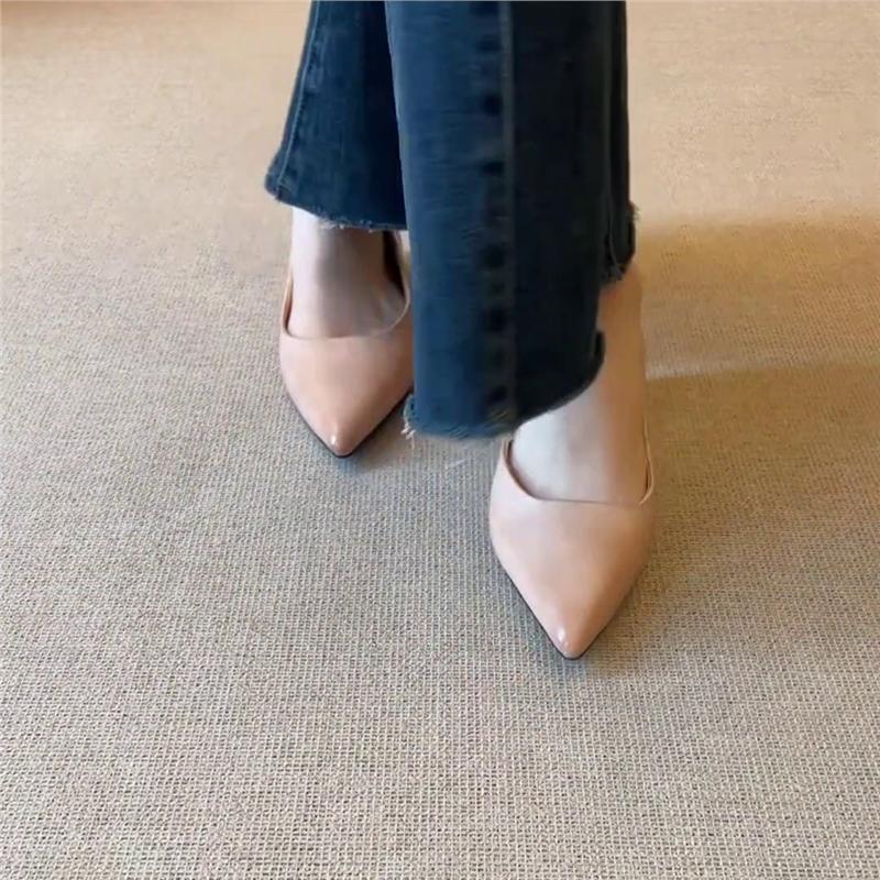 Версия из овчины ~ элегантные туфли в стиле ретро с острым носком, универсальные французские туфли-лодочки телесного цвета из лакированной кожи на низком каблуке