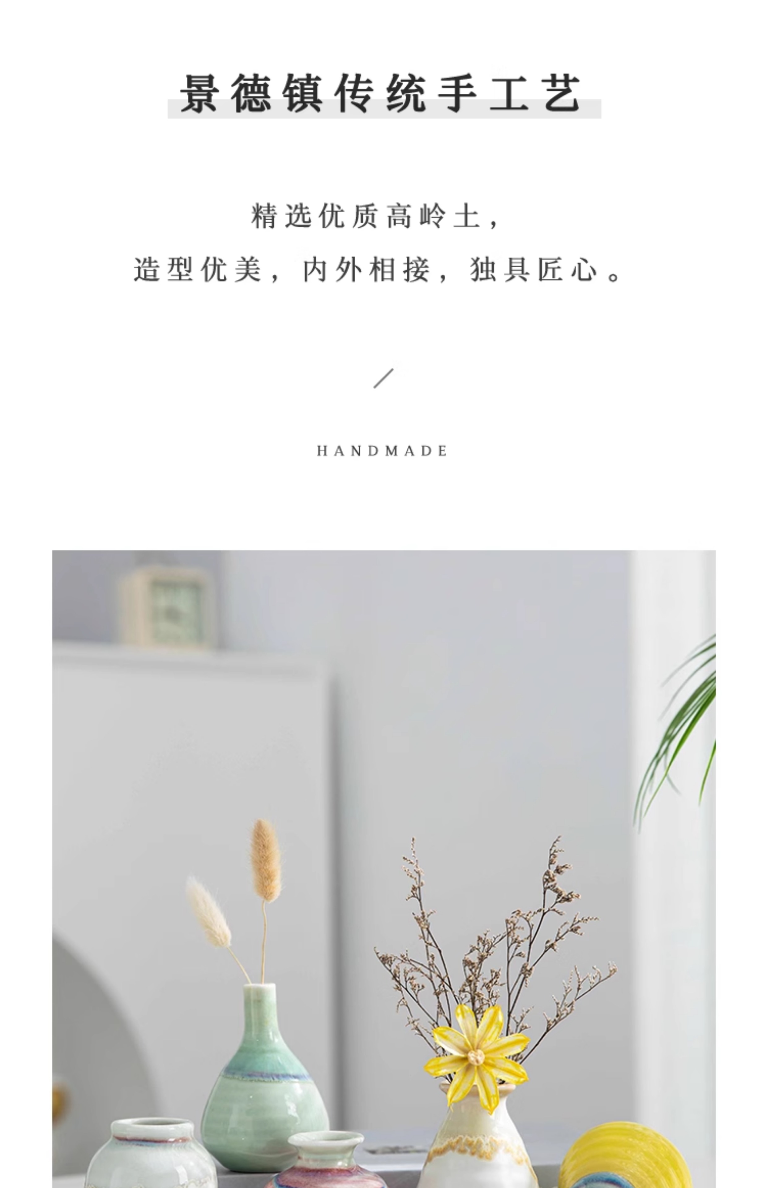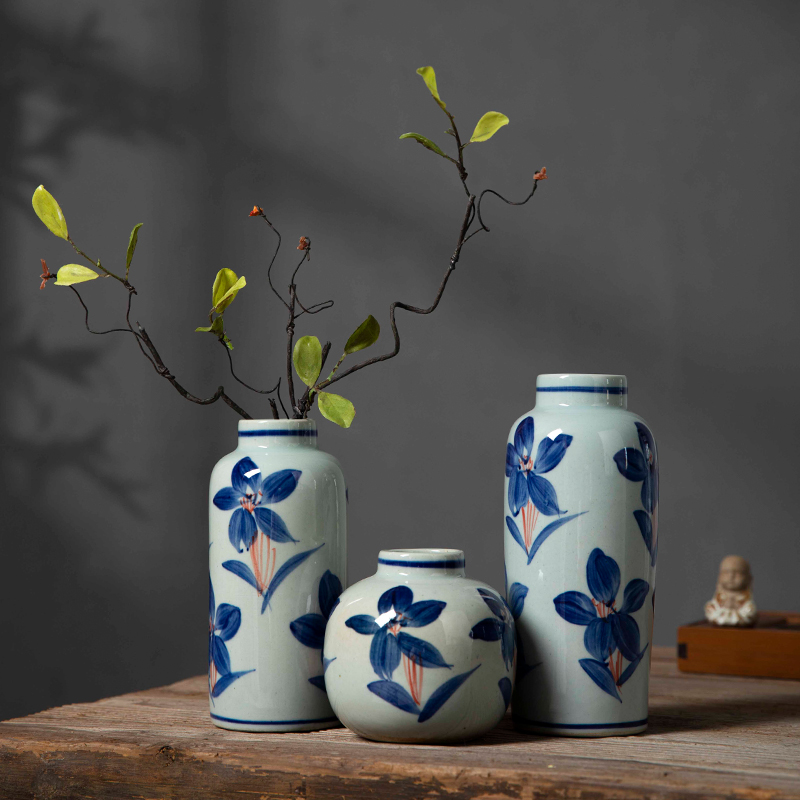 Керамическая маленькая ваза Цзиндэчжэнь в стиле спальни, гидропонные растения, украшения для гостиной, цветочная композиция, сушеные цветы, украшения ручной работы