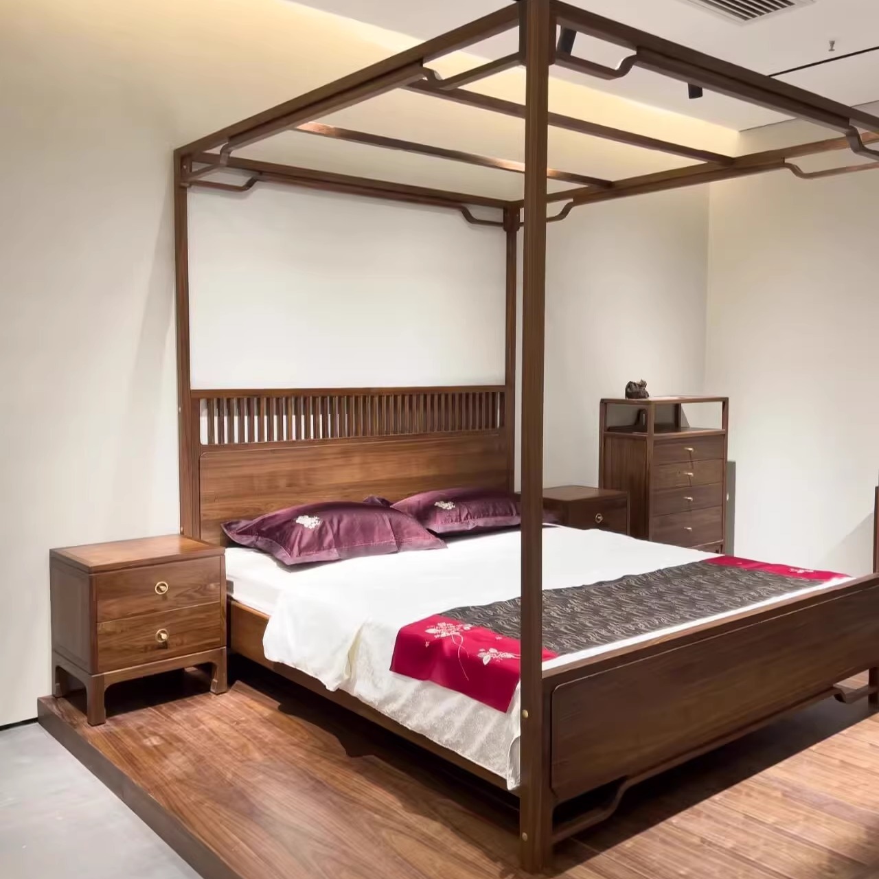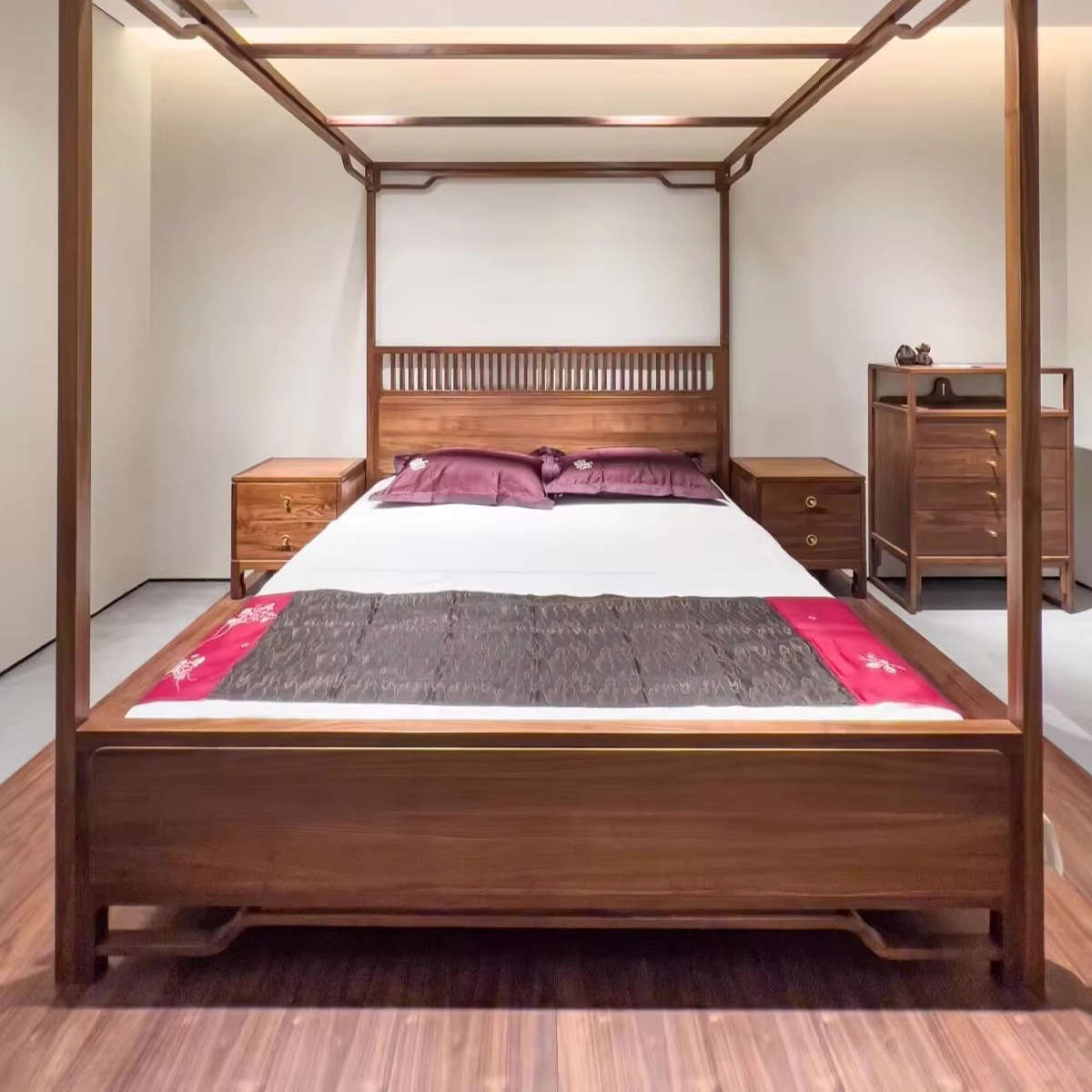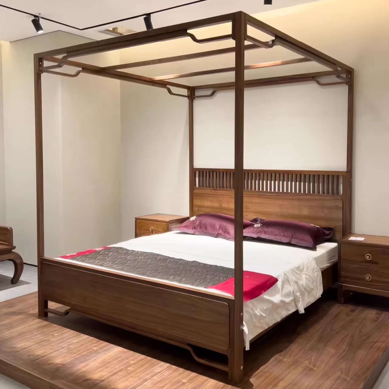 Новая кровать в китайском стиле из цельного дерева из черного ореха в Северной Америке, двуспальная кровать для главной спальни, высококачественная легкая роскошная свадебная кровать, кровать с четырьмя стойками