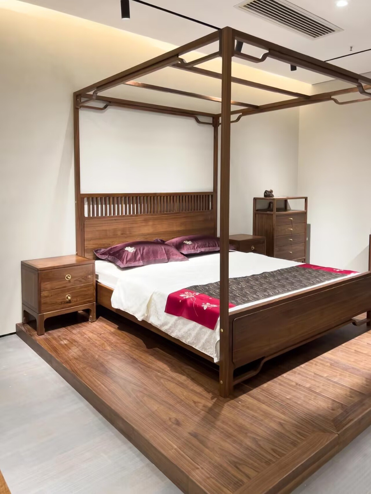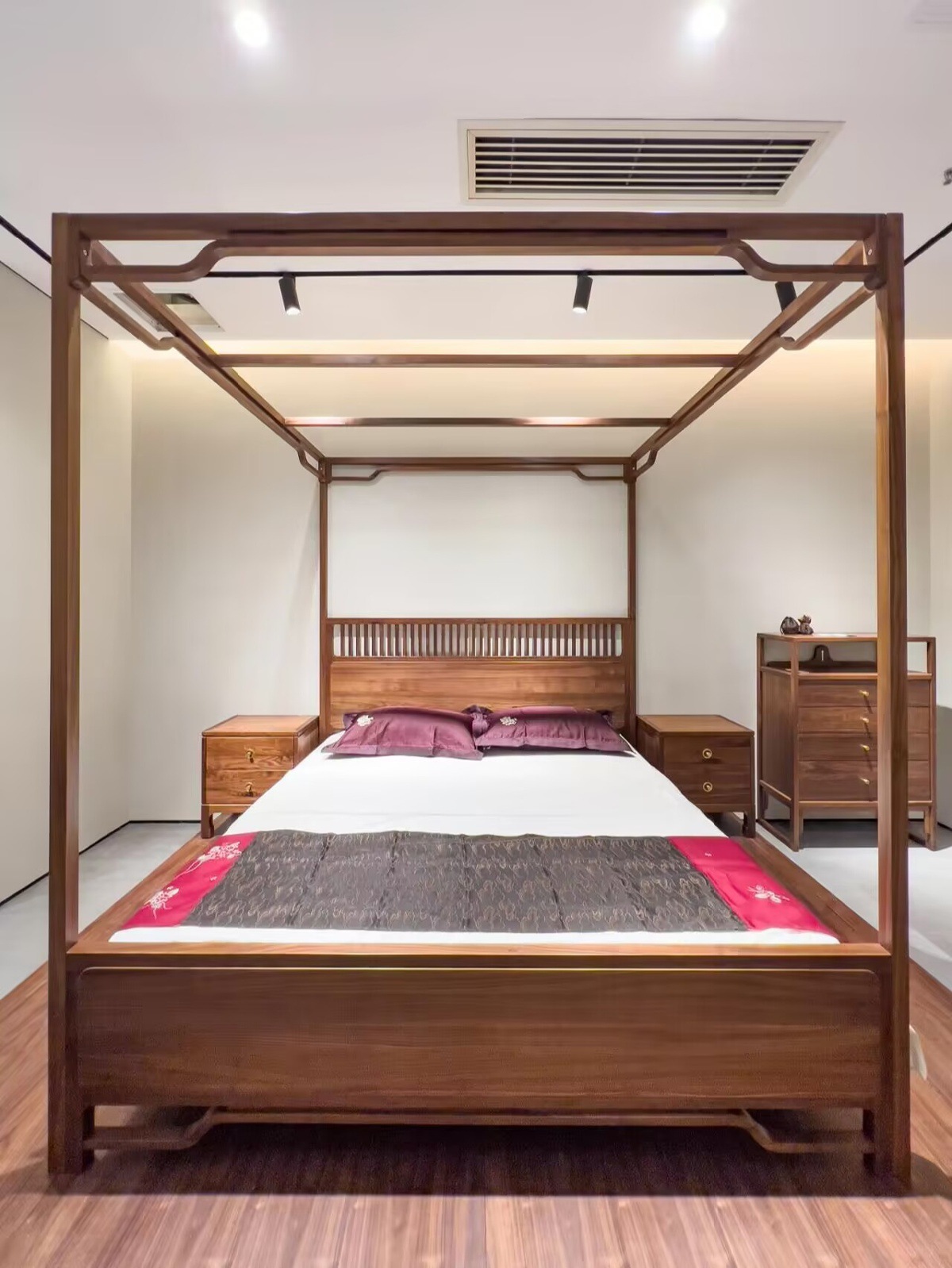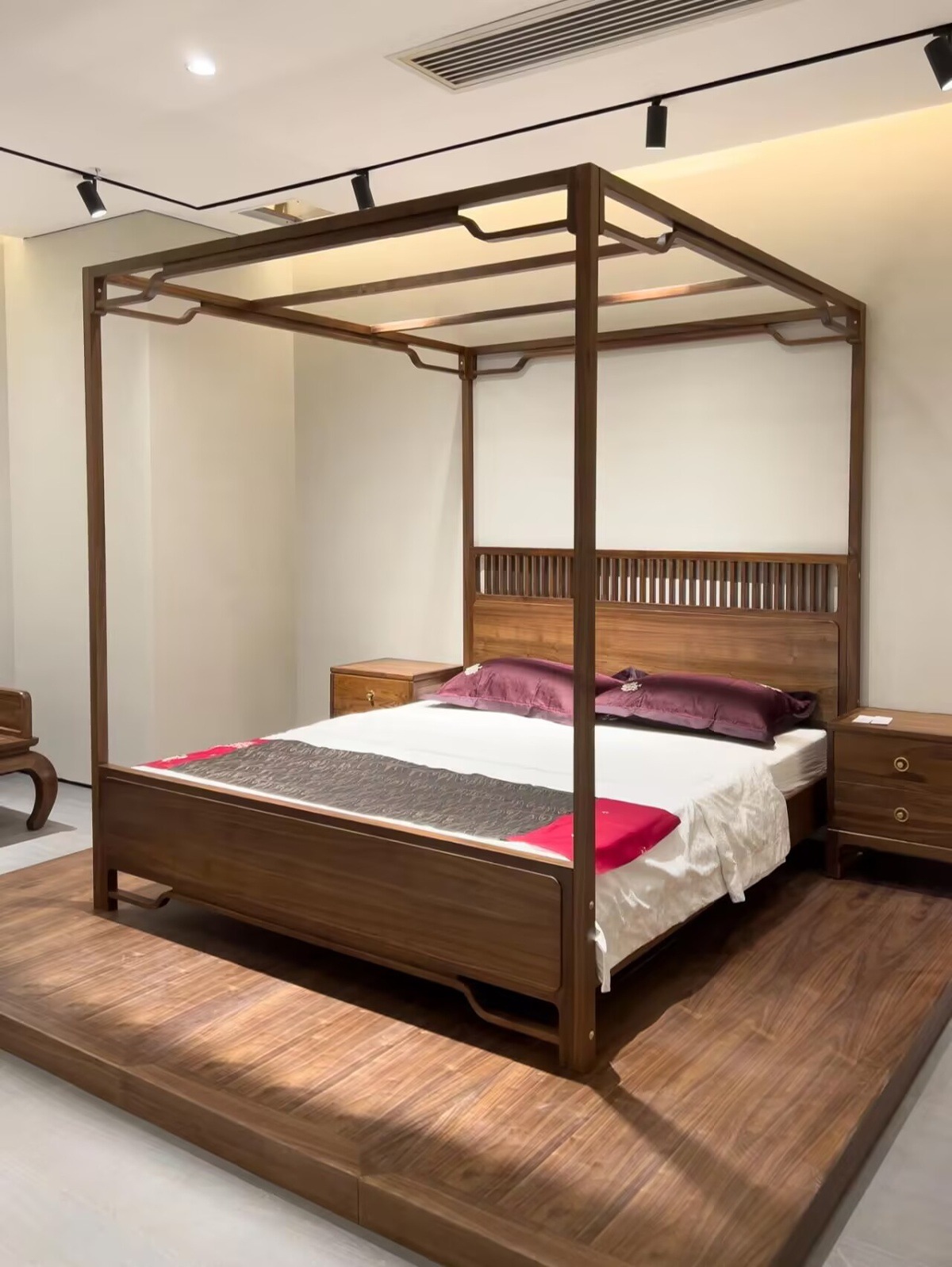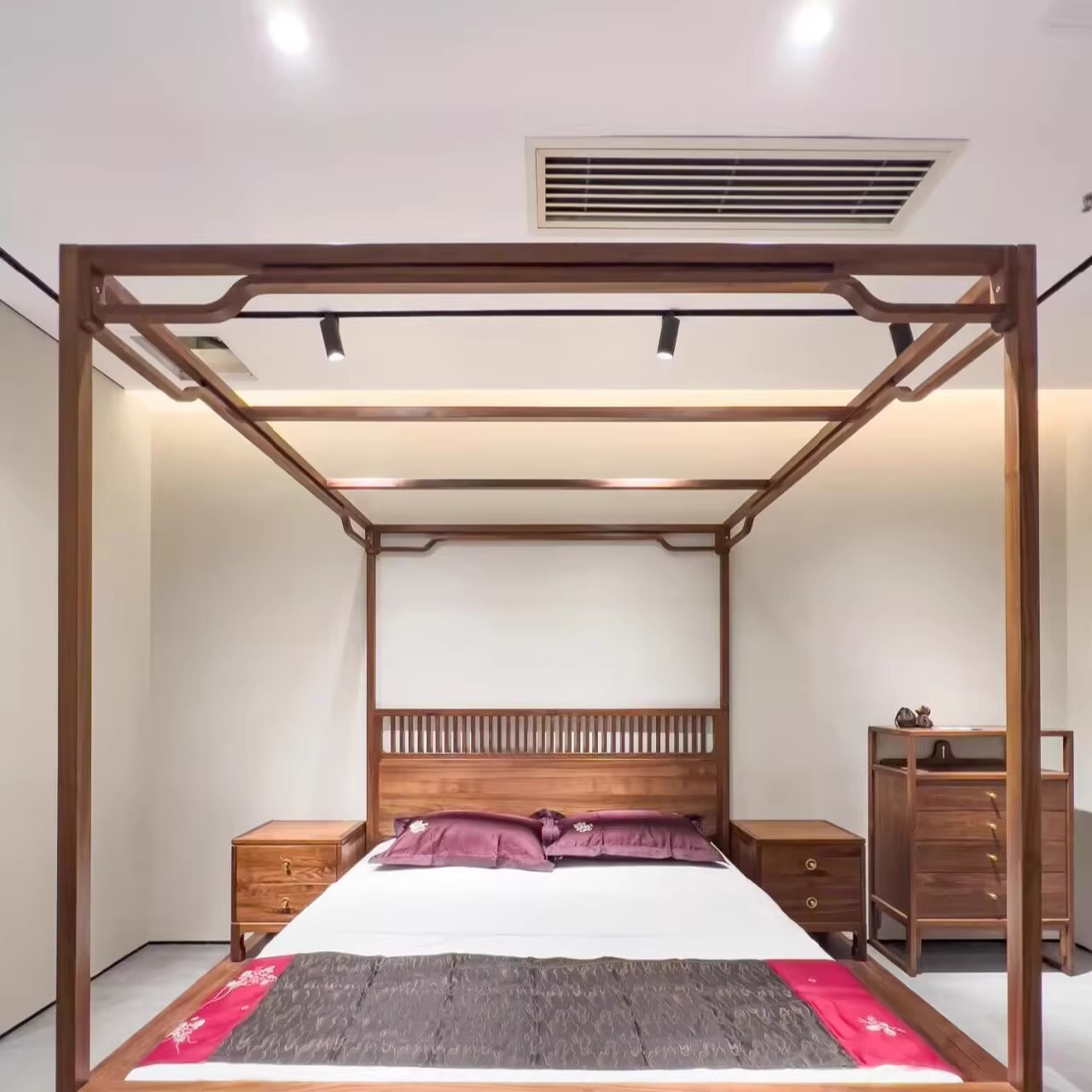 Новая кровать в китайском стиле из цельного дерева из черного ореха в Северной Америке, двуспальная кровать для главной спальни, высококачественная легкая роскошная свадебная кровать, кровать с четырьмя стойками