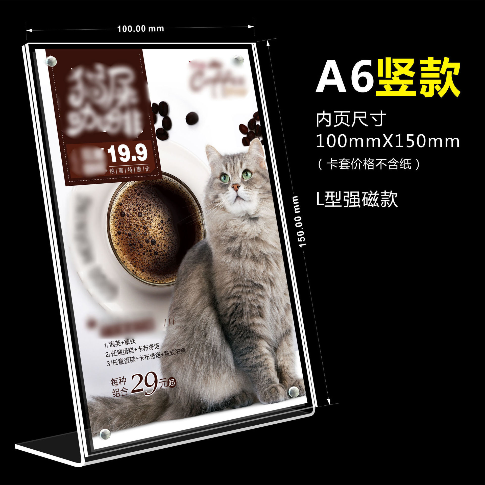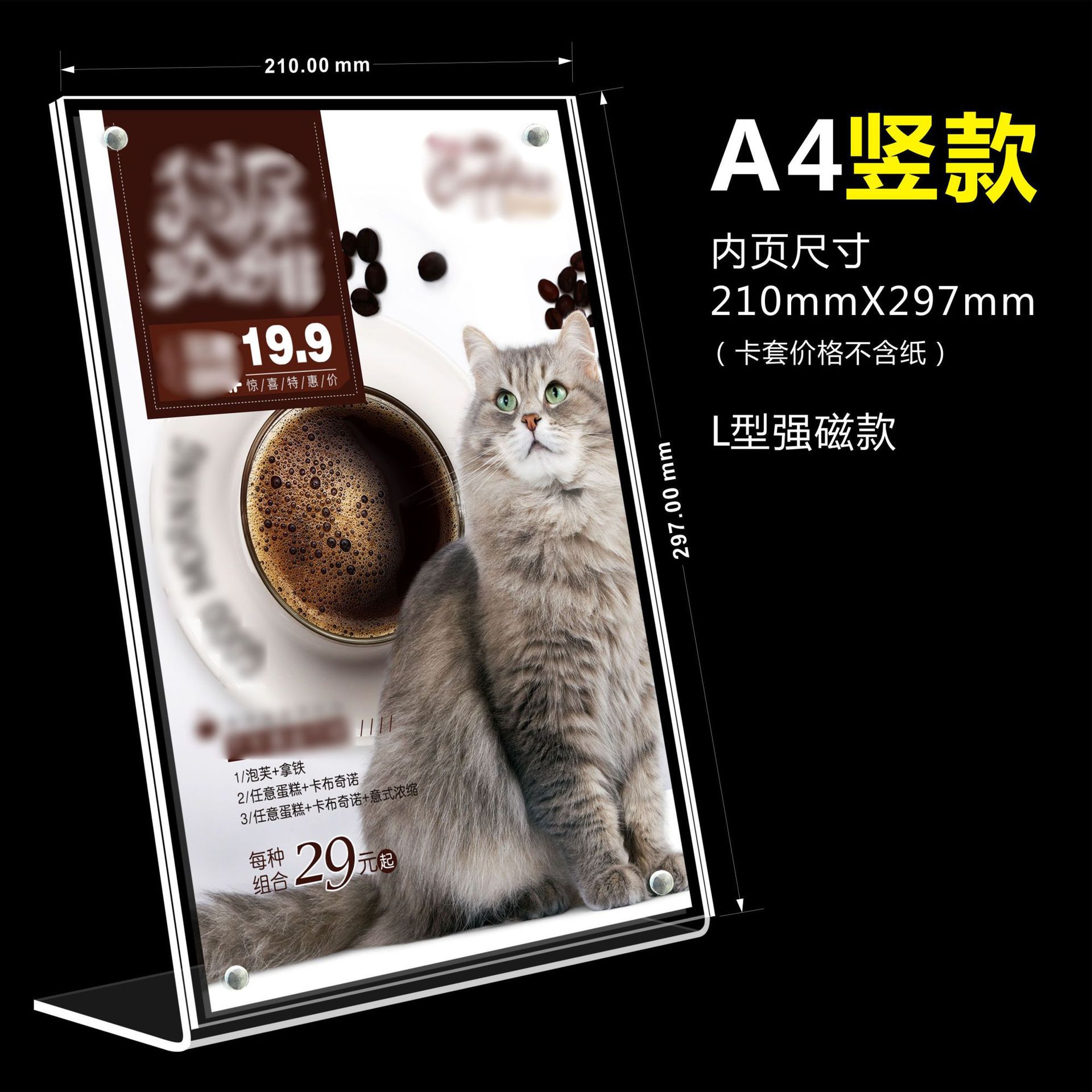 A4 акриловая настольная карта L-образная прозрачная рекламная табличка с сильным магнитом для меню, ценников и стендов оптом