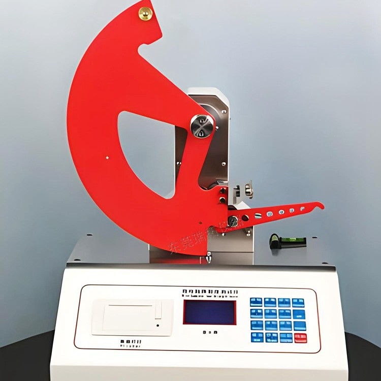 工作原理: 仪器根据功能原理设计。处于待撕位置具有一定势能的摆被释放后,势能转化为动能,并撕裂试样做功。撕裂试样所需的力(反映为扇形摆的转动角度)通过高精度光电轴角编码器转换为电信号输入控制电路,经电路处理后以显示或打印方式输出。