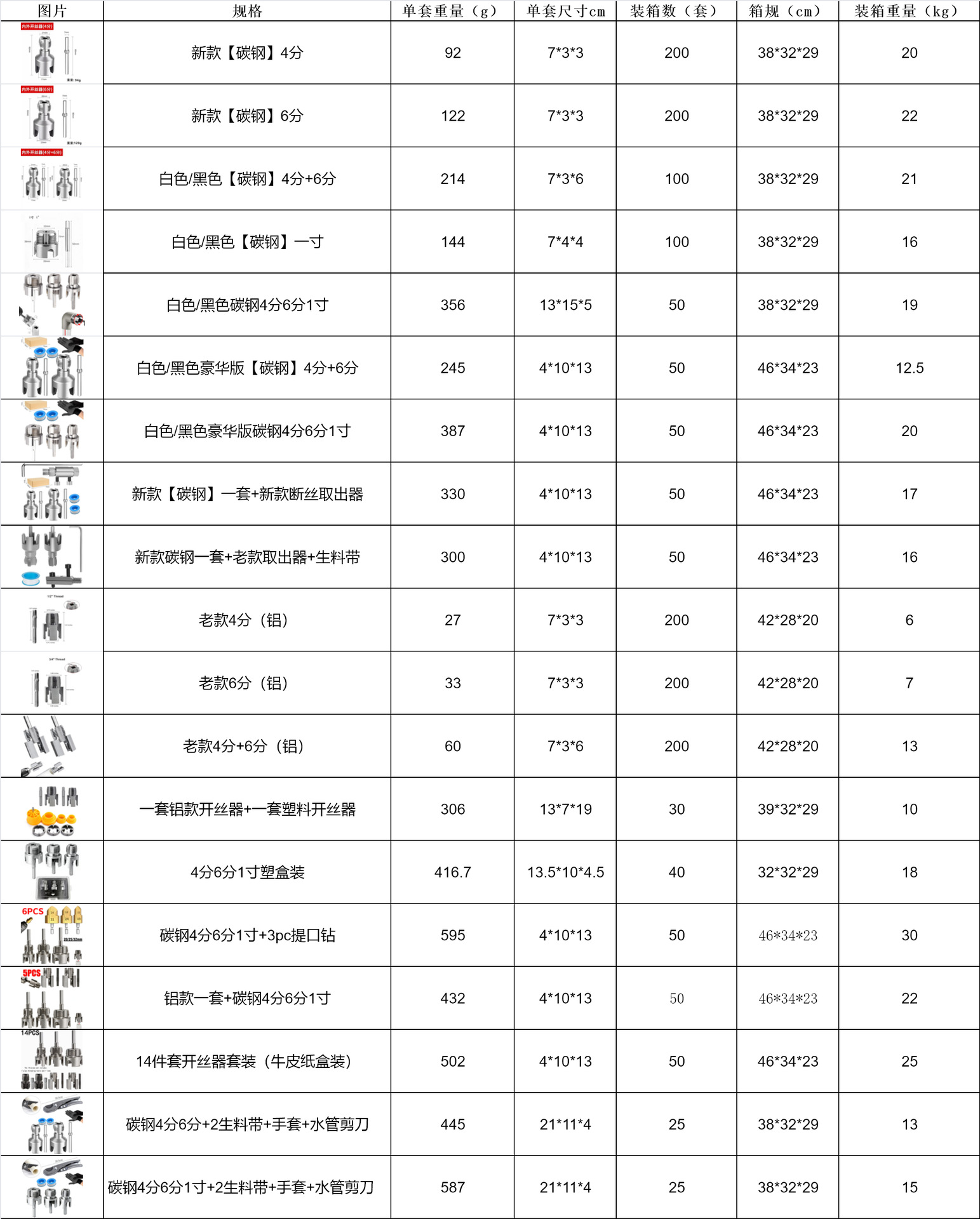 4-х точечная углеродистая сталь 1/2 с шестом 94г; 6-ти точечная углеродистая сталь 3/4 с шестом 120г.; Новый стиль [углеродистая сталь] 1.0inch; Новый набор из [углеродистой стали] с нанопокрытием и сверхвысокой твердостью; 1/2+3/4 Набор из 2 предметов 4+6 214 г; Набор алюминиевых разъемов для проводов + набор пластиковых разъемов для проводов; Роскошная версия: набор открывателей для проводов + пояс из сырья + перчатки + коробка для самолета.; Новинка: Набор отверток из углеродистой стали + новый экстрактор для извлечения проводов, поставляется в авиационной коробке.; Новая углеродистая сталь, 4 точки, 6 точек, 1 дюйм; Новая углеродистая сталь 4 точки 6 точек 1 дюйм пластиковый ящик; Новые фитинги из углеродистой стали 1/2", 3/4" и 1" в черном пластиковом кейсе.; Делюкс-версия: авиационная коробка, новая, из углеродистой стали, 4 точки, 6 точек, 1 дюйм.; Сверхпрочный нанопокрытый инструмент для распиливания проволоки 1inch; Сверхпрочный нанопокрытый инструмент для раскрывания проводов, 4 минуты, 6 минут, 1 дюйм; Старый стиль 4 точки 1/2 с полюсом 30г; Старый стиль 6 точек 3/4 с штангой 35г; Набор в старом стиле (1/2+3/4) 65г; Алюминиевый набор + углеродистая сталь, 4 точки, 6 точек, 1 дюйм (упаковано в коробку из крафт-бумаги); Углеродистая сталь 4 точки, 6 точек, 1 дюйм + 3 подъемных сверла (упаковано в коробку из крафт-бумаги); Набор из 14 предметов для расширения резьбы (упакован в коробку из крафт-бумаги); Углеродистая сталь 4 точки 6 точек + 2 ремня из сырья + перчатки + ножницы для водопровода; Углеродистая сталь 4 точки, 6 точек, 1 дюйм + 2 ремня из сырья + перчатки + ножницы для водопровода; Вставная карта, установленная углеродистая сталь, 4 точки + 6 точек