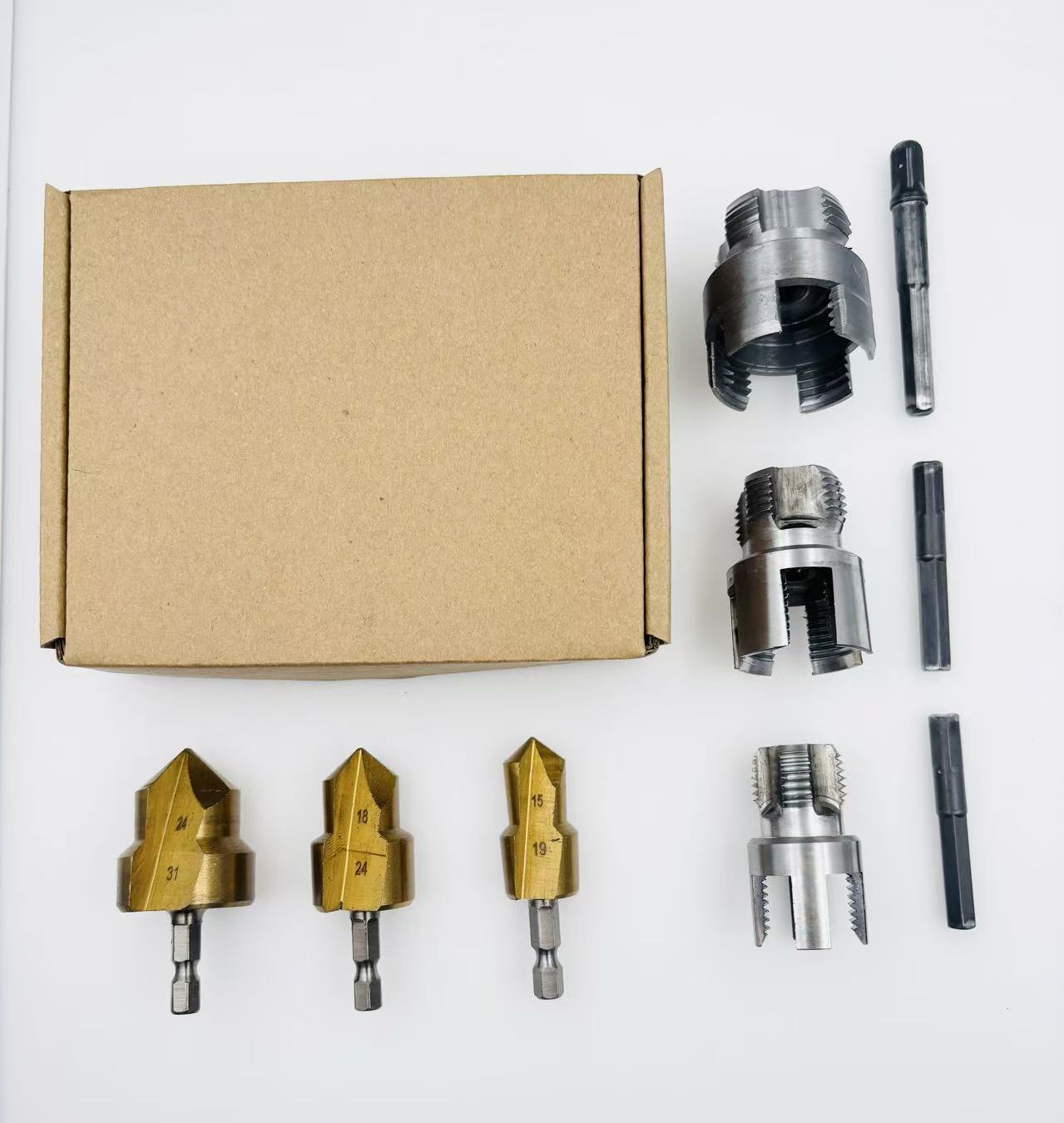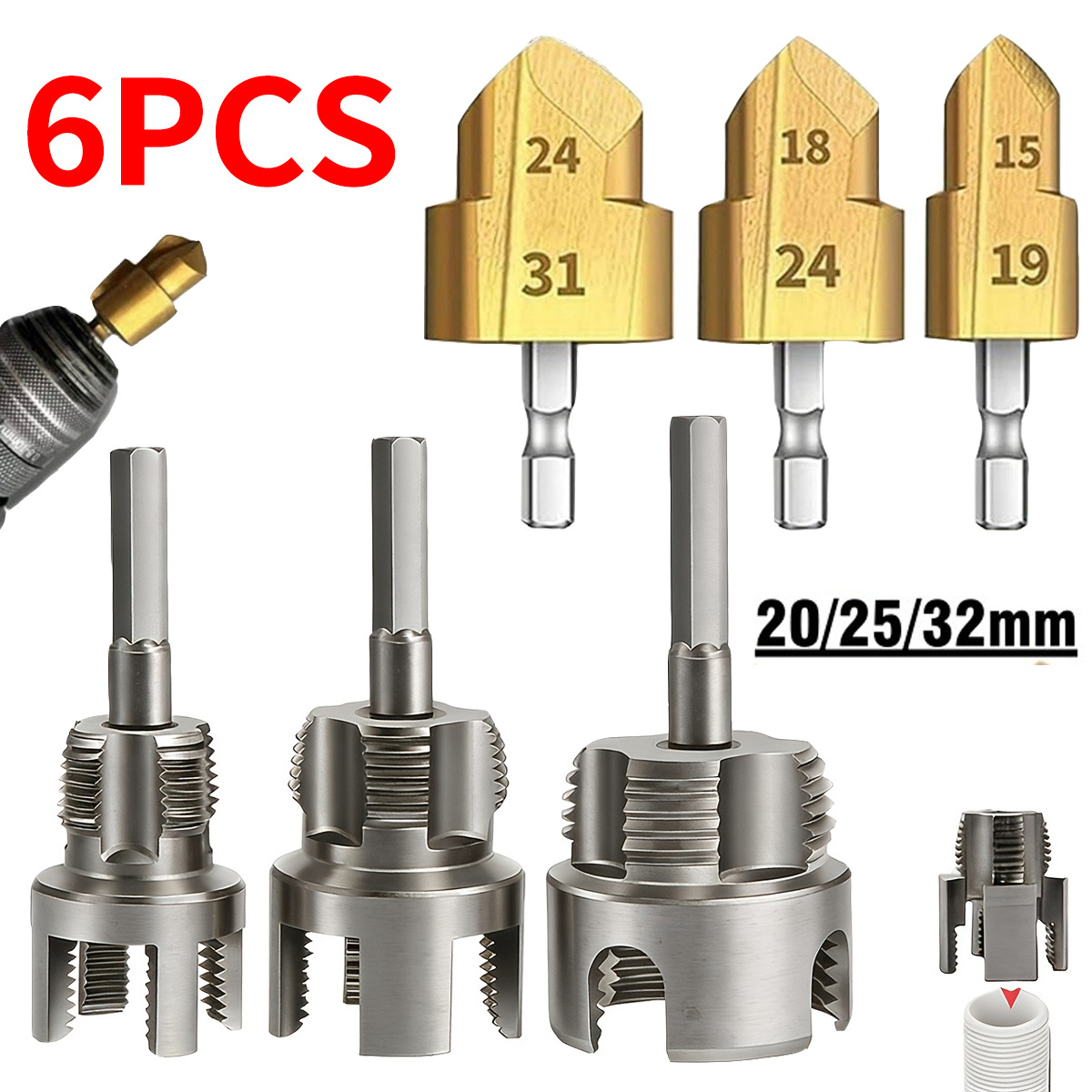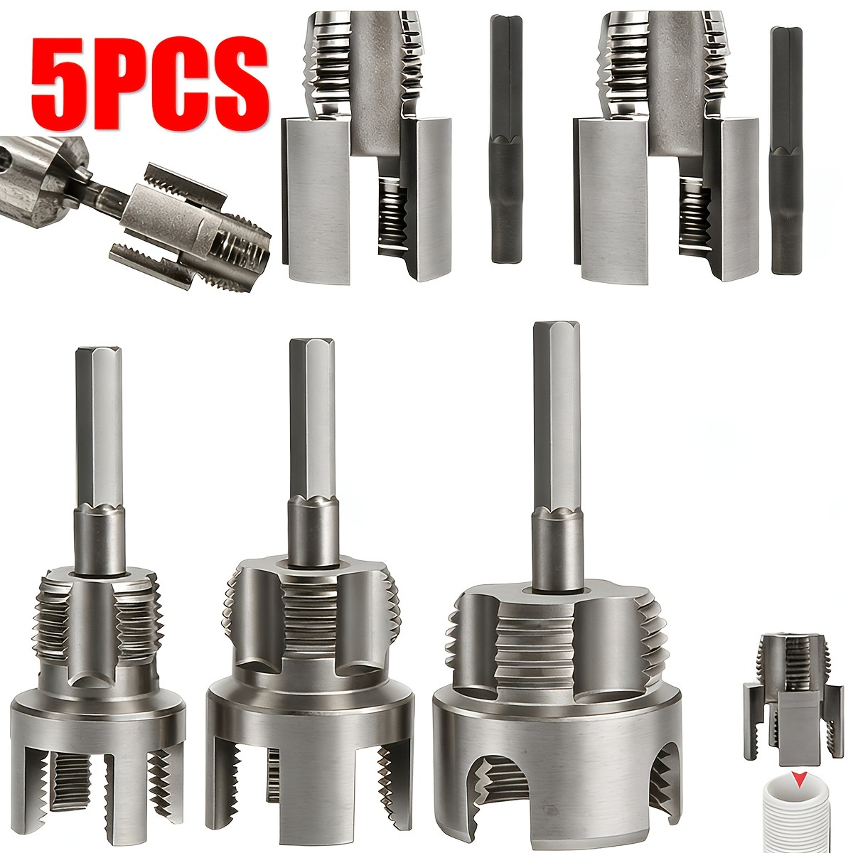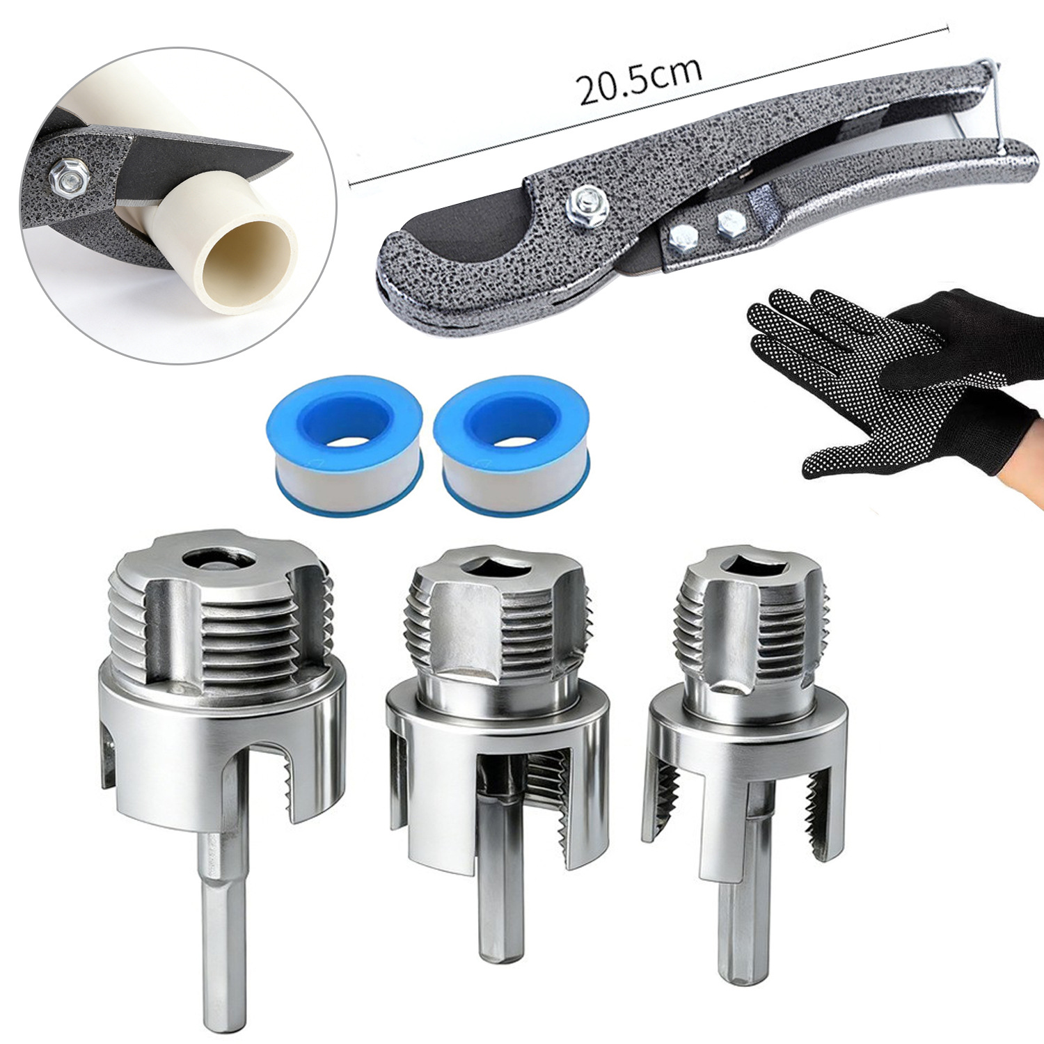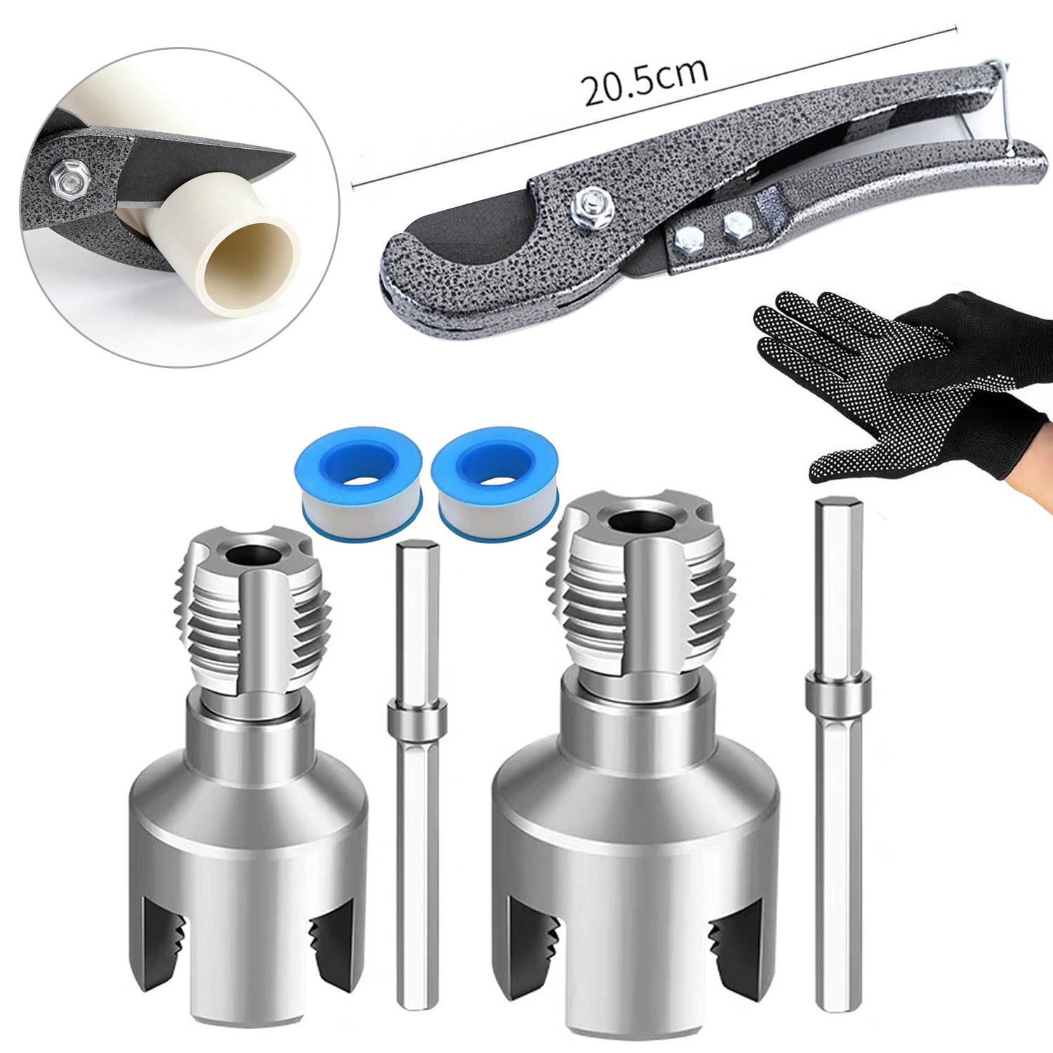 Открывалка для резьбы водопроводных труб, встроенный открывалка для внутренней и внешней резьбы, инструмент для нарезания резьбы на водопроводных трубах из PPR, метчик и инструмент для резьбы 1/2 дюйма и 3/4 дюйма.