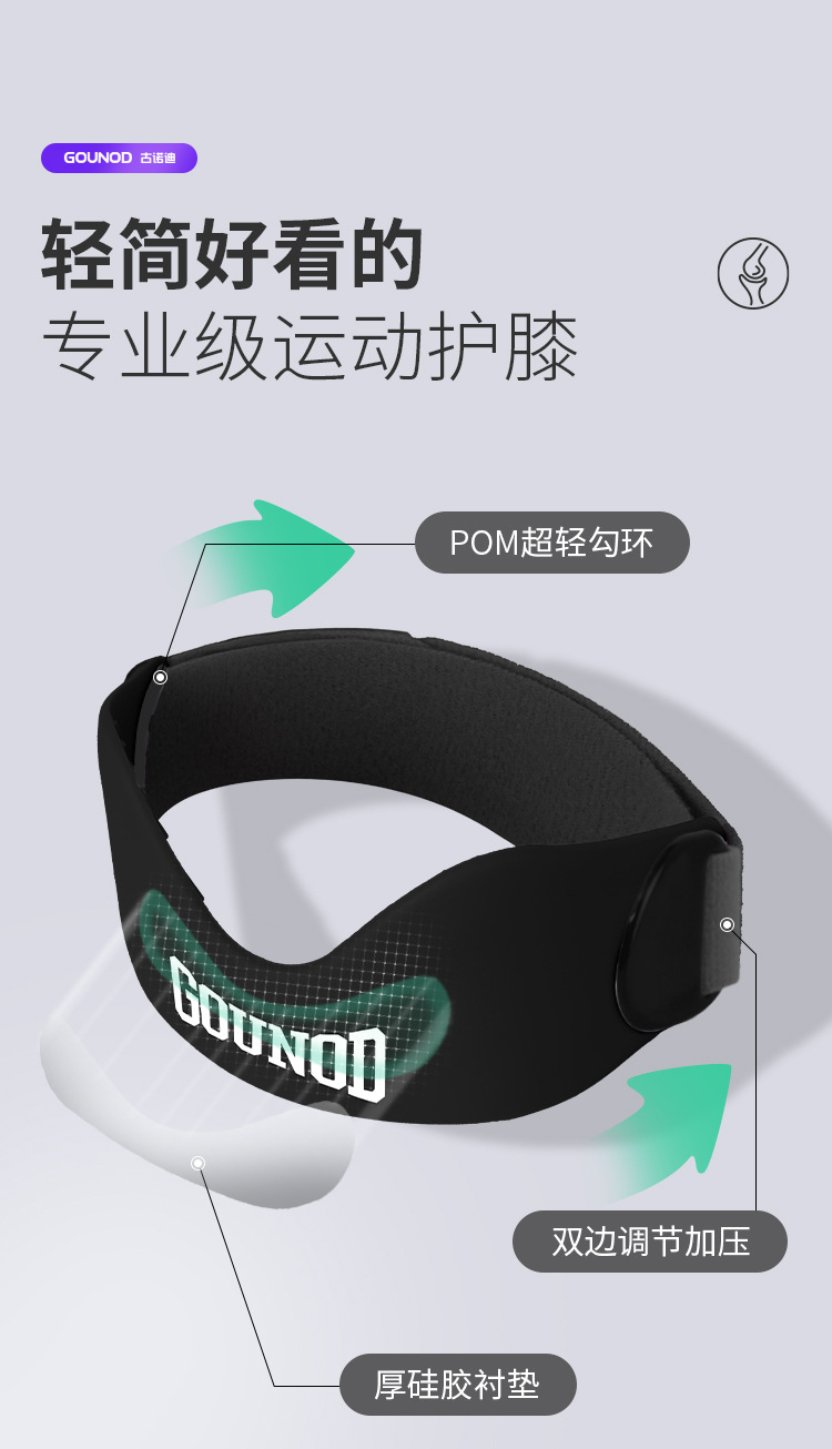 GOUNOD профессиональные спортивные наколенники с поясом для коленной чашечки, наколенники для бега на открытом воздухе, прыжки, бадминтон, велоспорт, менисковые наколенники