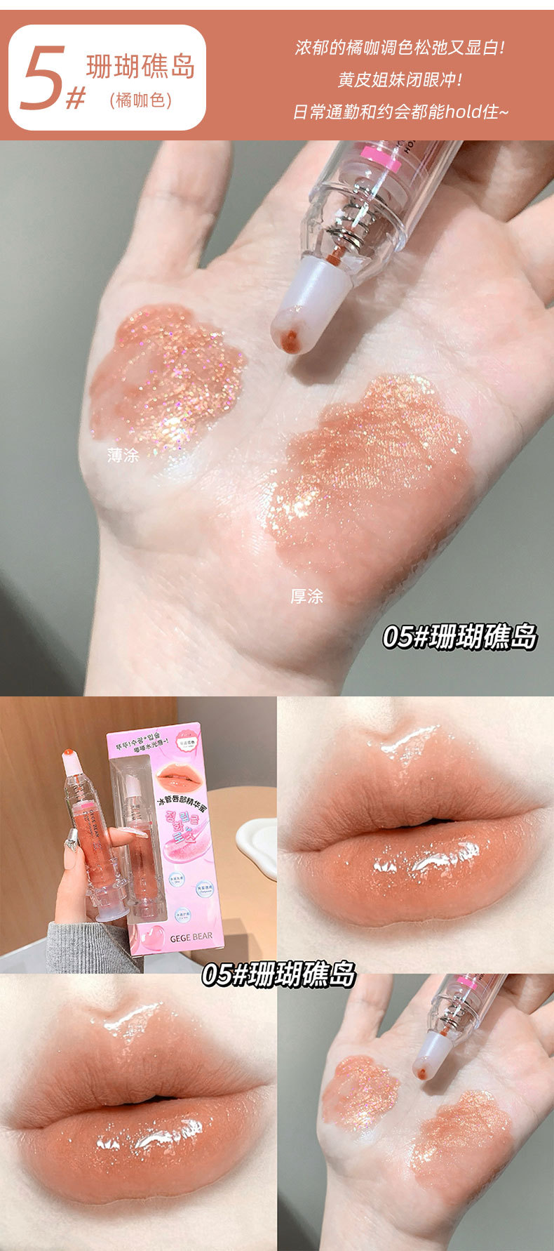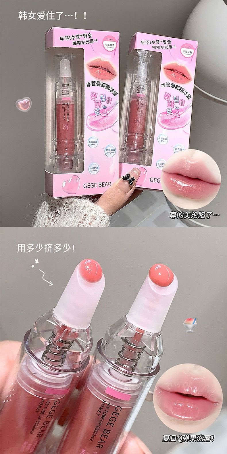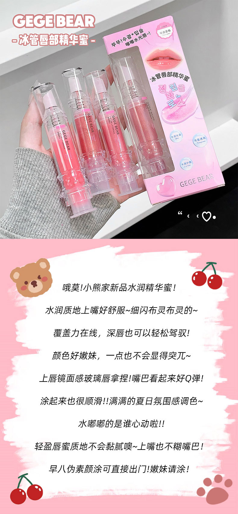 Gege Bear Gogo Bear Ice Tube Эссенция для губ Мед Летняя увлажняющая глазурь для губ Милый макияж