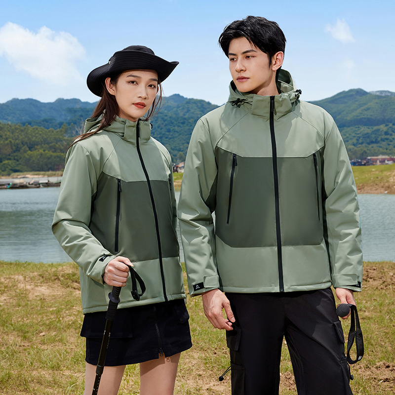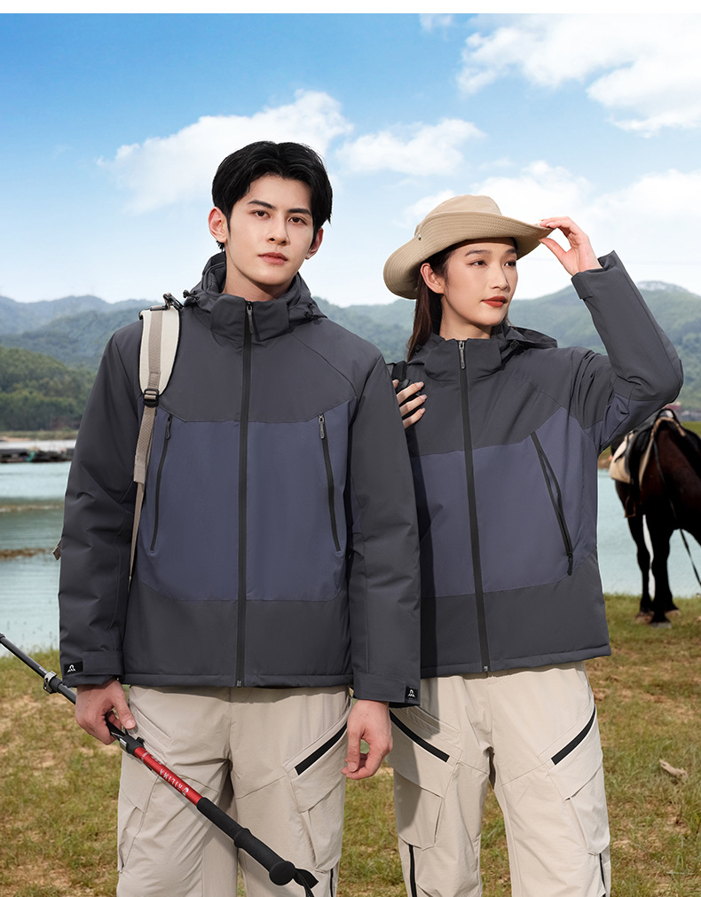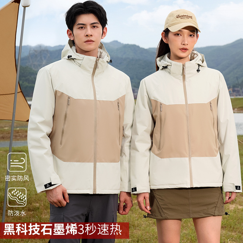 Зимняя утолщенная куртка с логотипом, цветными блоками, флисовой подкладкой из графена и вышивкой.