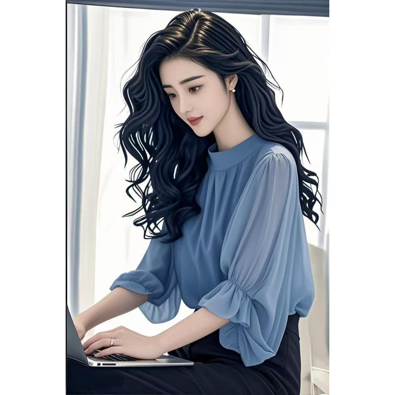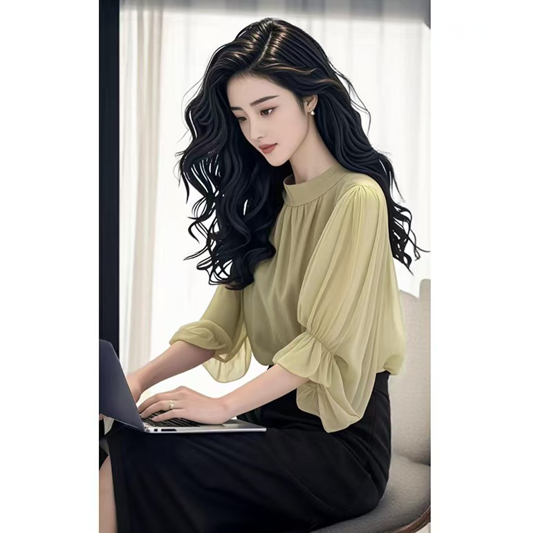 Женская рубашка из жоржета в французском стиле, летняя коллекция 2025 года, новый фасон, три четверти рукава, элегантный топ для профессиональной работы, внешнеторговая одежда.