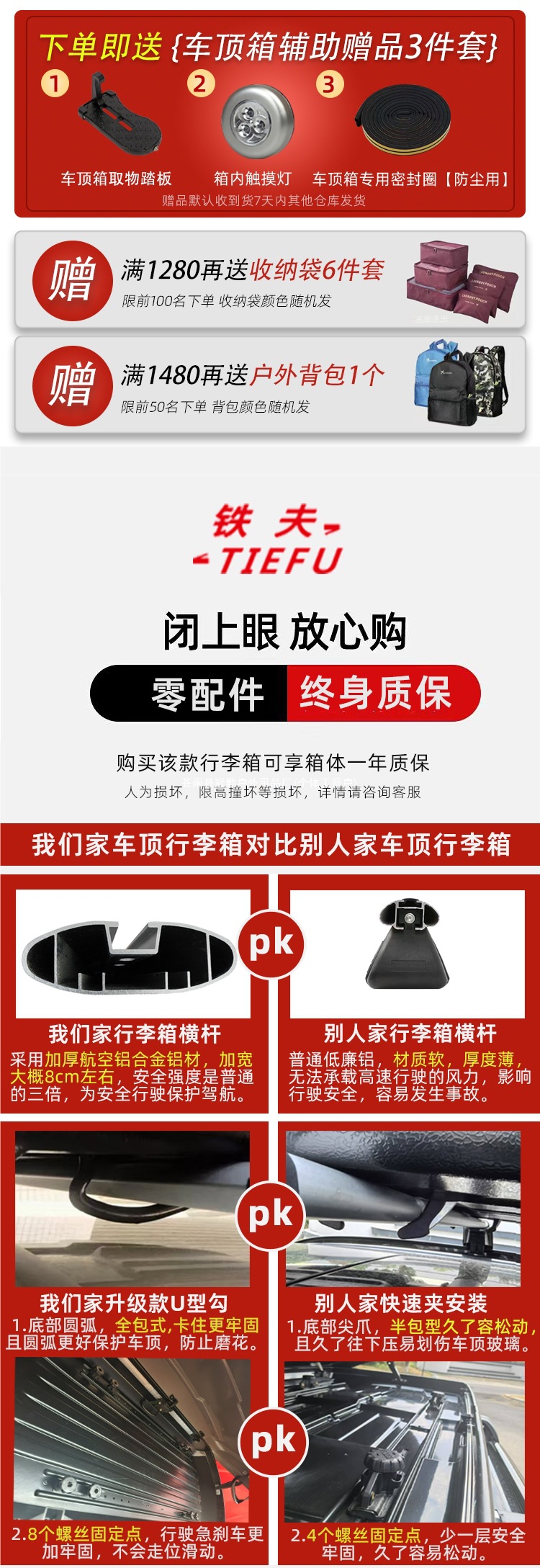 Большой багажник на крышу Tiefu для внедорожников, универсальный автомобильный багажник для путешествий