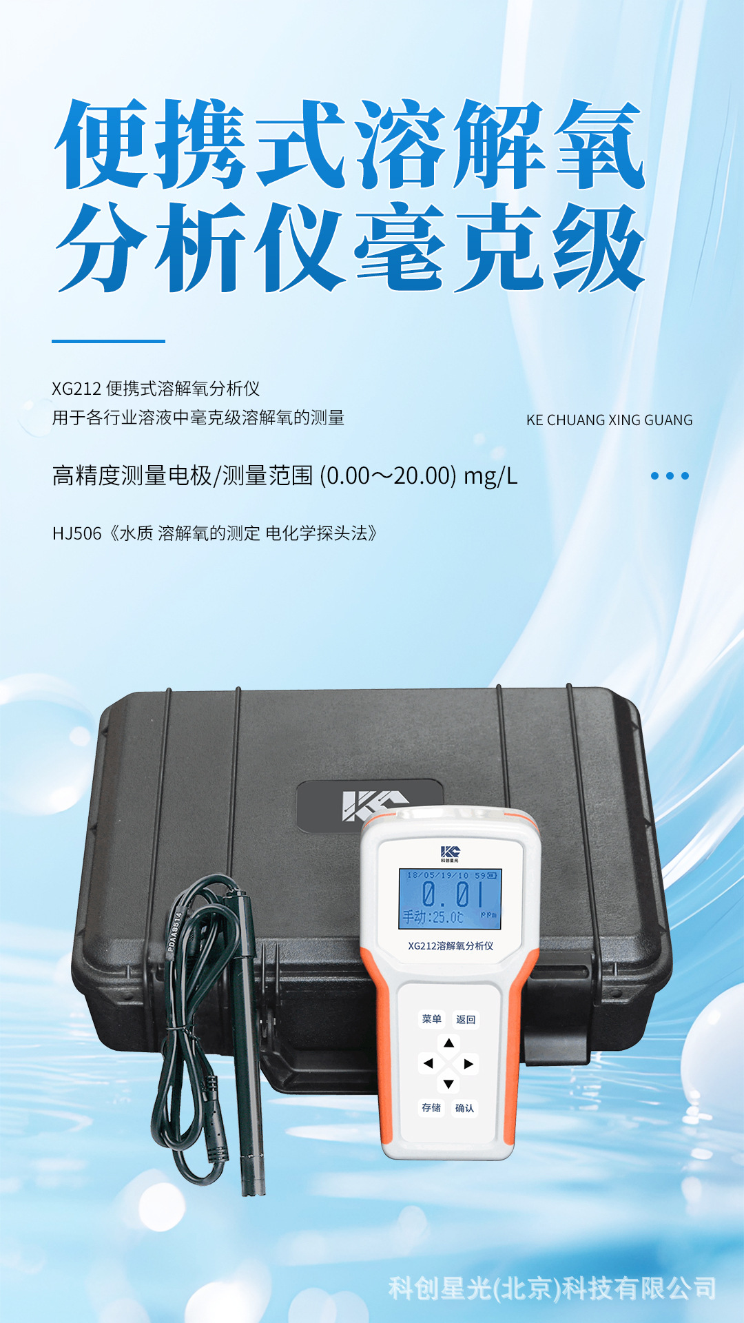 XG212型 便携式溶解氧分析仪(毫克级) 符合标准HJ506《水质 溶解氧的测定 电化学探头法》,采用DO连续测定方法(隔膜电极法)。