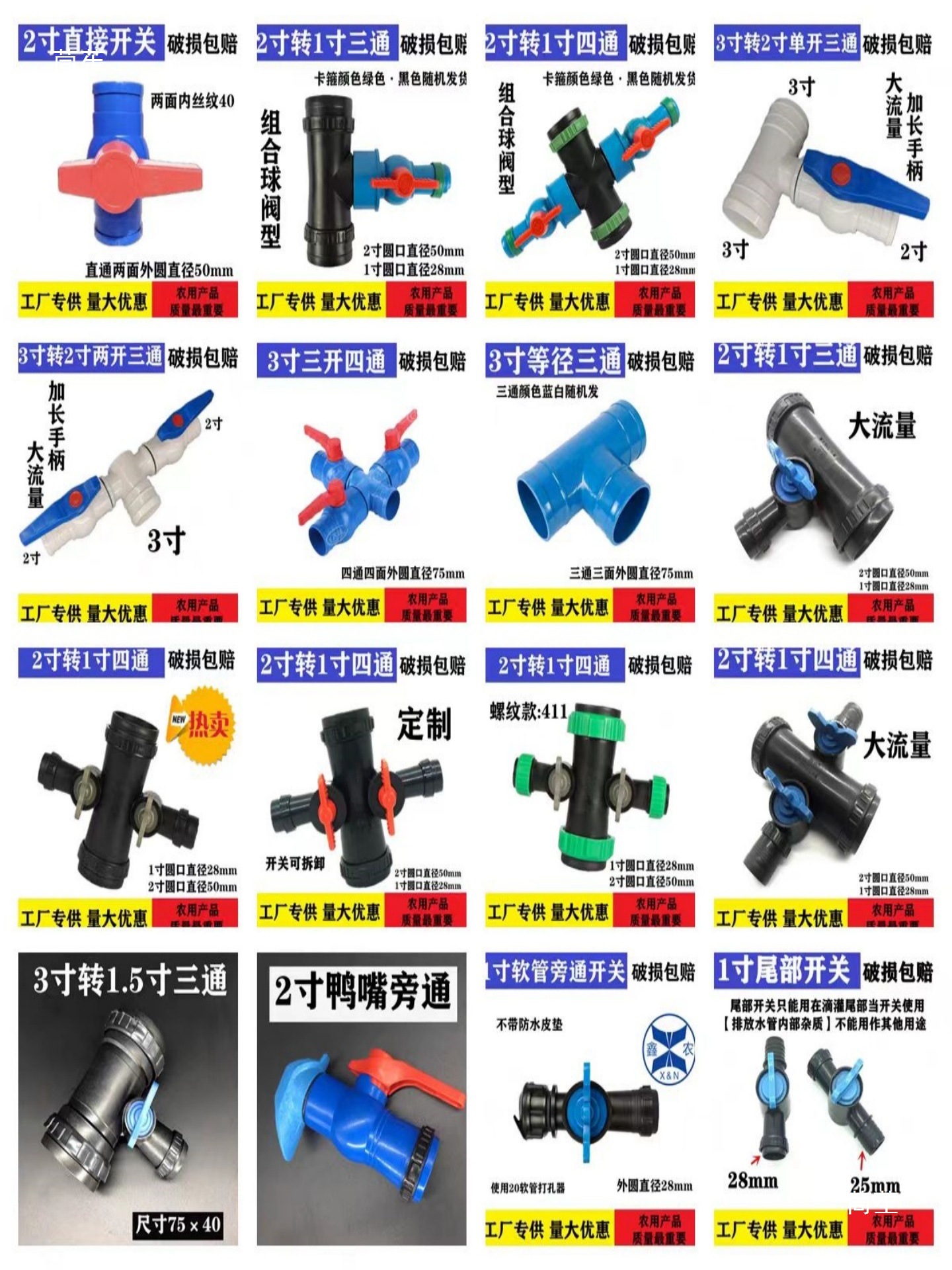 Сельскохозяйственная лента для капельного орошения, капельница, заземляющая вилка, распылитель, соединительная лента для микрораспыления, соединительные аксессуары 2inch с переключателем, трехходовой, четырехходовой, прямой