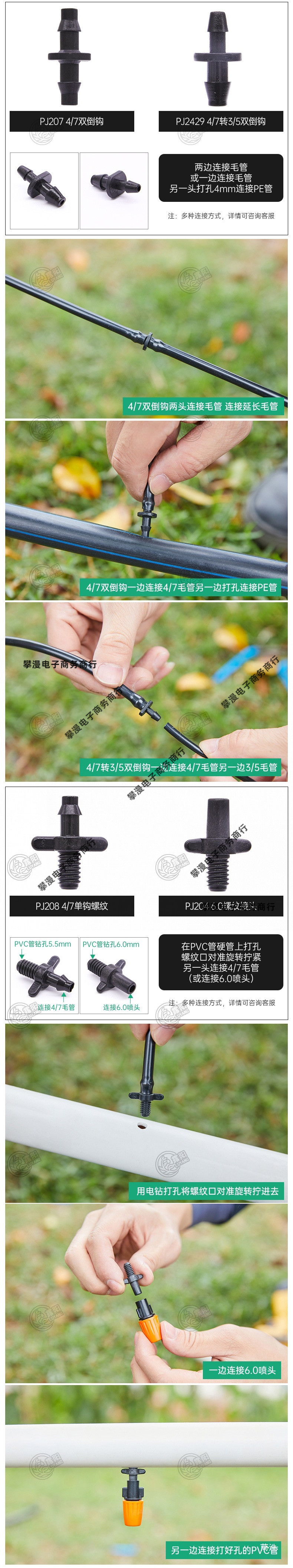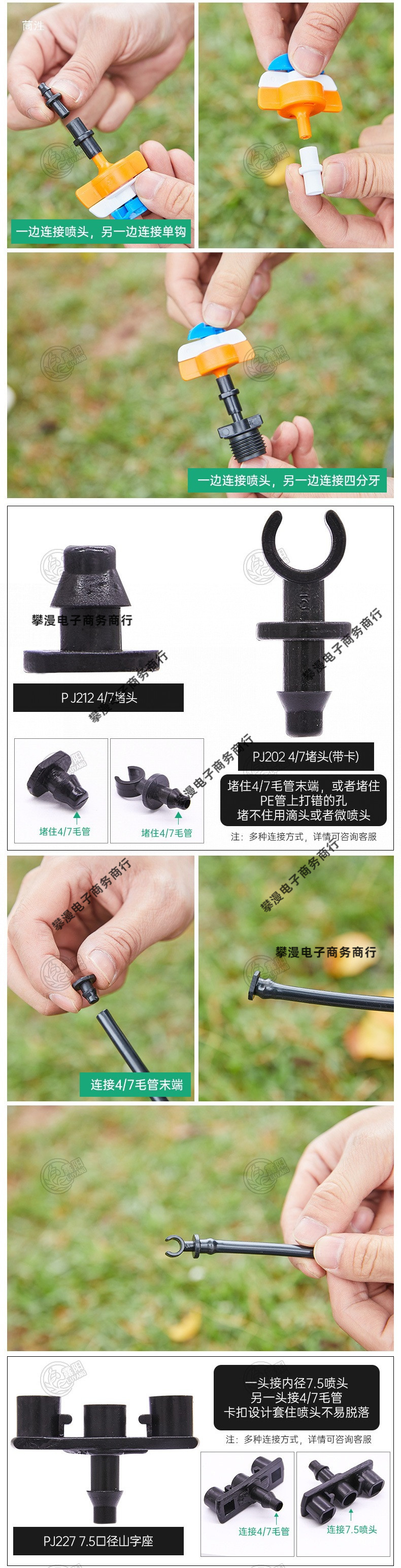 4/7 капиллярное соединение, одинарный крючок, двойной крючок, трехходовое прямое устройство против капель, горный кронштейн, трехходовое, пятиходовое, аксессуары для микрораспыления для теплиц