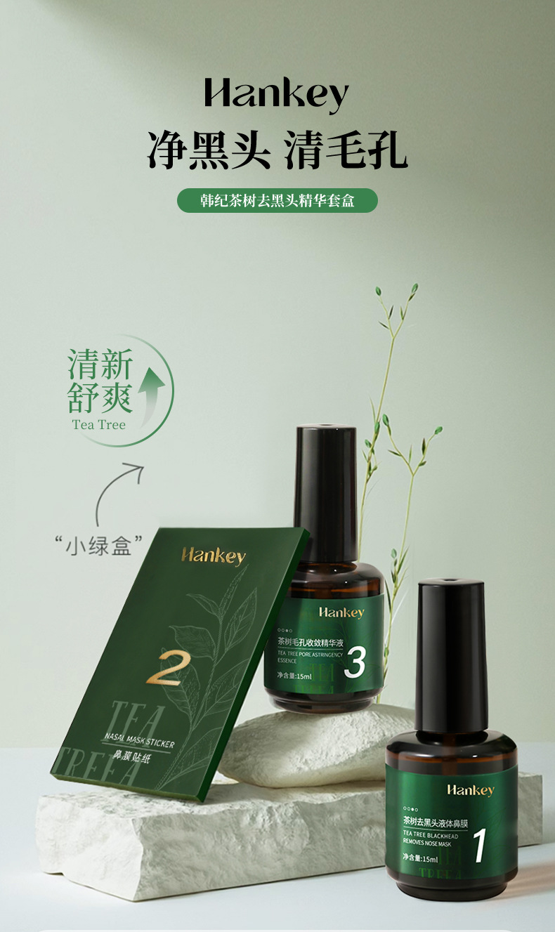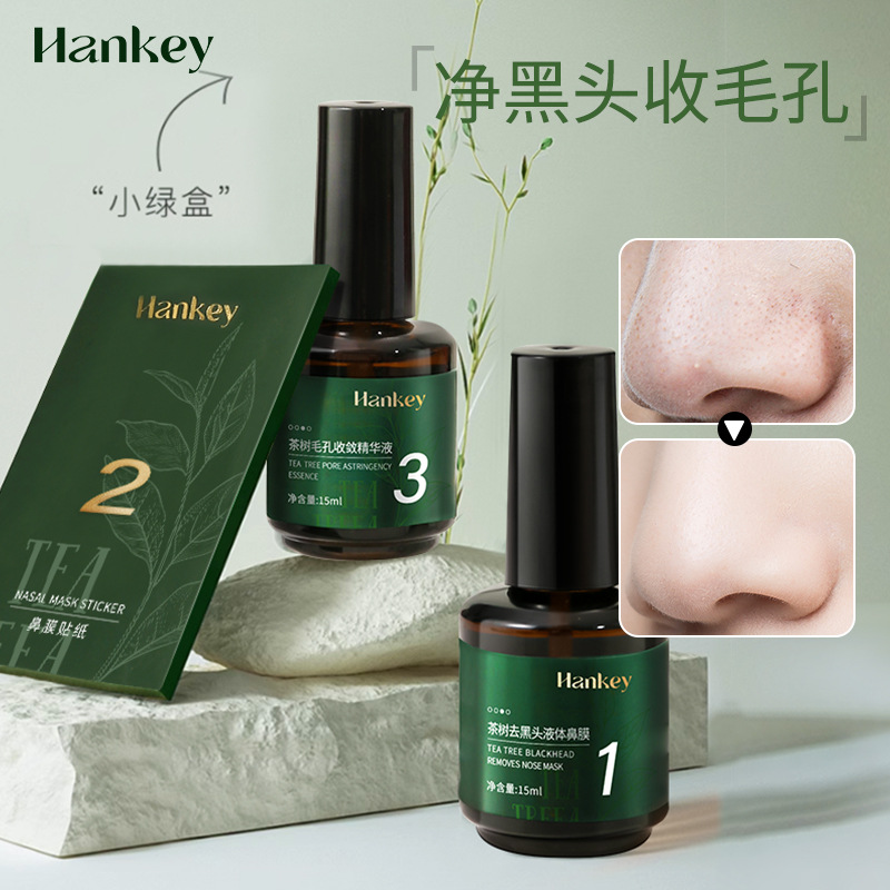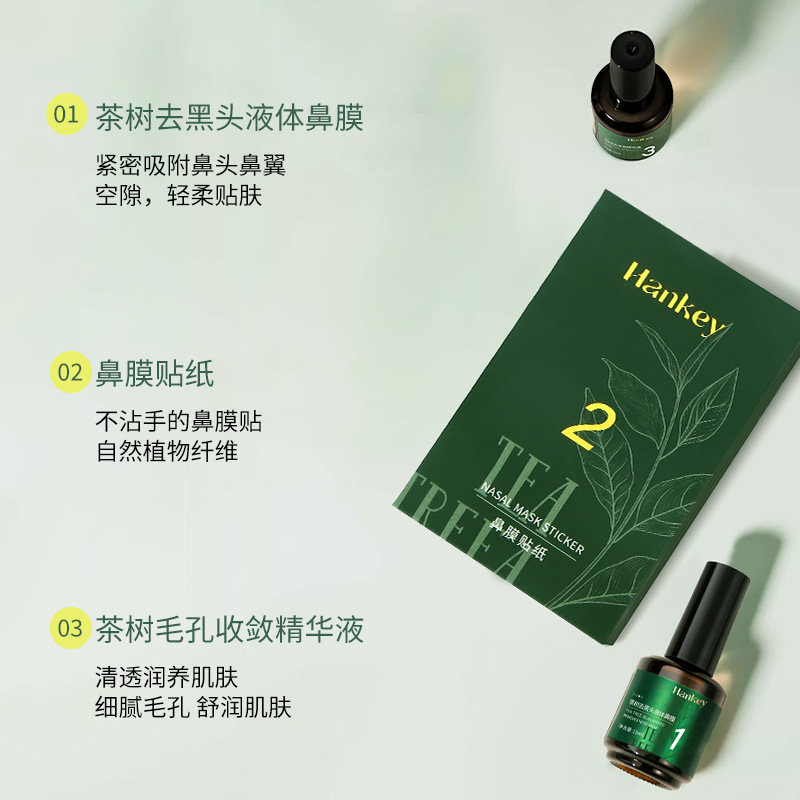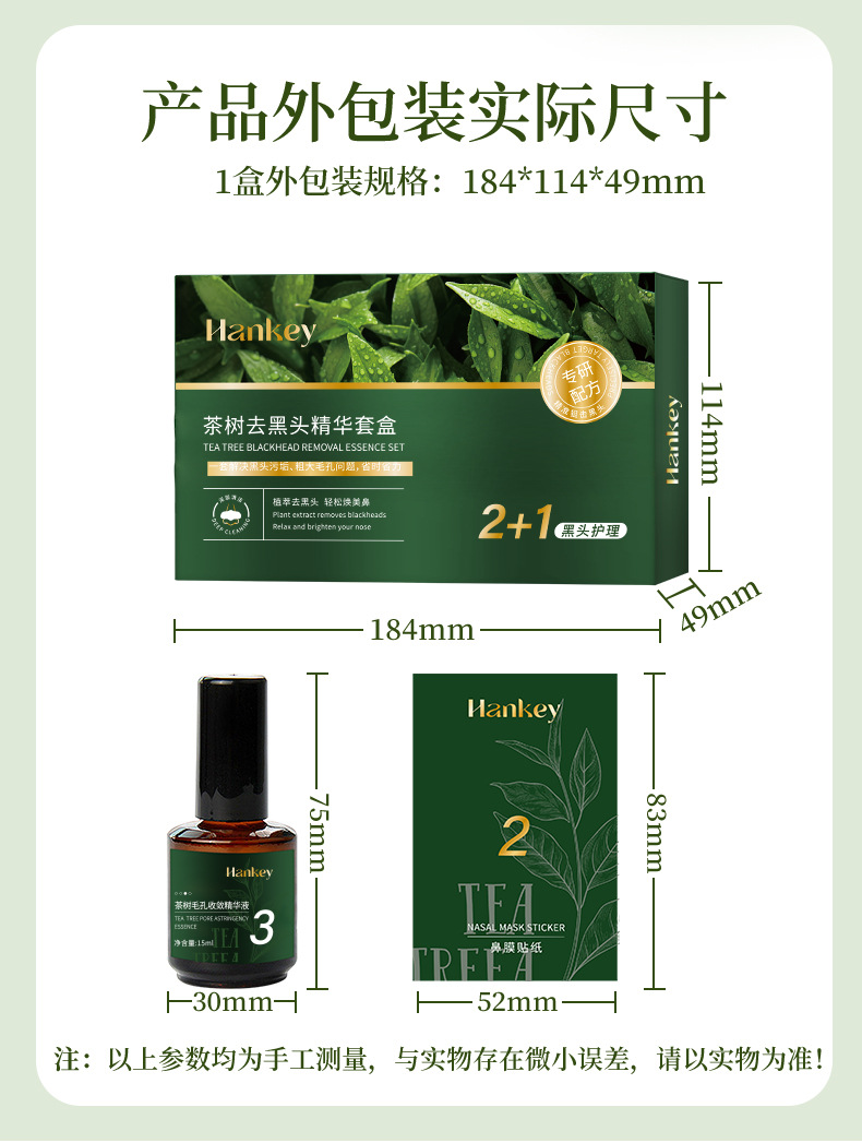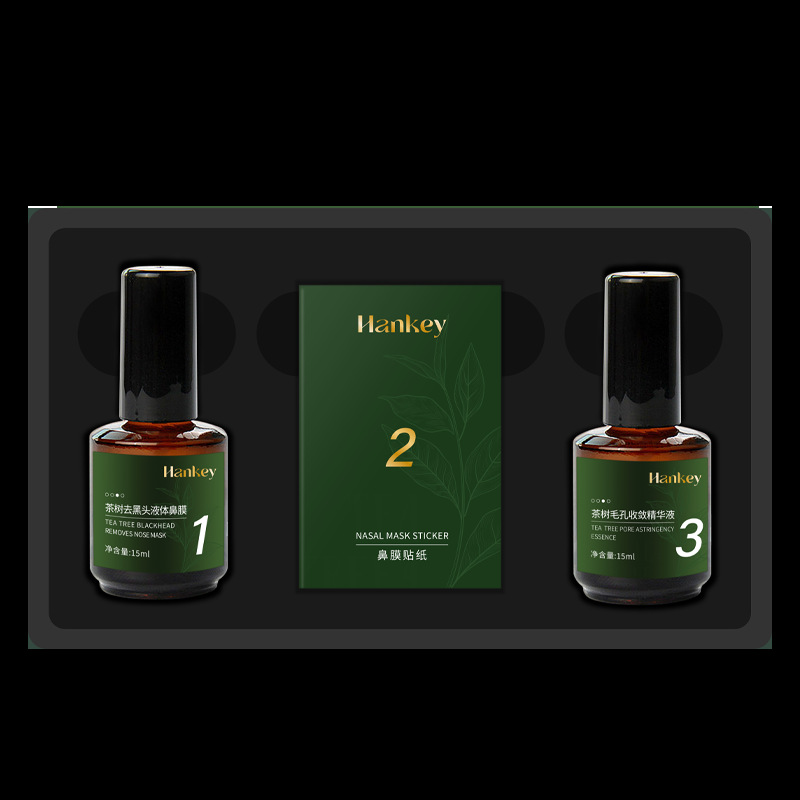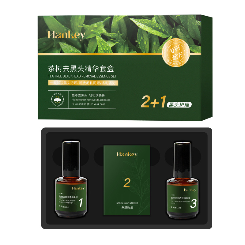 Hanji Tea Tree Набор эссенций для удаления черных точек Глубоко очищающая маска для носа Экспортирующая жидкость для черных точек Эссенция для сужения пор